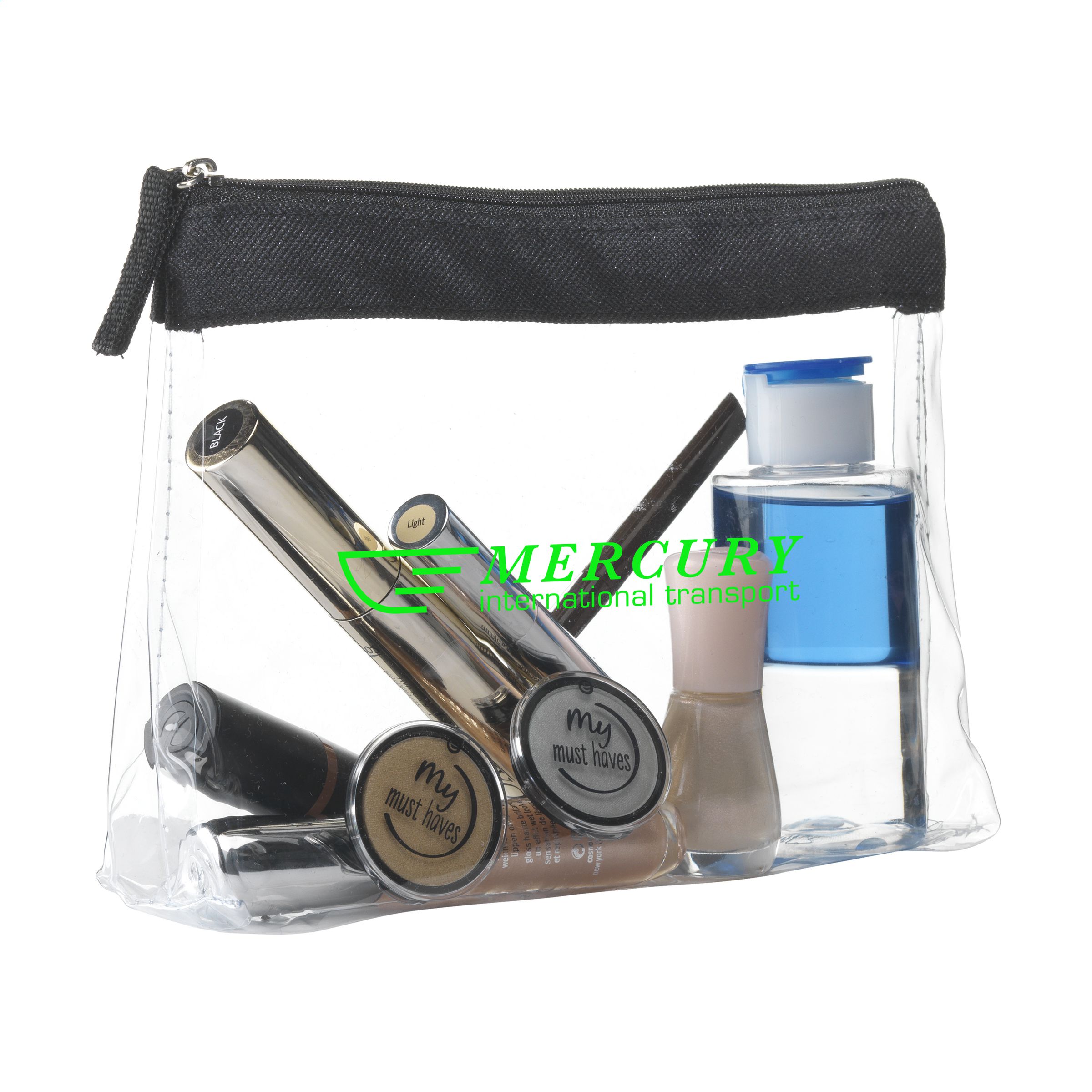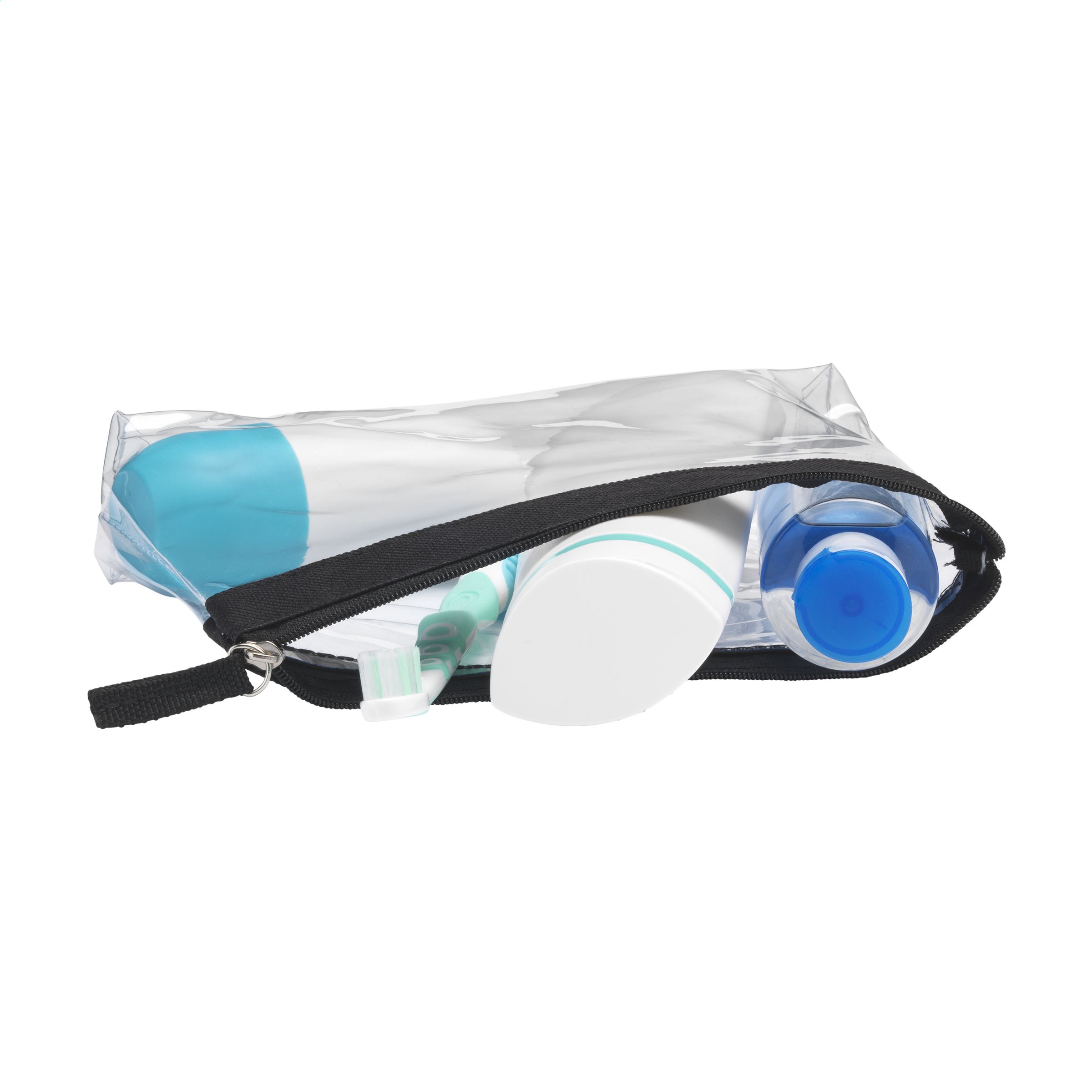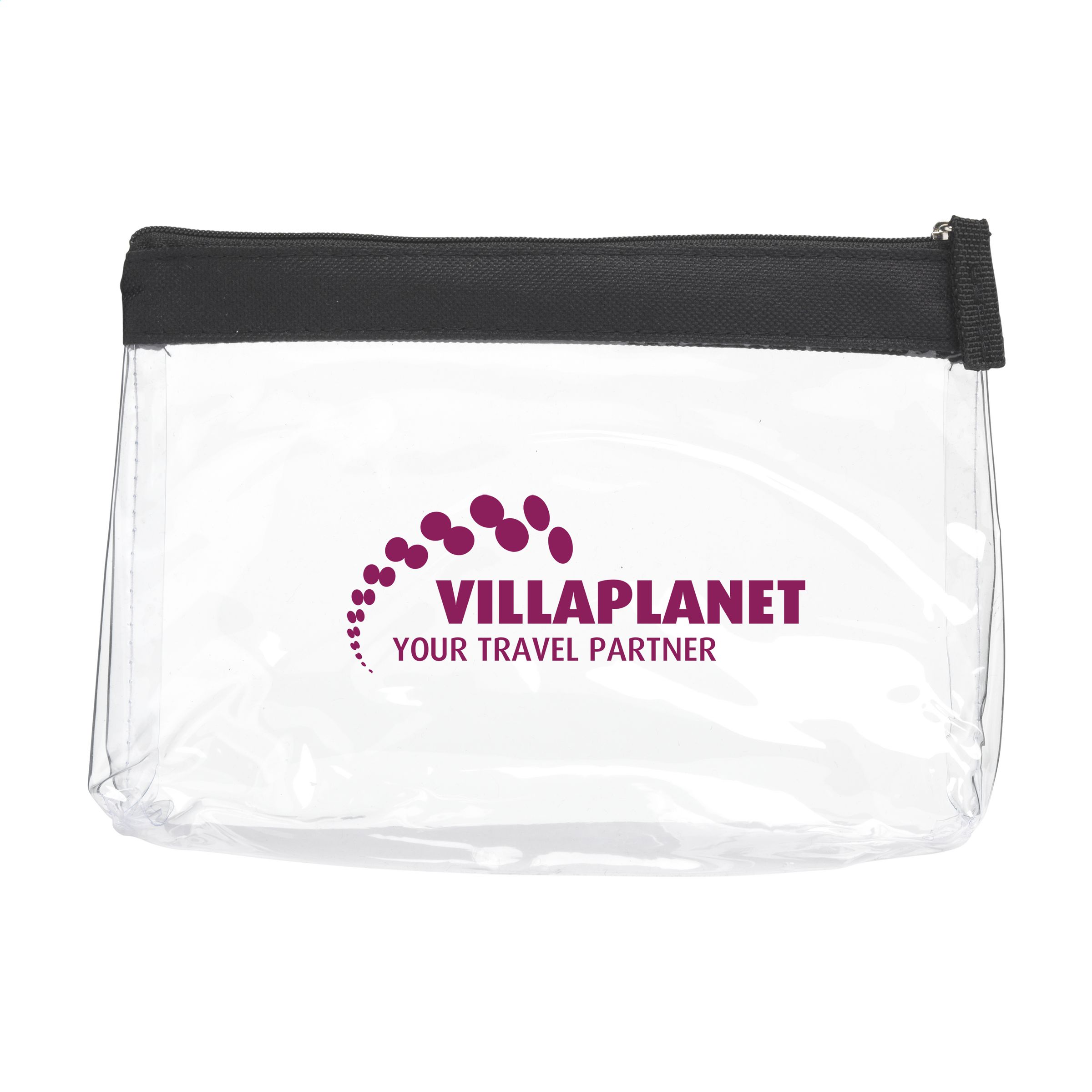 Sturdy, transparent PVC toiletry bag with zipper. Because the contents are clearly visible, this case is allowed through customs and is ideal as a carry-on toiletry bag.