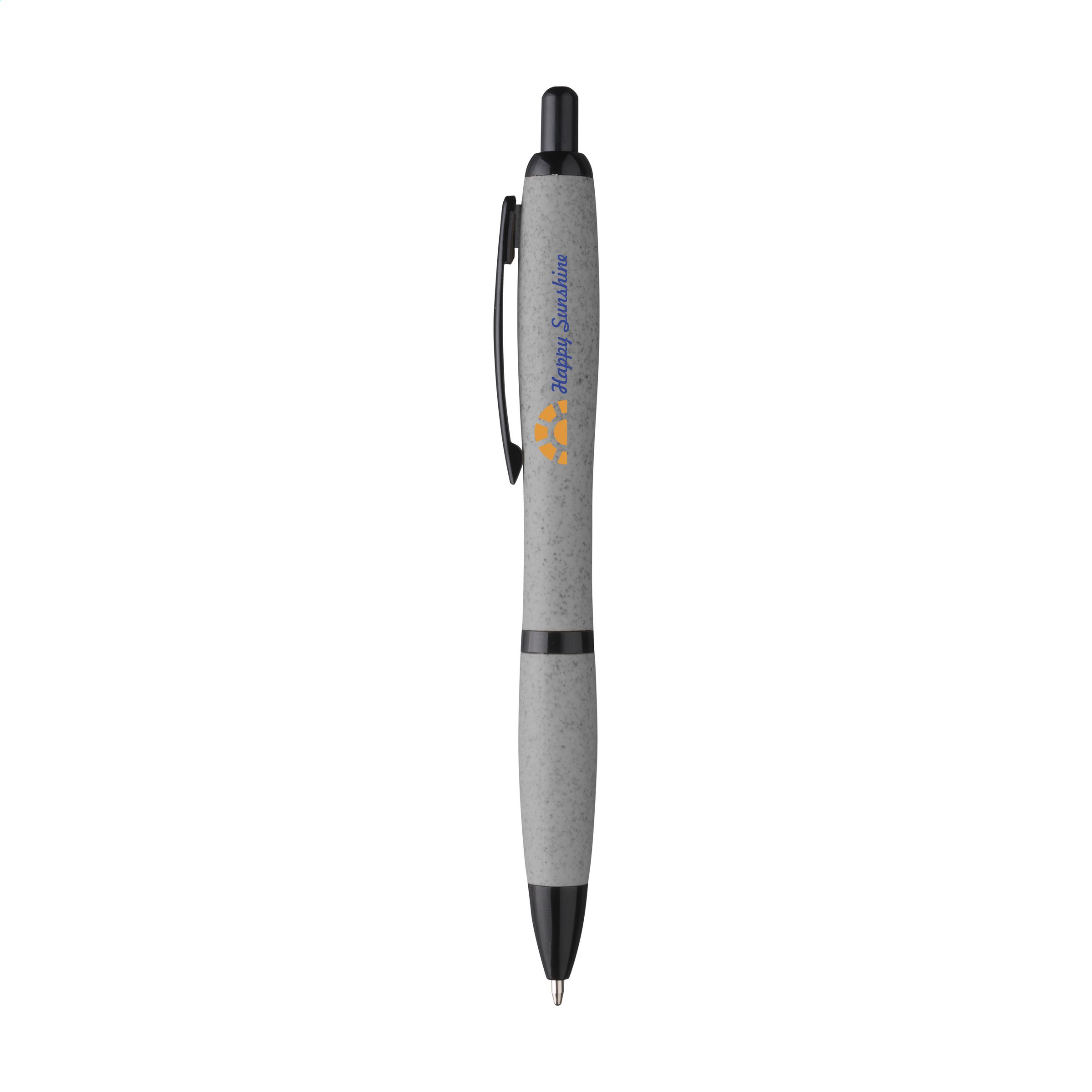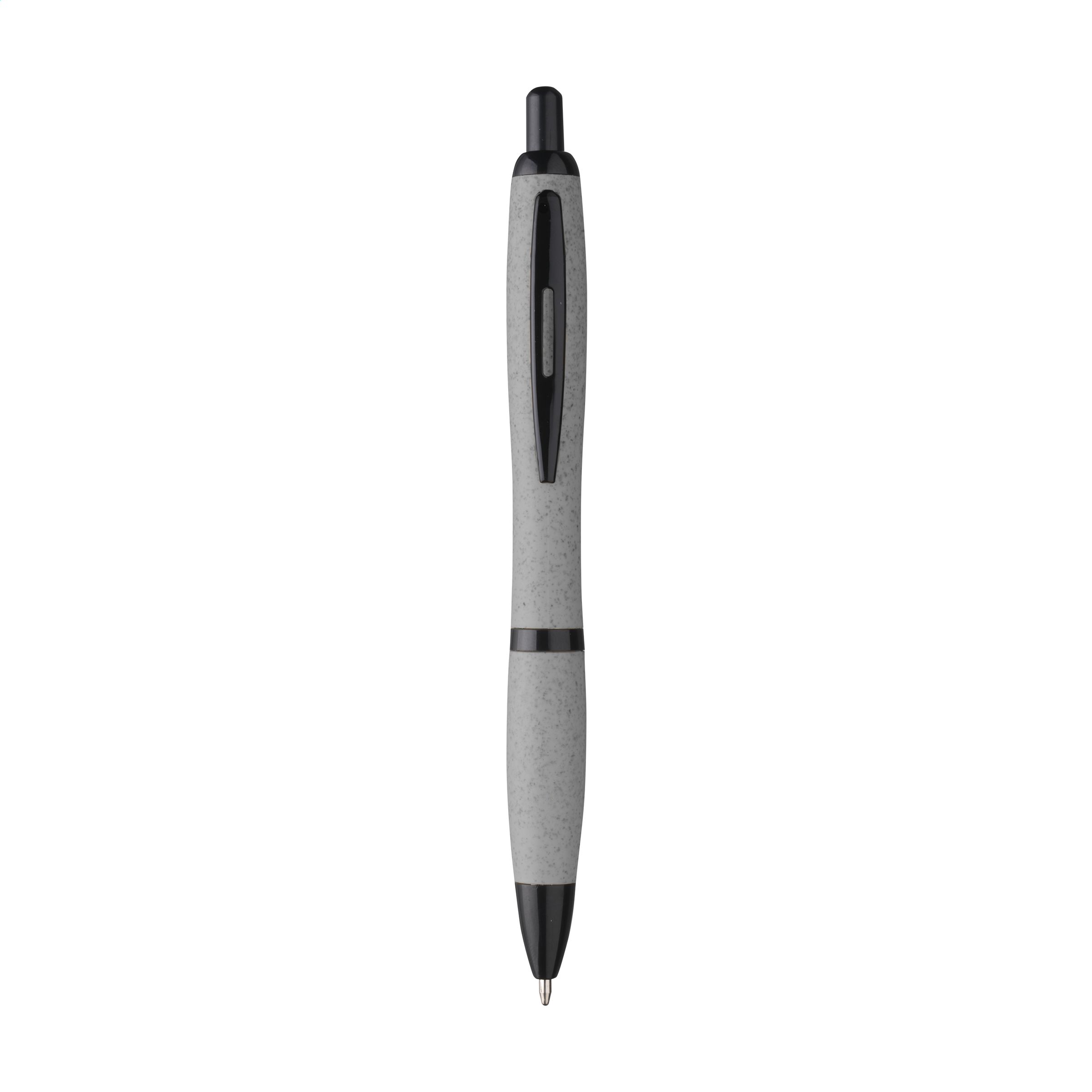 Eco-friendly, blue ink ballpoint pen made of 50% PP and 50% wheat straw. With black accents and metal clip. Partly biodegradable.