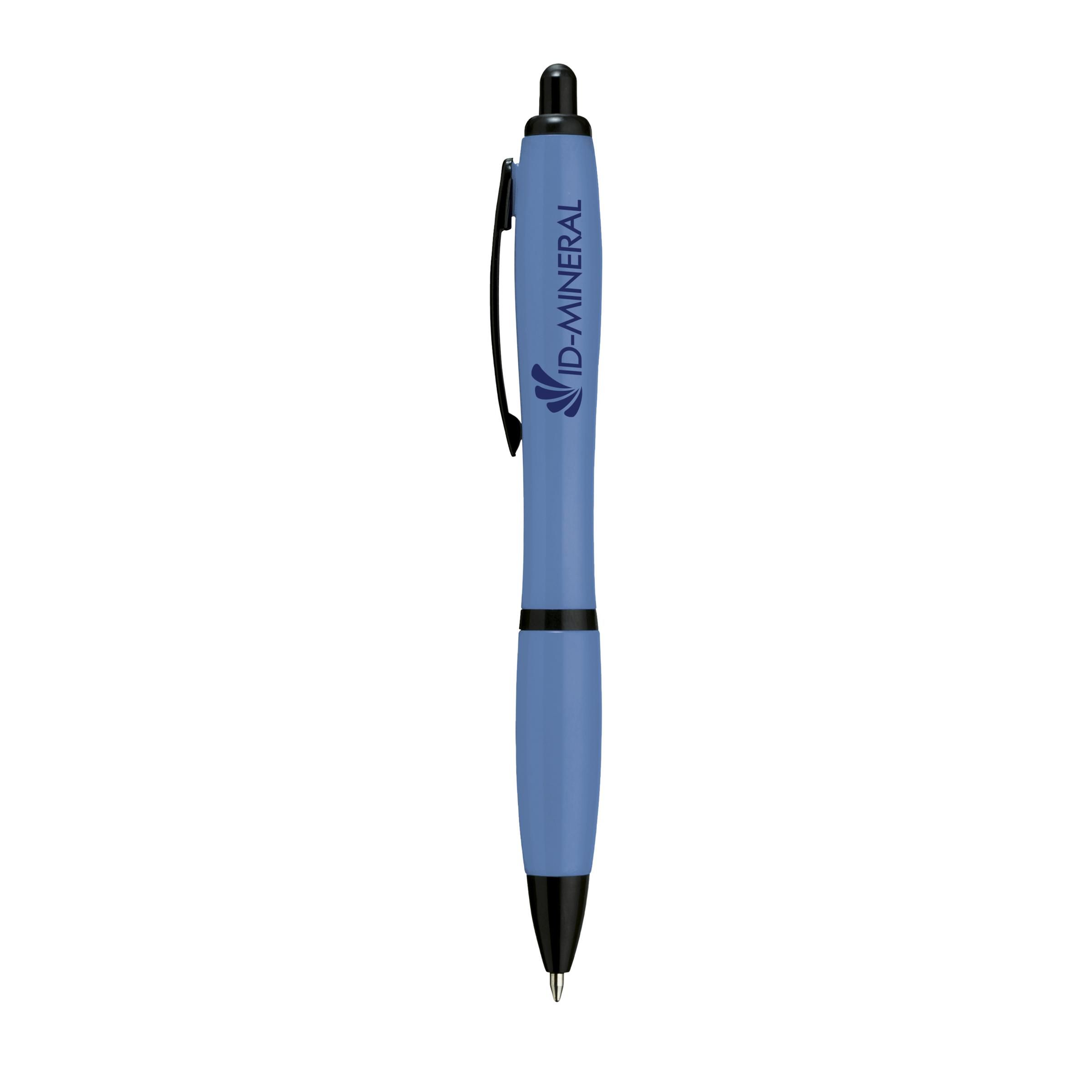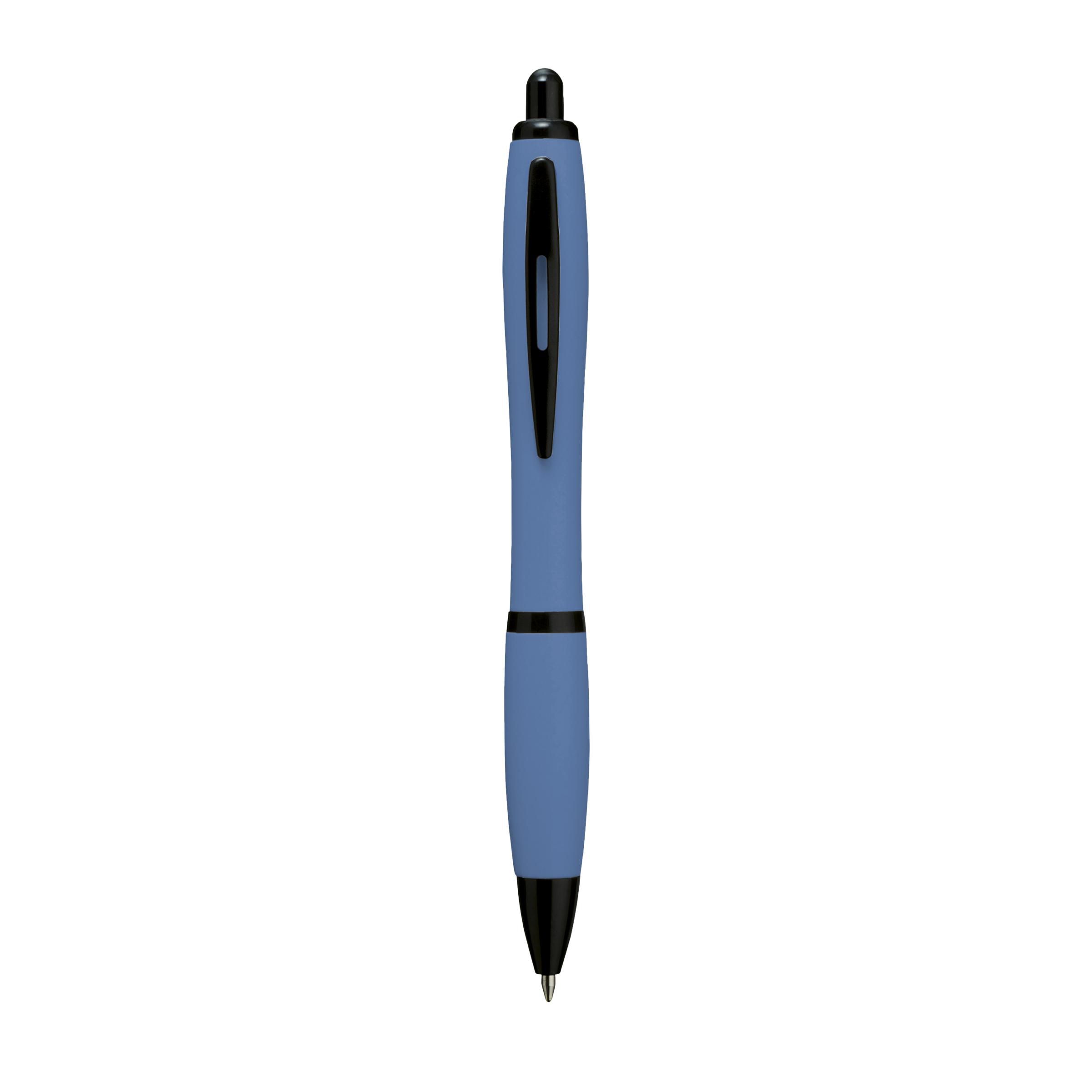 Blue ink ballpoint pen in a striking colour. With black accents and metal clip.
