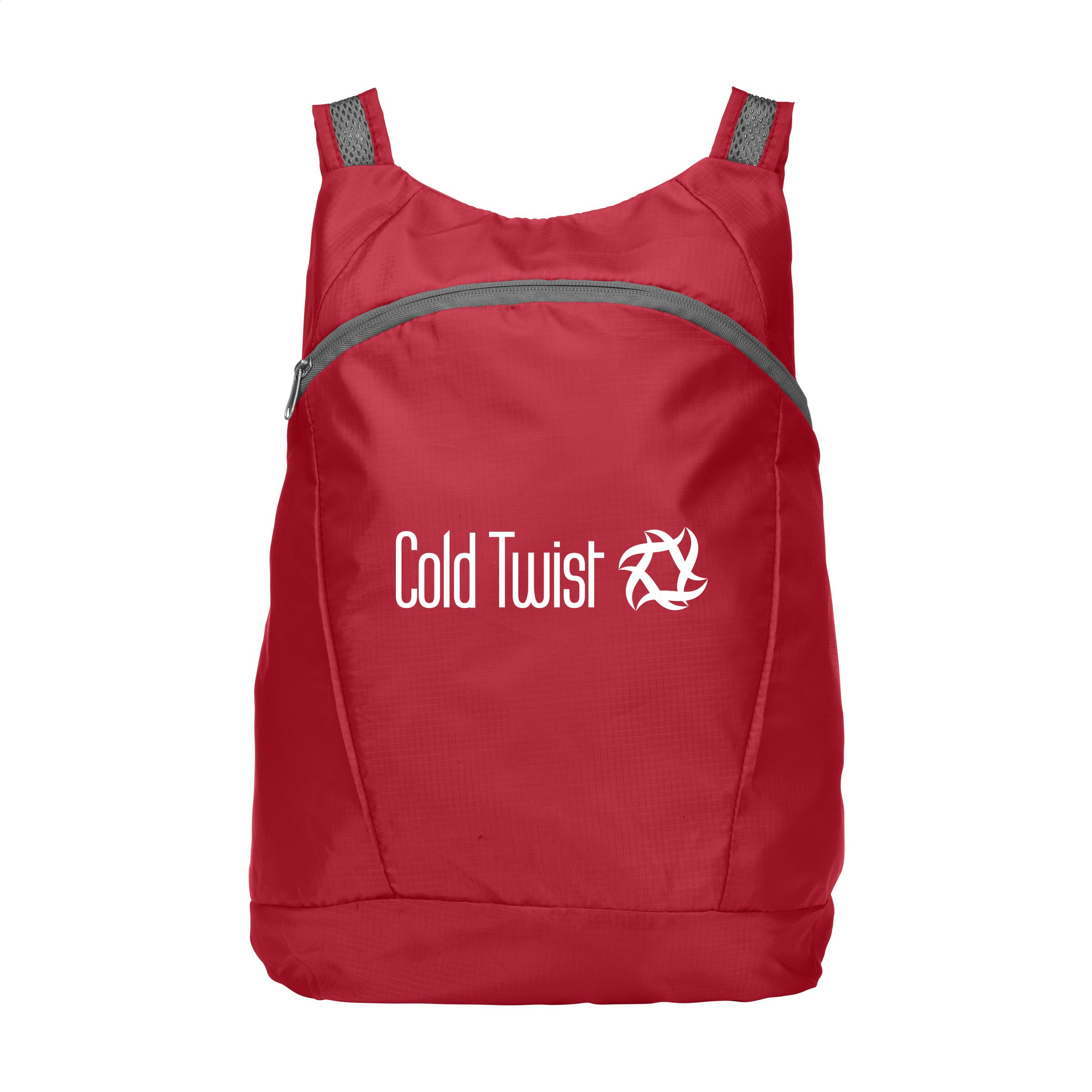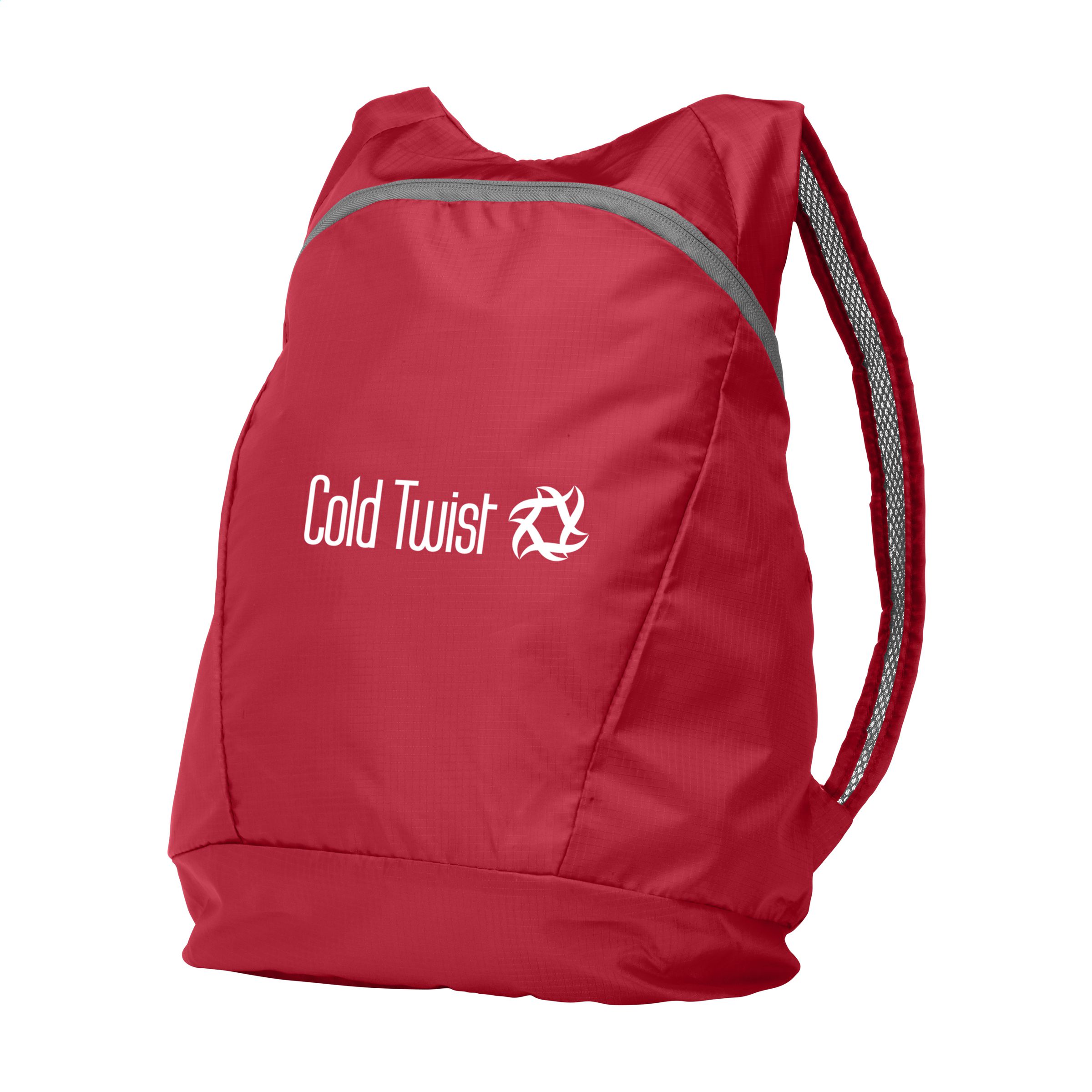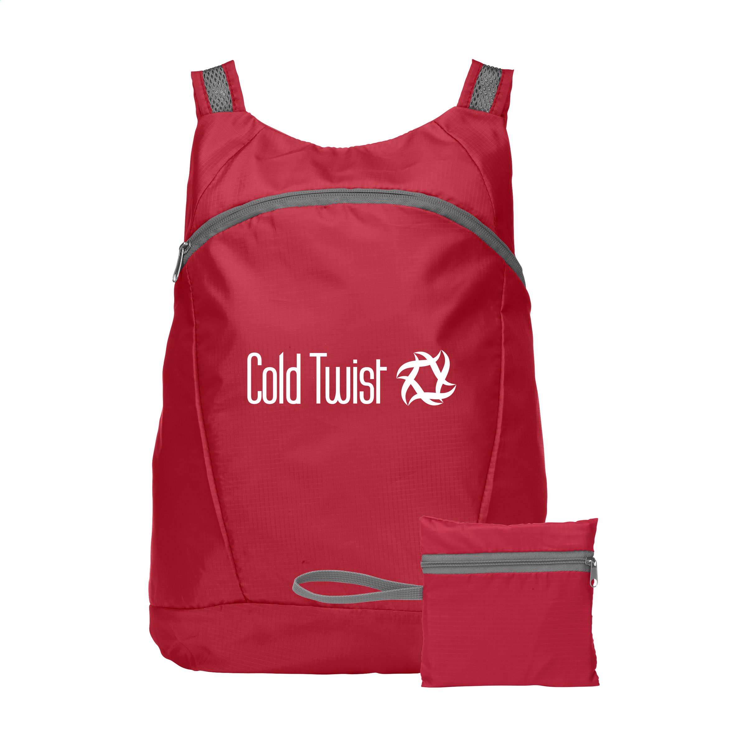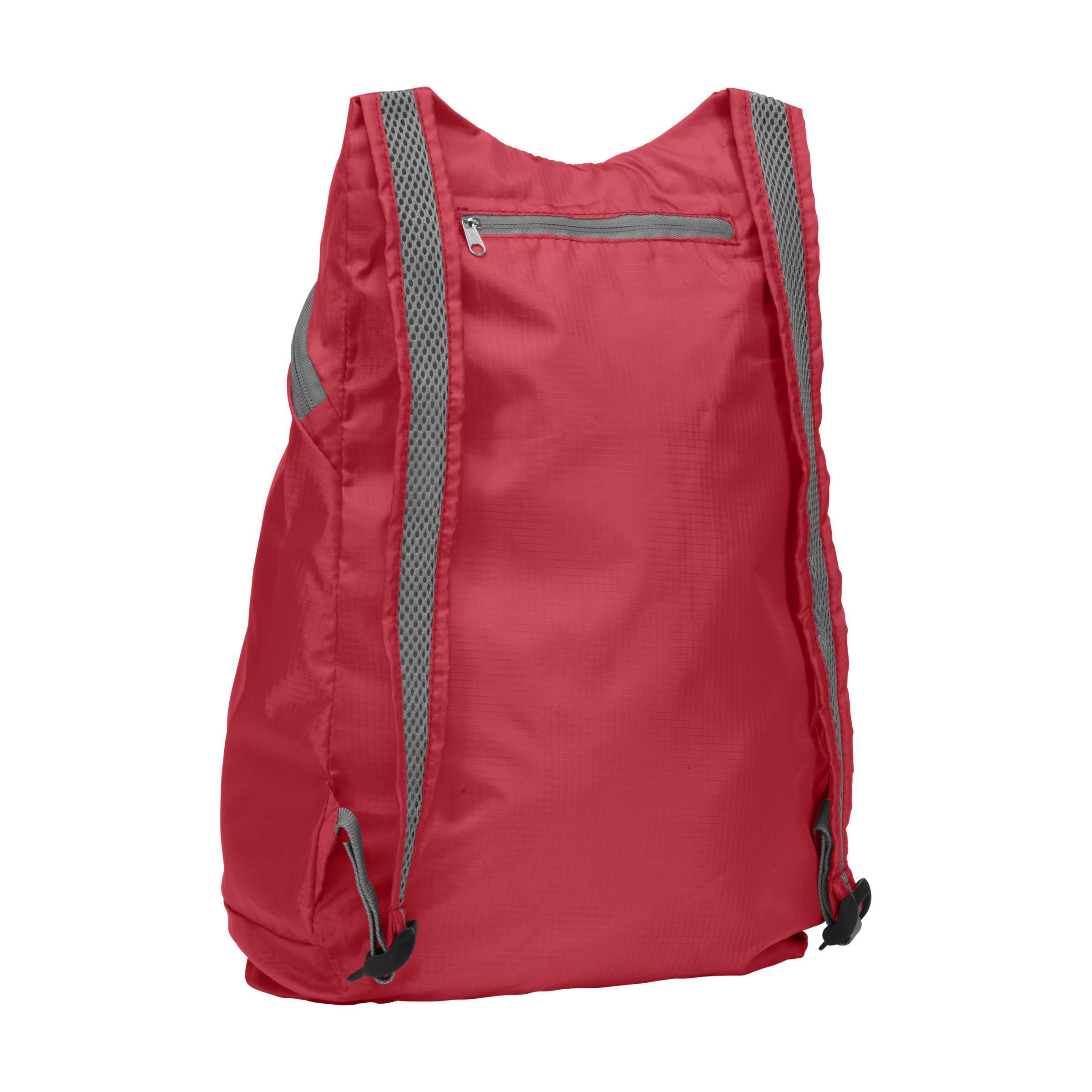 Foldable, lightweight backpack made of strong, durable 190T polyester jacquard. With generous storage space and adjustable mesh shoulder straps. Backpack to pouch. Meas. folded 13 x 12.5 x 2.5 cm.