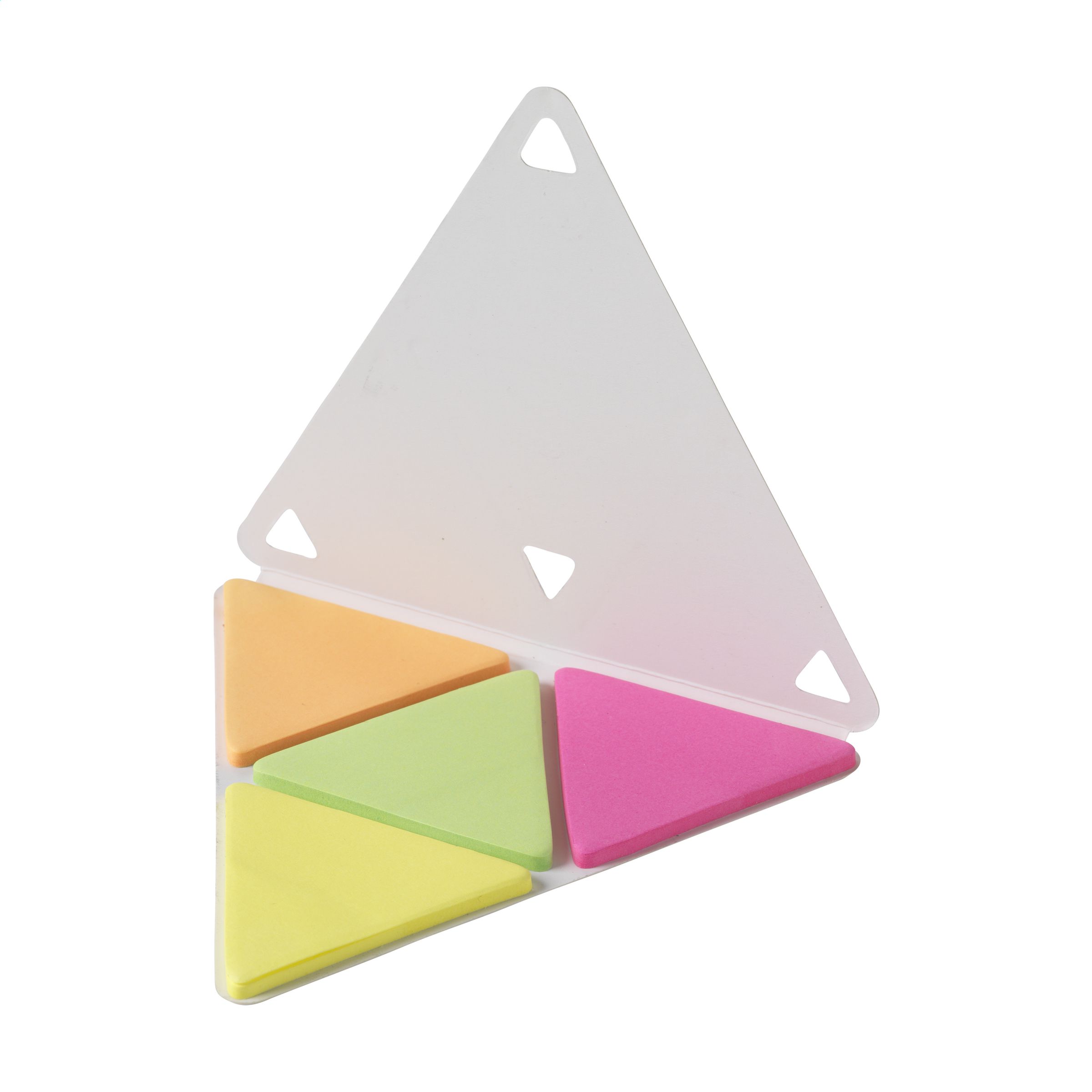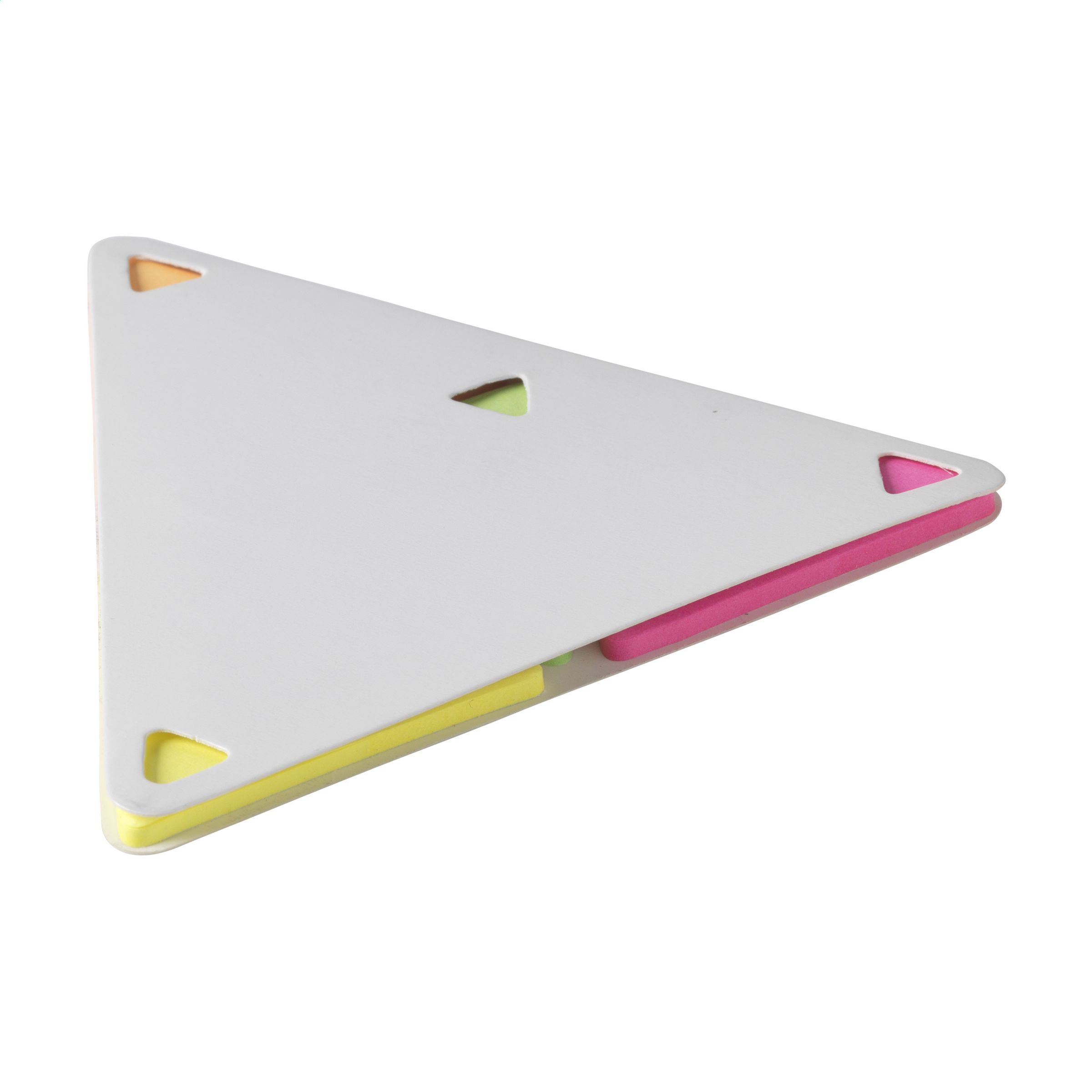 Memo pad in the shape of a triangle, with self-adhesive memo sheets in 4 colours. 25 memo sheets per colour.