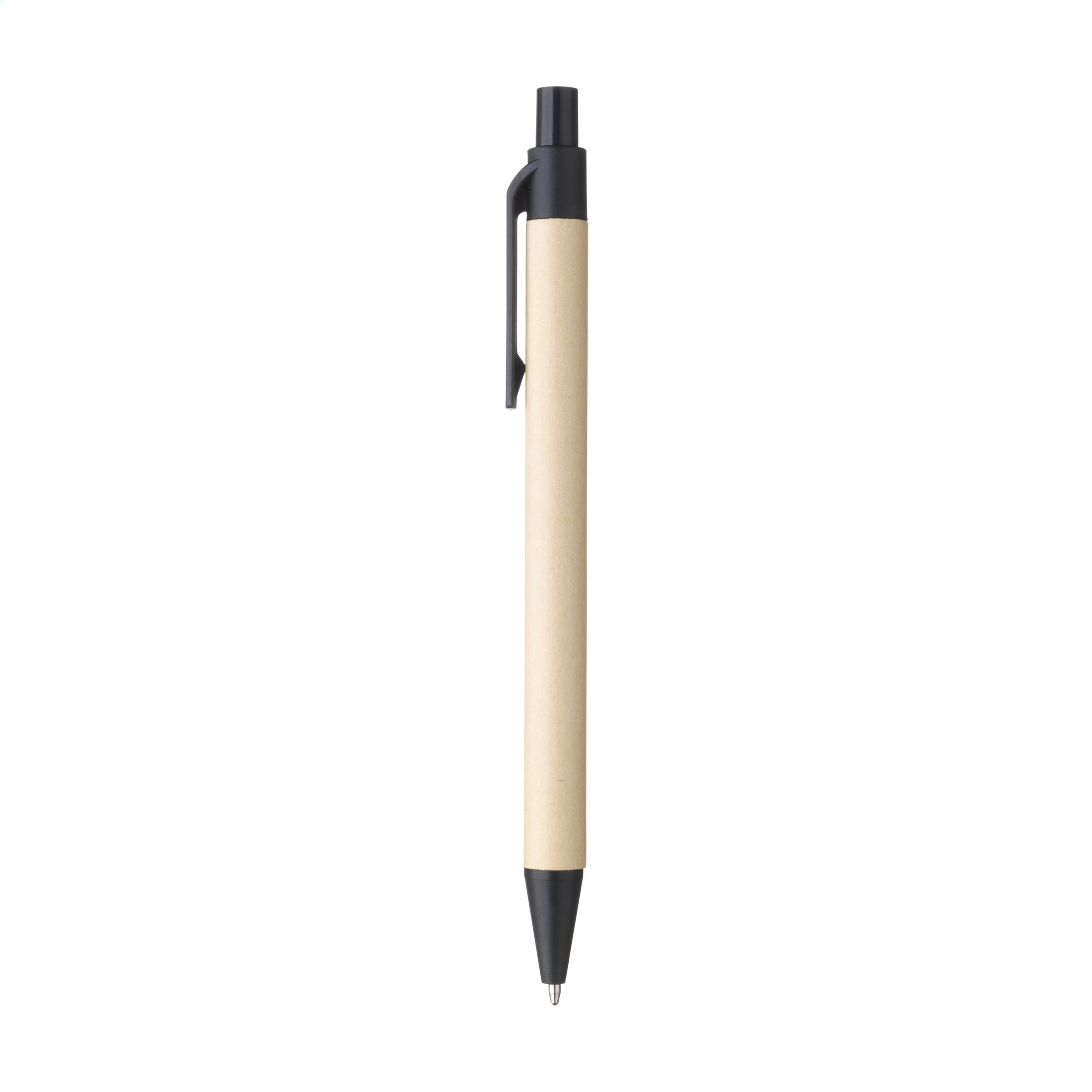 Eco-friendly ballpoint pen with holder made of recycled paper. The coloured clip, push button and point are made of biodegradable PLA. With blue ink.
