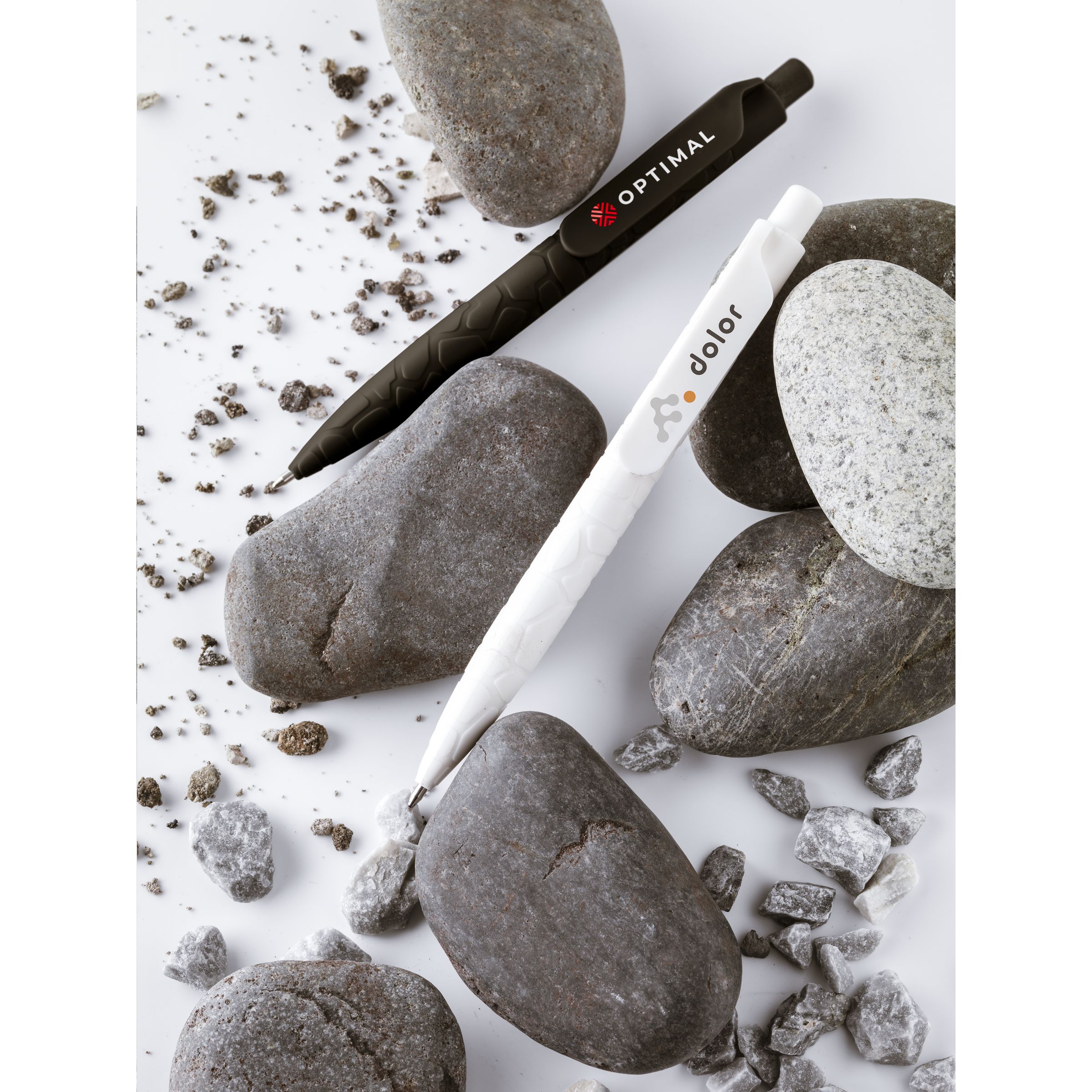 Eco-friendly, blue ink ballpoint pen with push button. Made from 55% PP plastic and 45% natural stone. 90% biodegradable. The pen has a beautiful design with a stone structure.