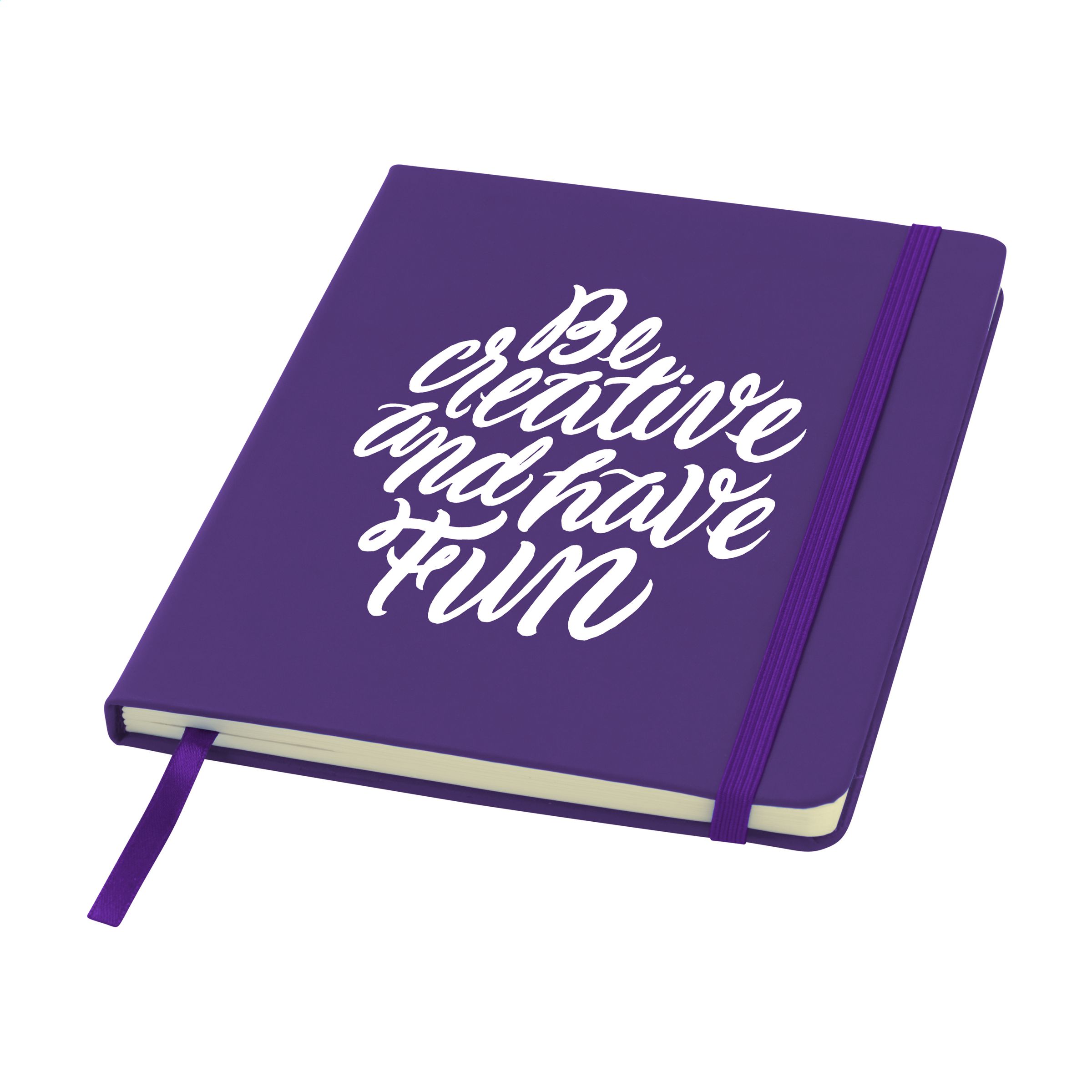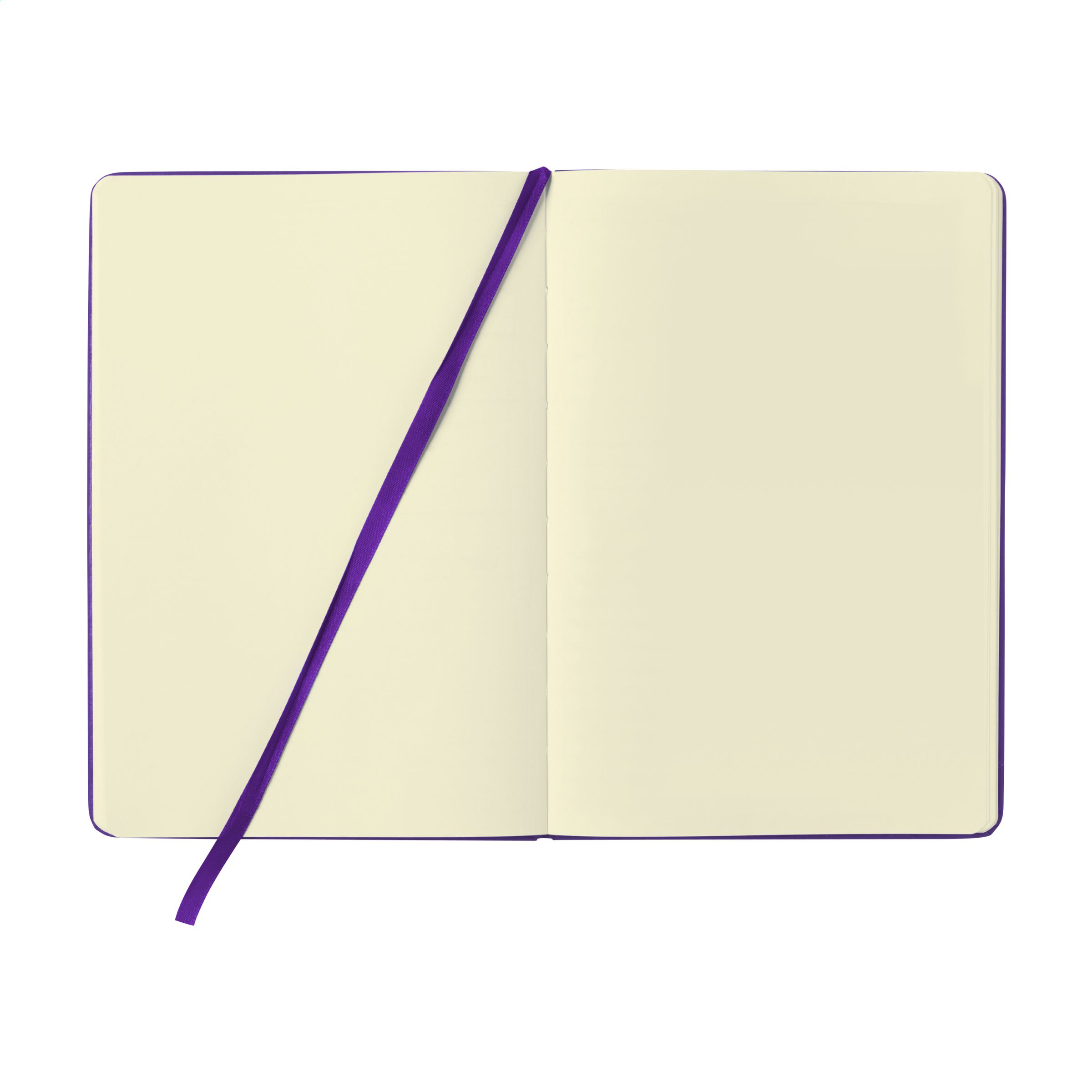 Practical notebook in A5 format. With hard PU cover, approx. 80 blank sheets of cream coloured, unlined paper (70 g/m²), elastic closure and ribbon marker.