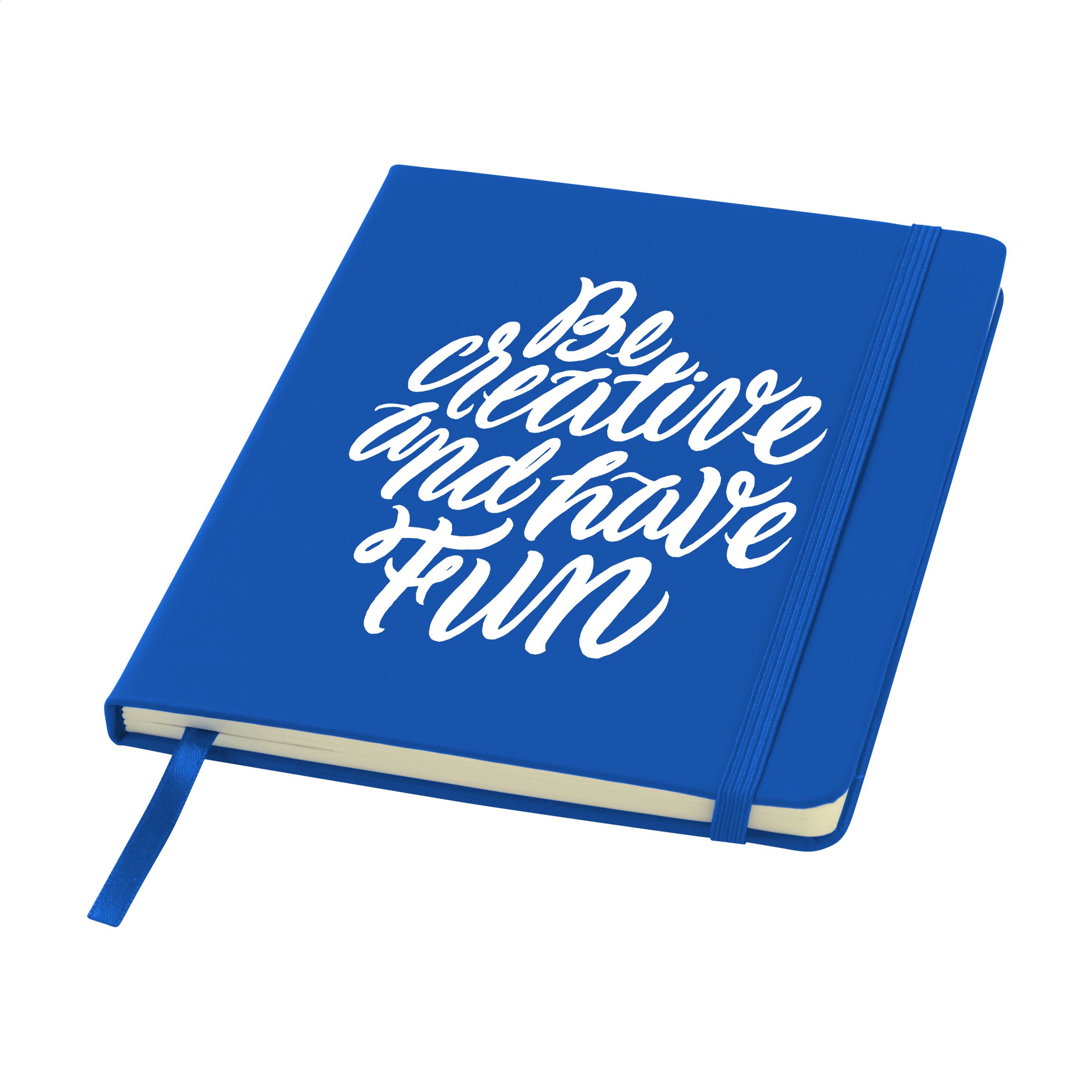 Practical notebook in A5 format. With hard PU cover, approx. 80 blank sheets of cream coloured, lined paper (70 g/m²), elastic closure and ribbon marker.