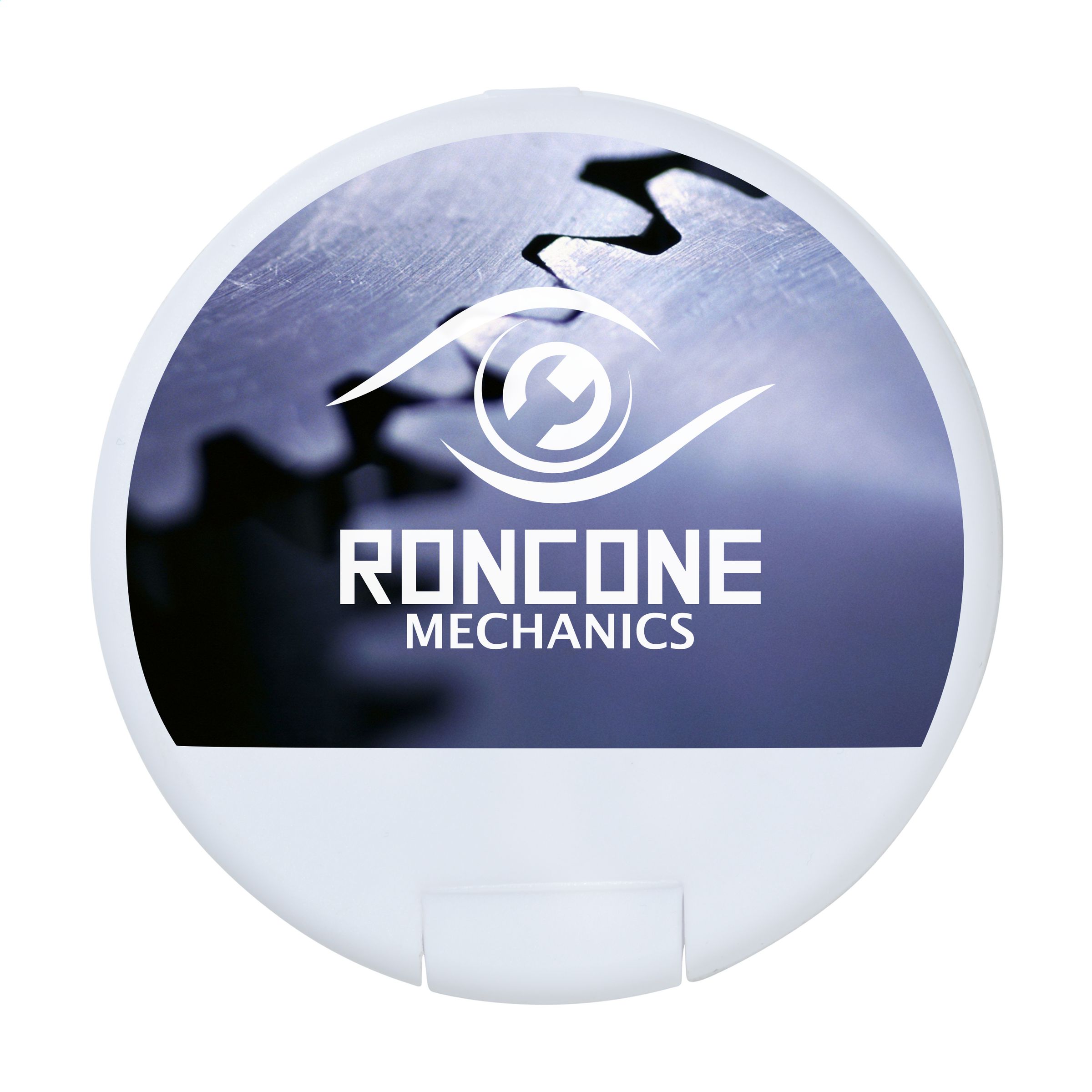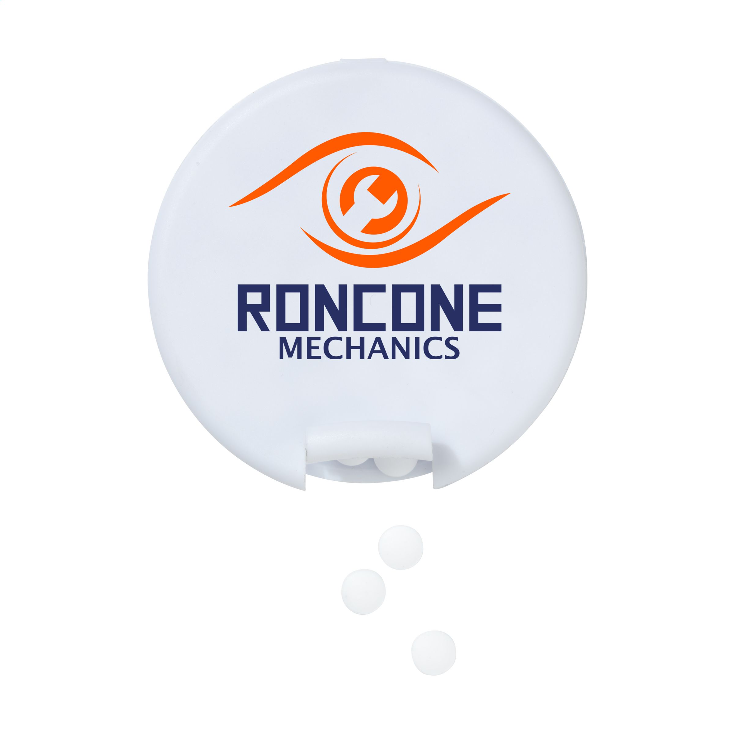 Round plastic dispenser filled with approx. 12 g (55 pieces) of sugar free mints.