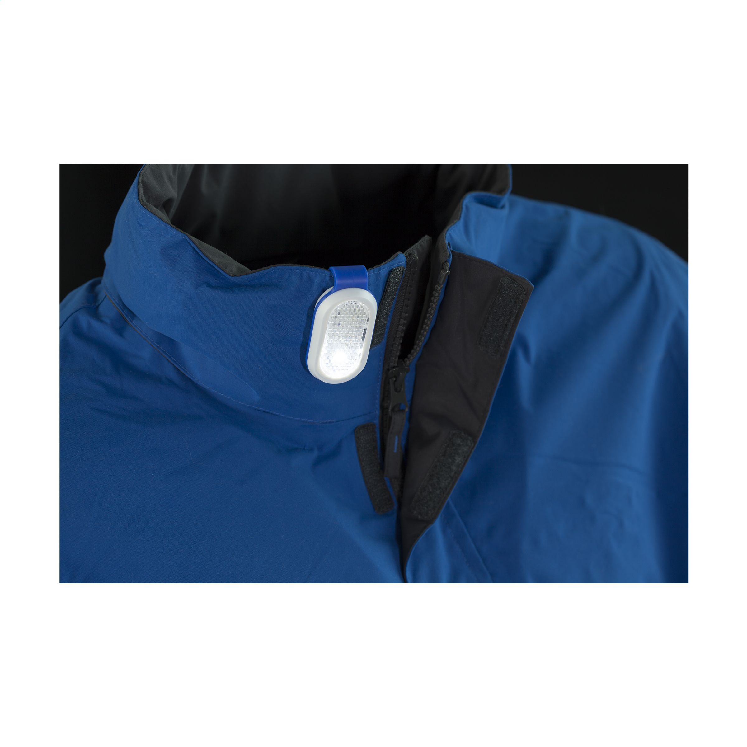 Reflector light with coloured clip. Two light settings: continuous bright white light or flashing red light. Incl. cell bateries.
