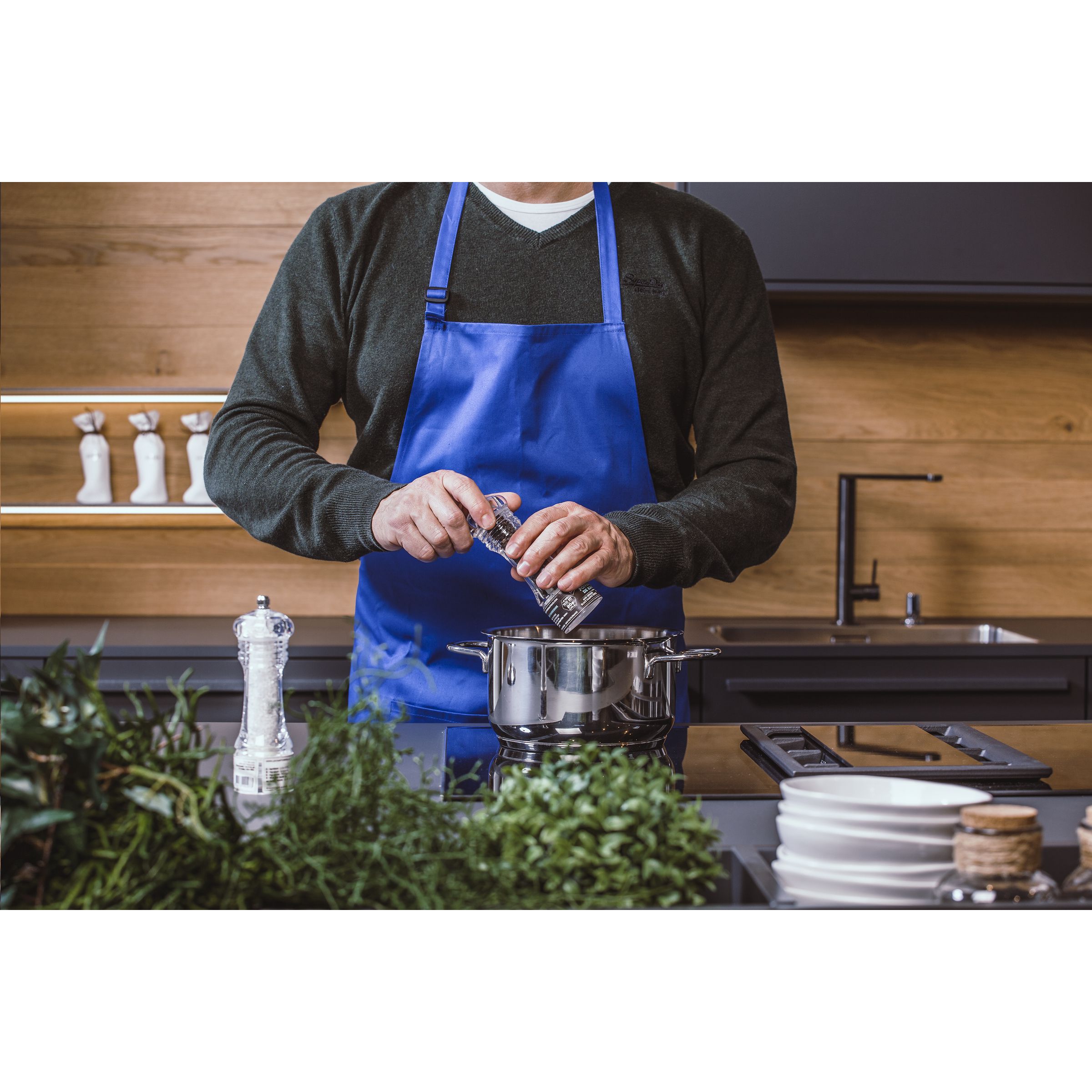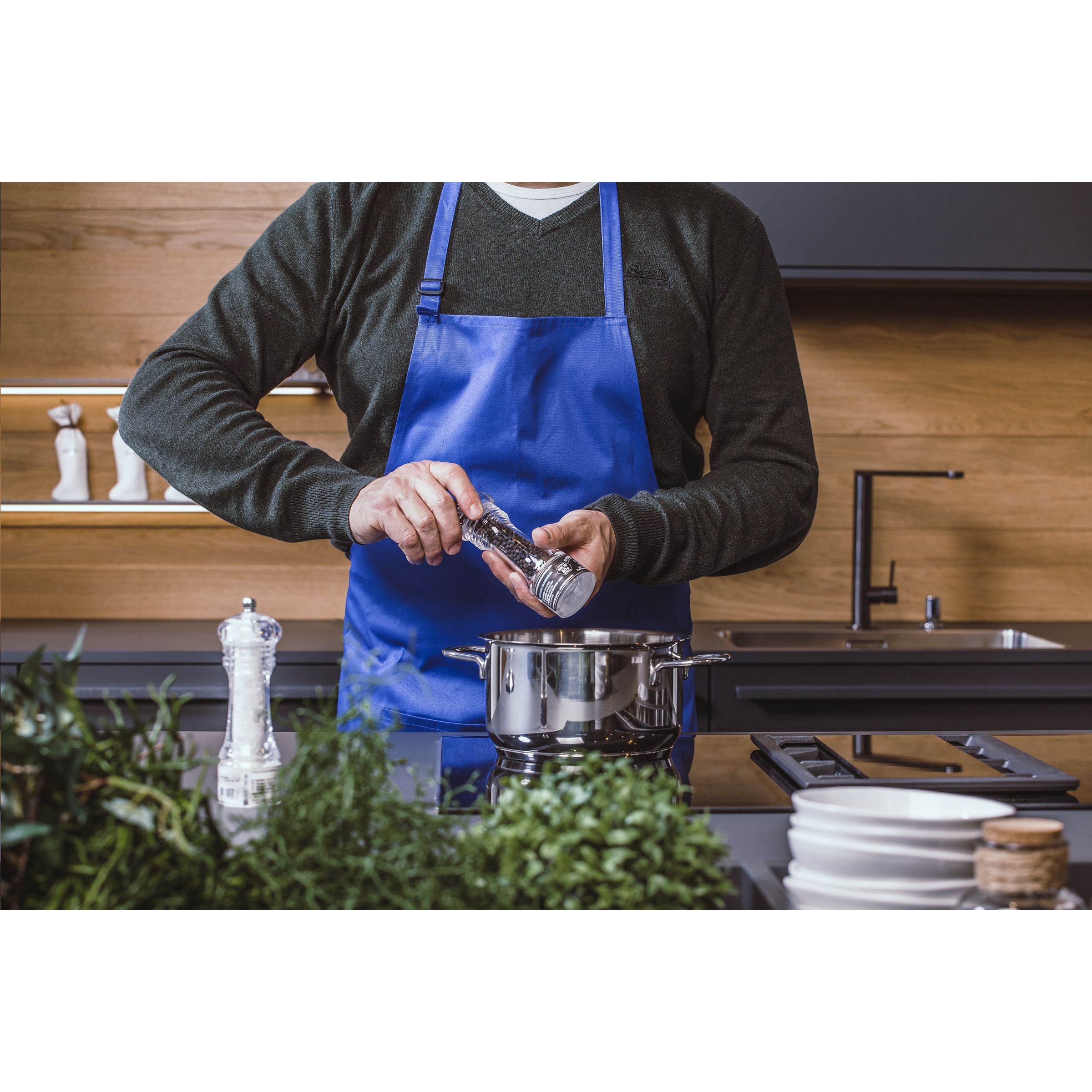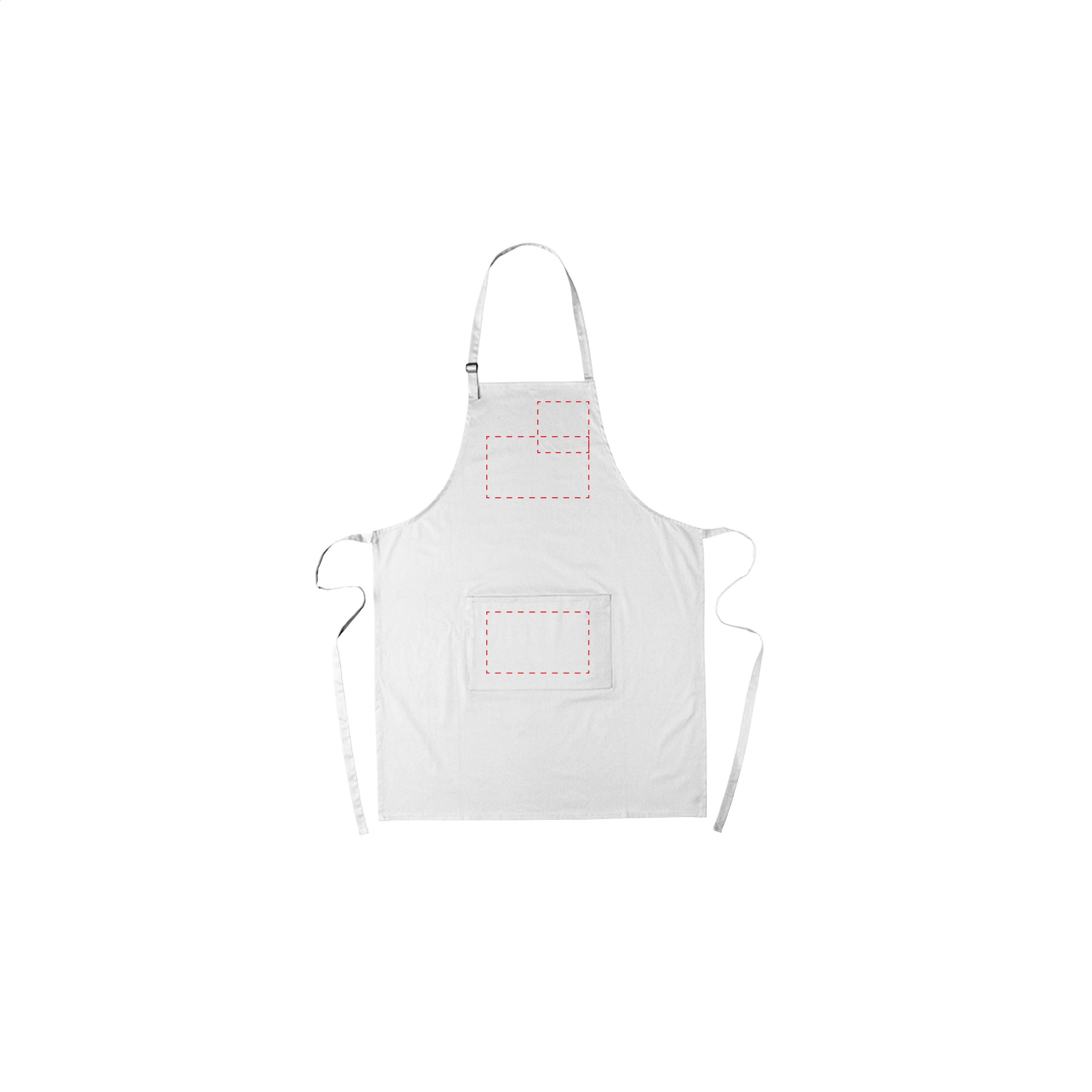Apron made of 100% cotton (180 g/m²). With a stitched pocket. The neckband can be adjusted with a plastic clasp. One size fits all