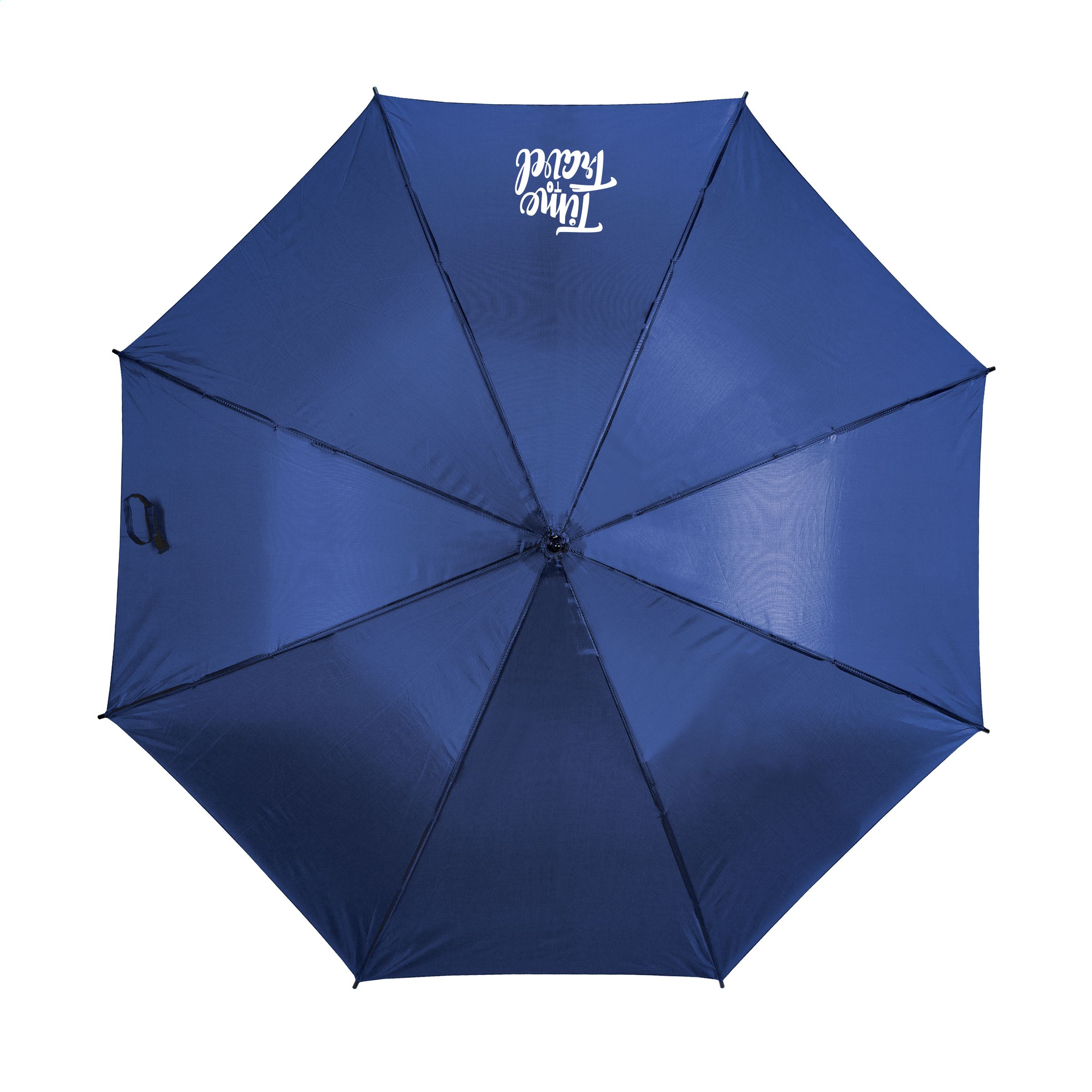 Umbrella with automatic telescopic opening. 190T polyester canopy, fibreglass frame, metal stem, velcro closure and classic curved handle.