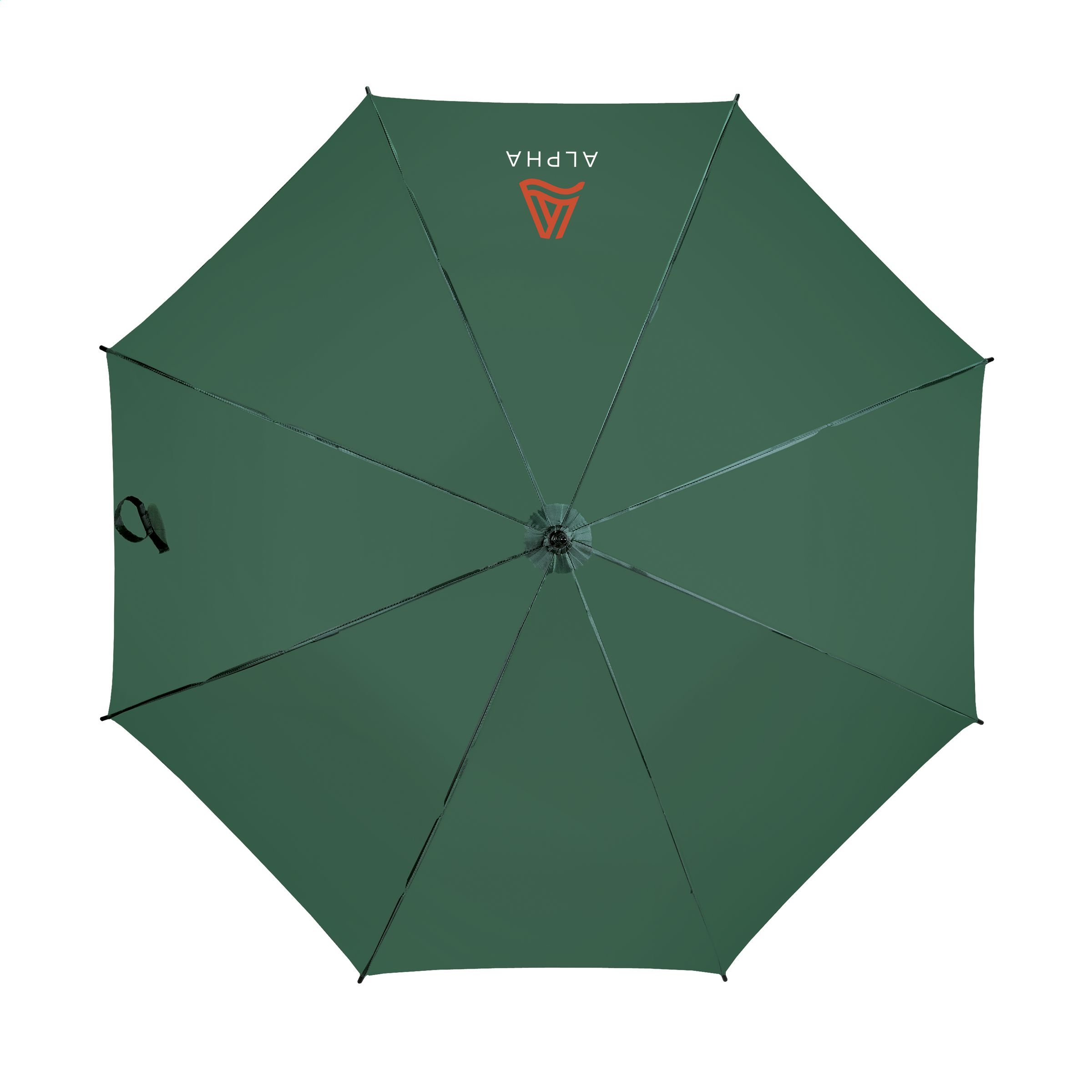 Umbrella with automatic telescopic opening. 190T polyester canopy, fibreglass frame, metal stem, velcro closure and classic curved handle.