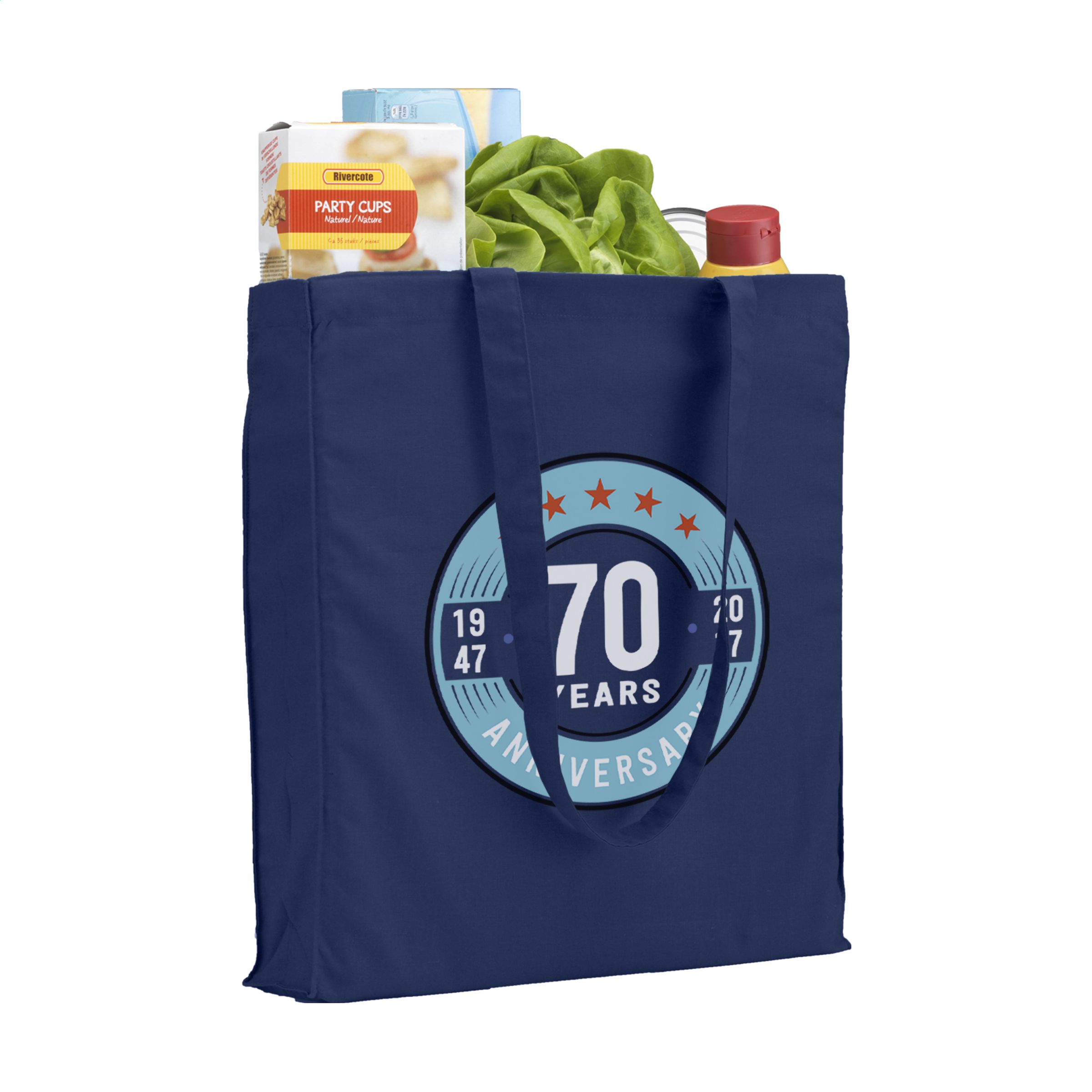 Sturdy shopper with long handles. Made of 100% woven cotton (160 g/m²).