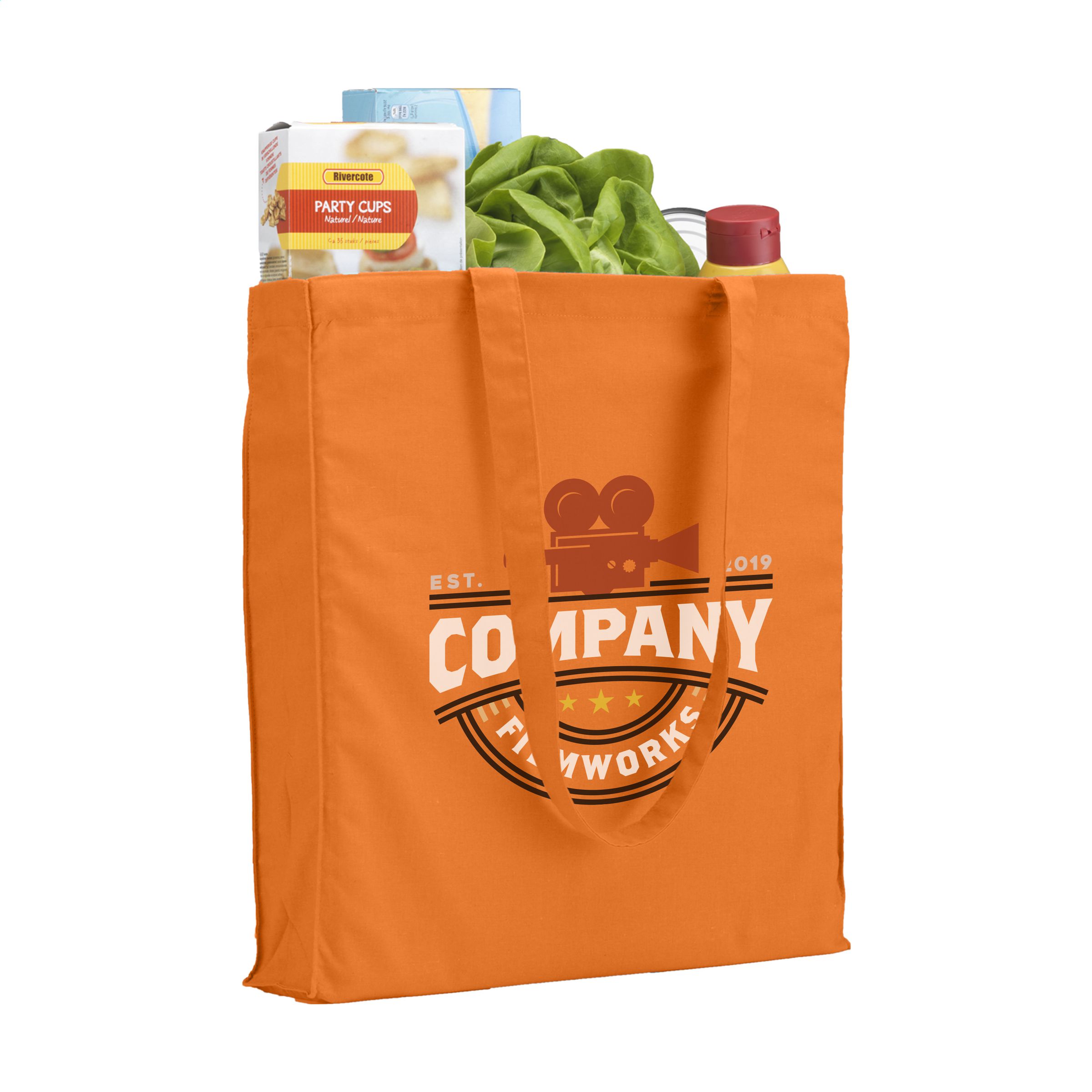 Sturdy shopper with long handles. Made of 100% woven cotton (160 g/m²).