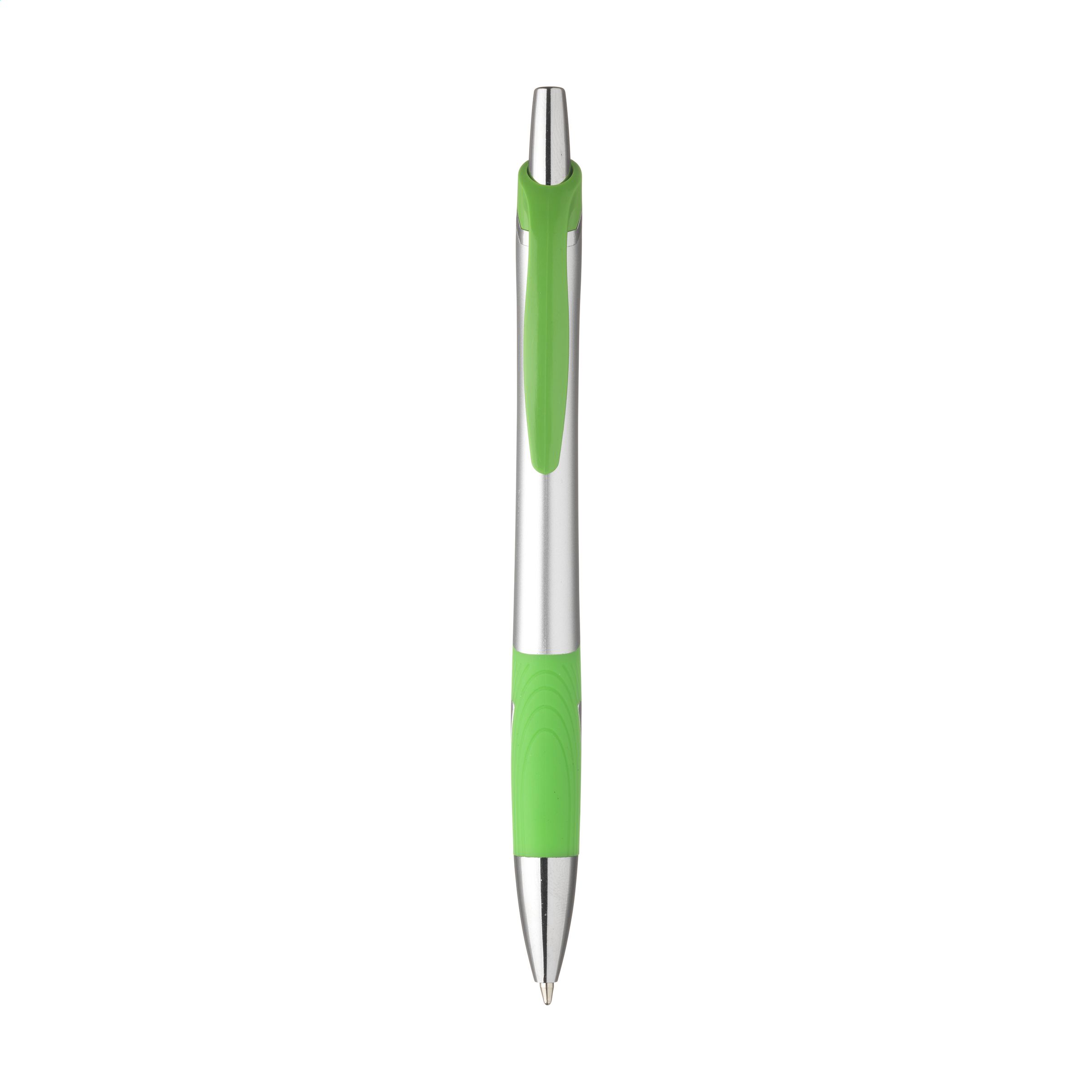 Blue ink pen ballpoint pen, made in a combination of matte and gloss. With rubber, non-slip grip and striking accents.