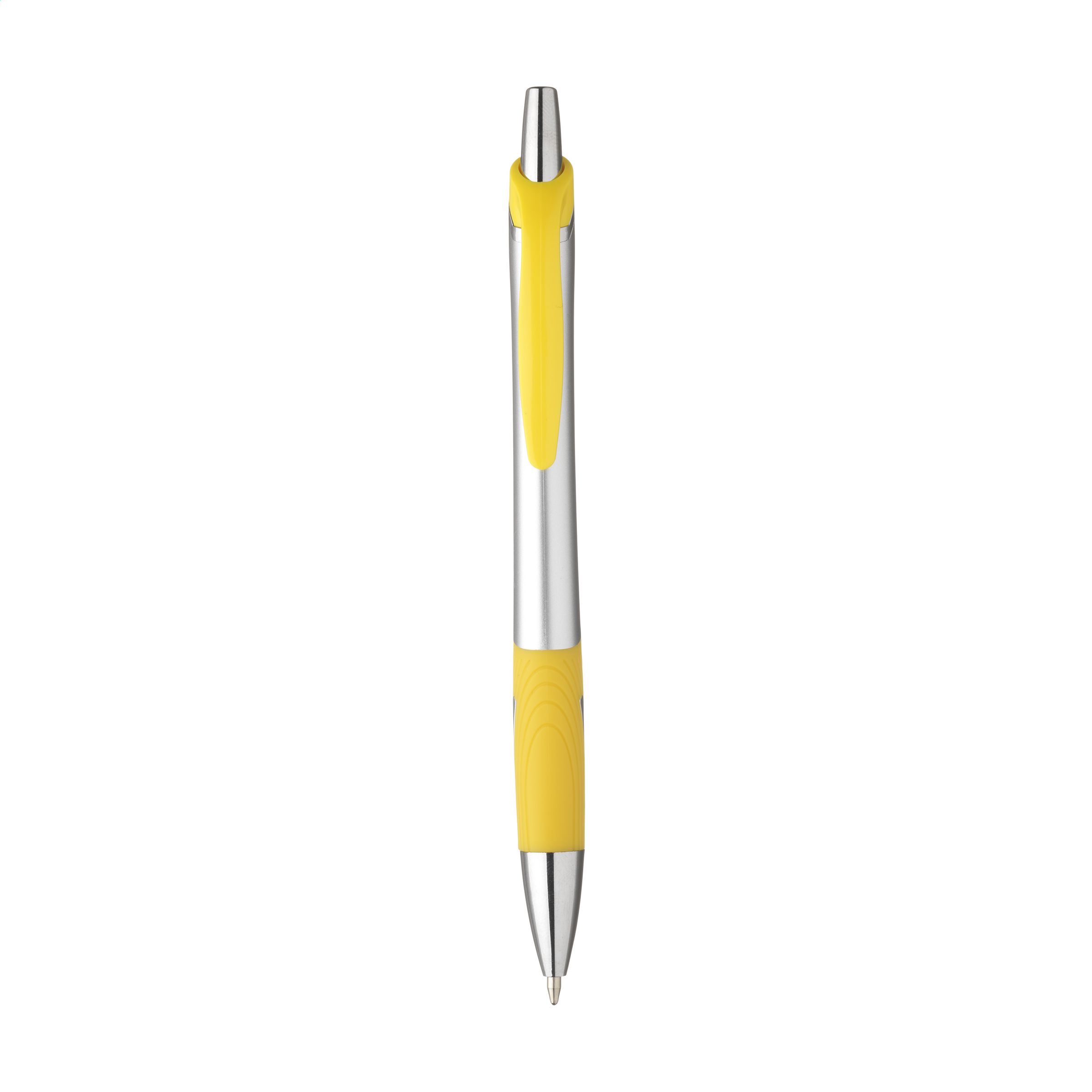 Blue ink pen ballpoint pen, made in a combination of matte and gloss. With rubber, non-slip grip and striking accents.