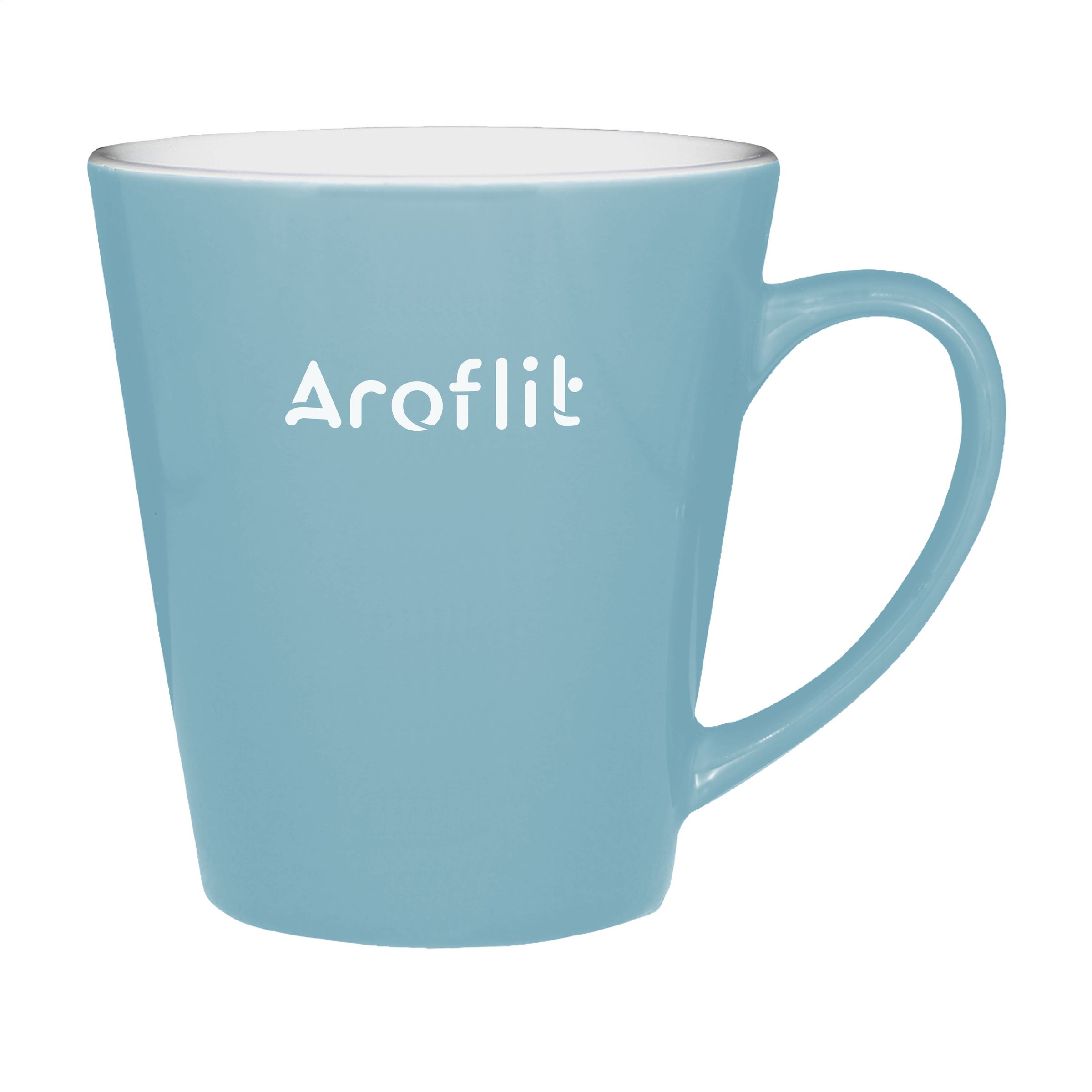 Contemporary quality ceramic mug. In all white or with a coloured exterior. Dishwasher safe. Capacity 310 ml. The imprint is dishwasher tested and certified: EN 12875-2.