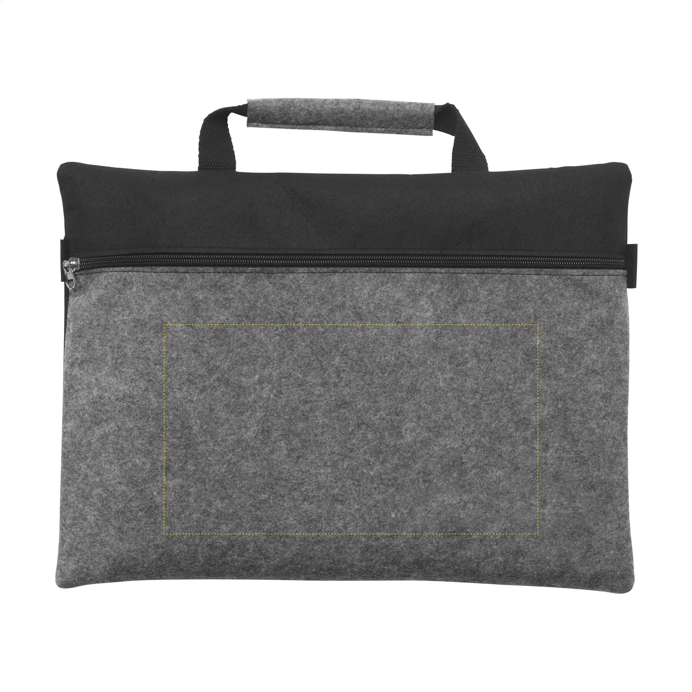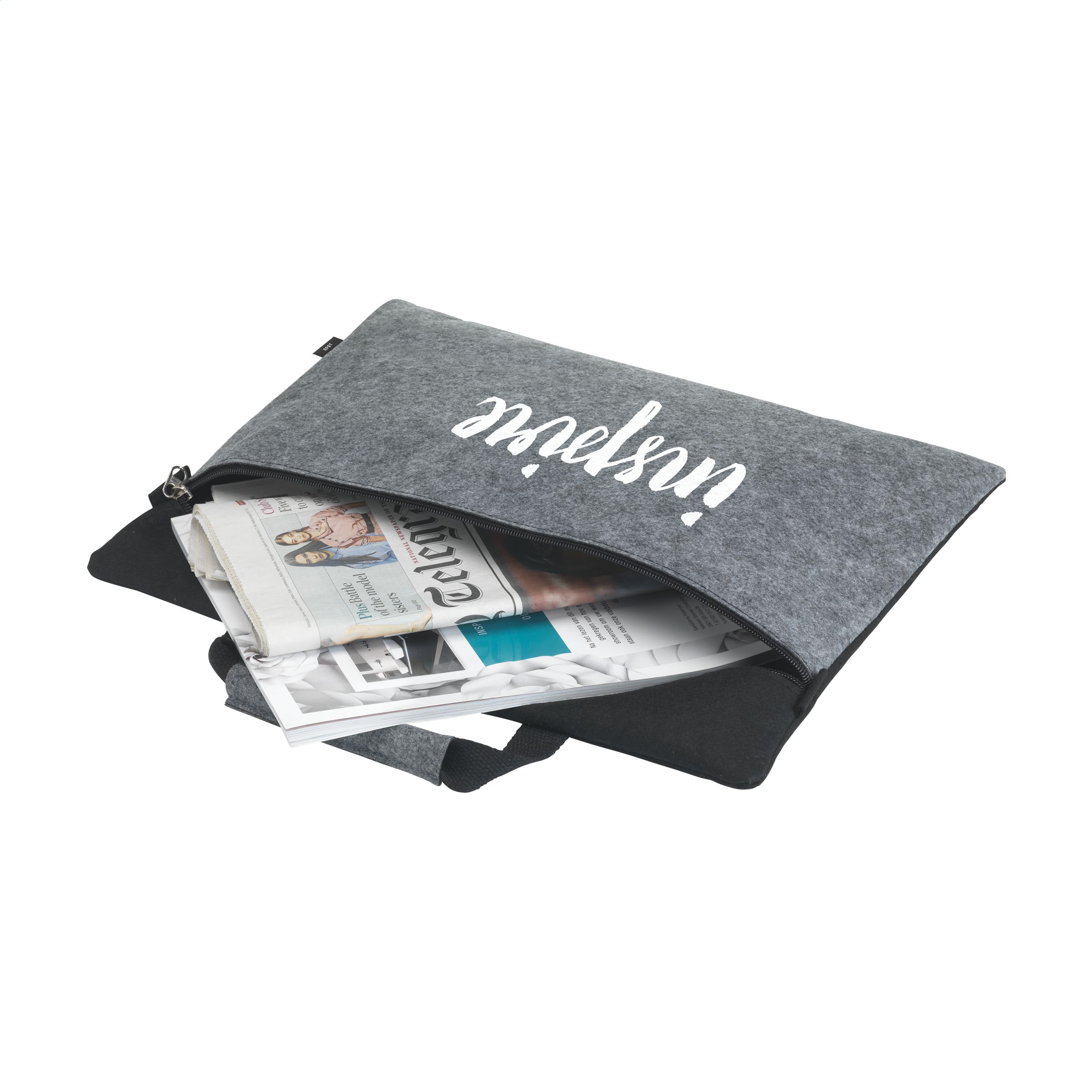 Large document bag made from RPET felt (made from recycled PET bottles) in an elegant combination of grey and black. With zipper and reinforced handle.