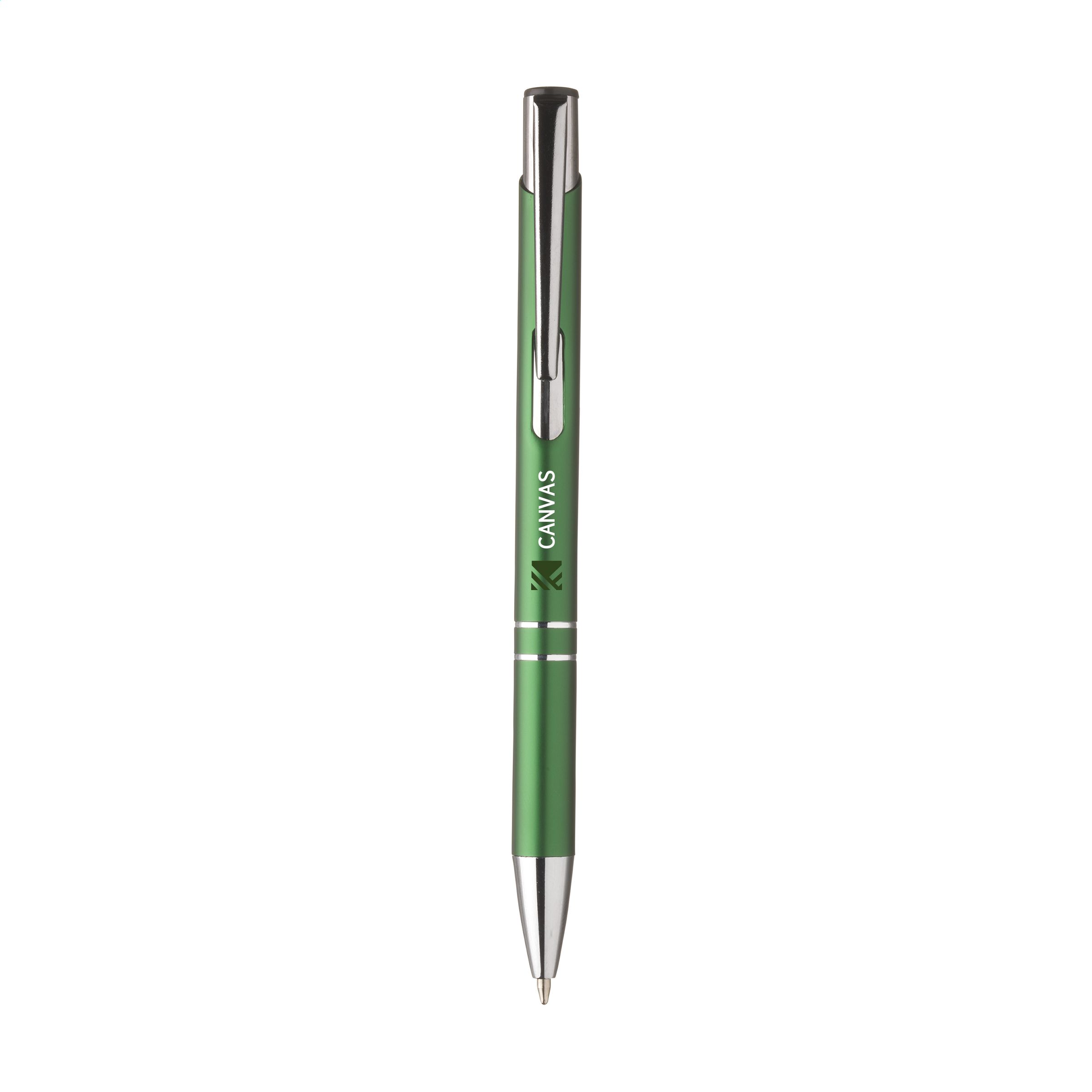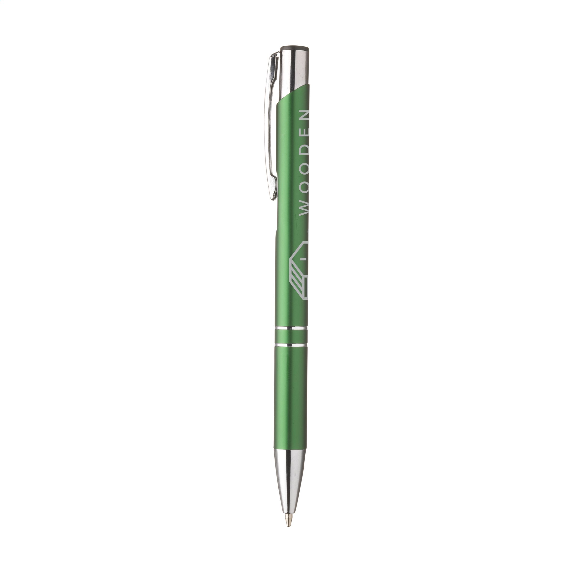 Blue or black ink, aluminium ballpoint pen with matte coloured, metallic look barrel and metal clip/push button. Give your gift more character with our stylish gift packaging.