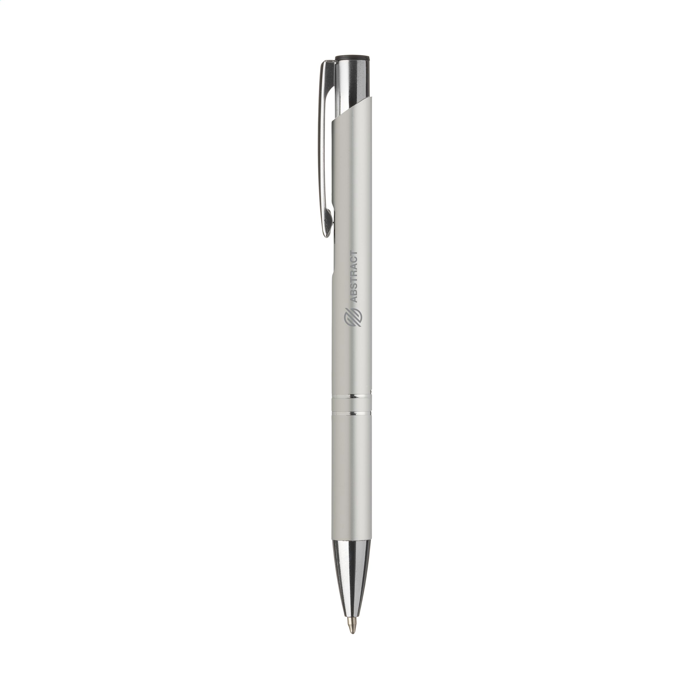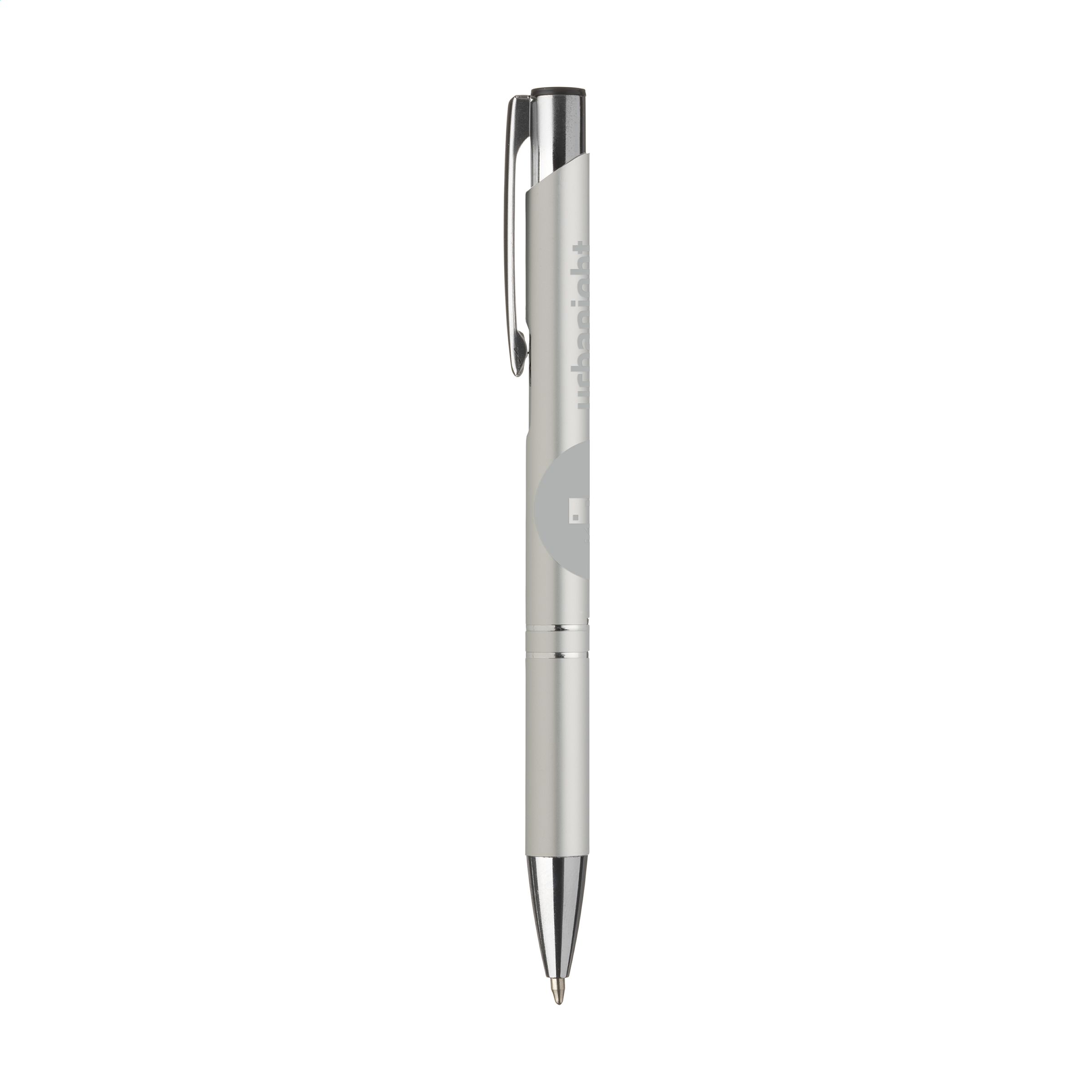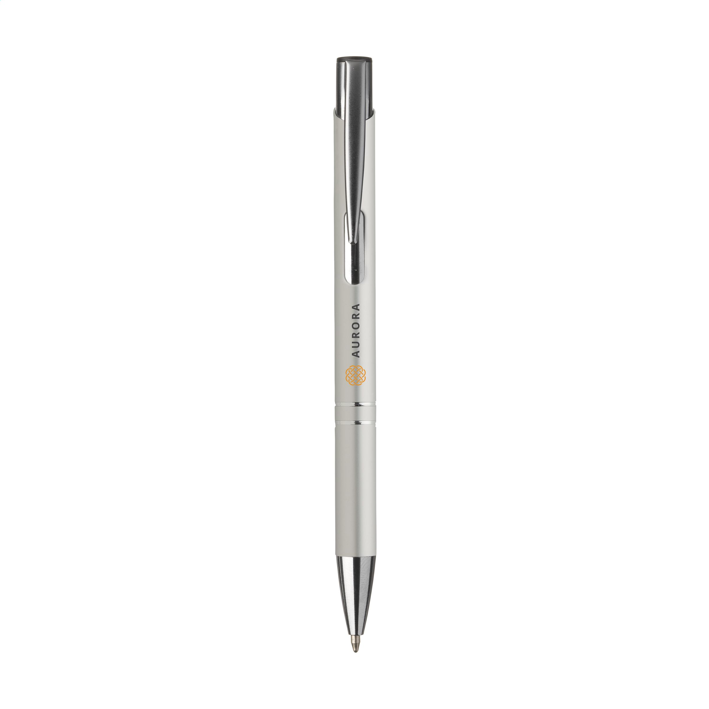 Blue or black ink, aluminium ballpoint pen with matte coloured, metallic look barrel and metal clip/push button. Give your gift more character with our stylish gift packaging.