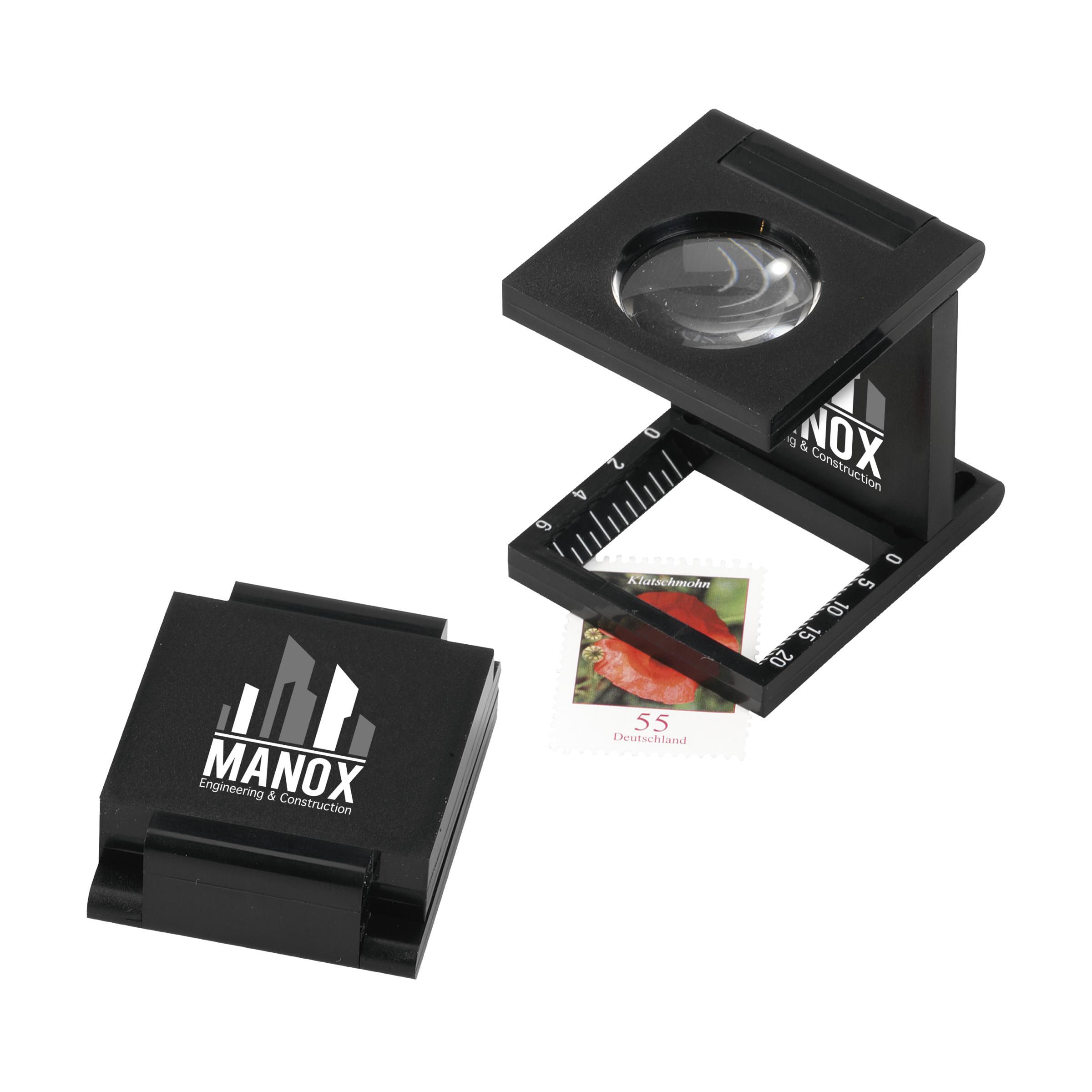Foldable magnifying glass with magnification factor 8. Each piece in a box.