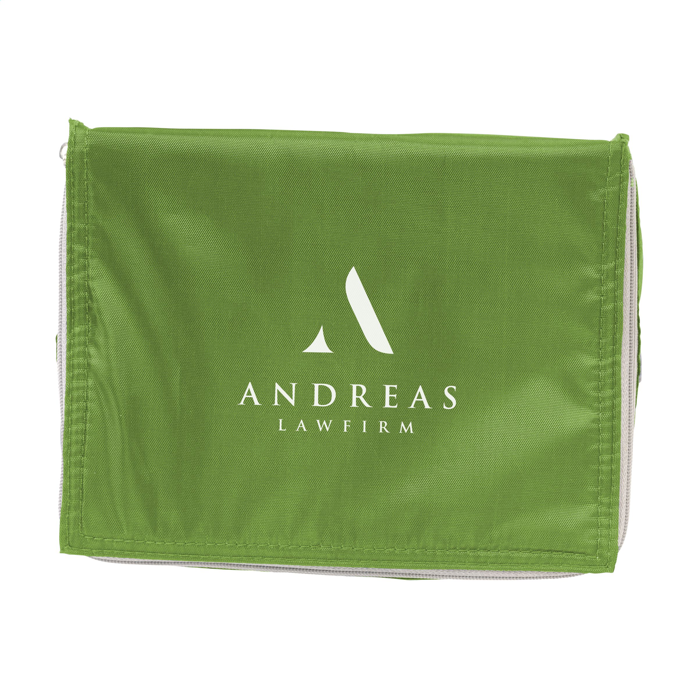 Cooler bag made from 210D RPET polyester: made from recycled PET bottles. Suitable for 6 drink cans. With carrying strap.
