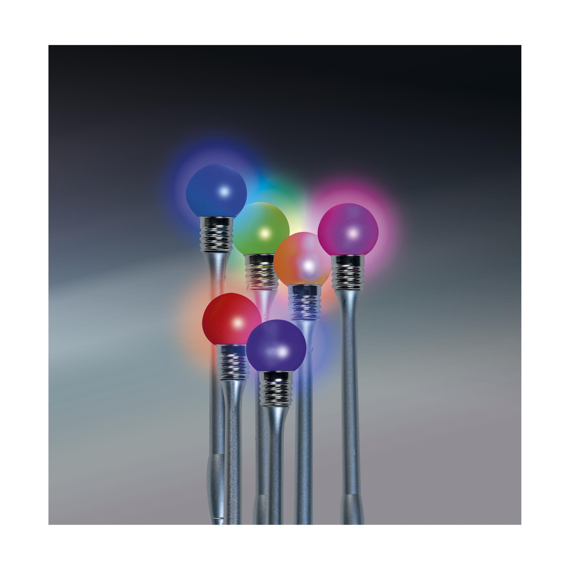 Blue ink ballpoint pen with a coloured light bulb that flickers for 10 seconds as soon as you tap the end. Batteries incl. With lid. Supplied as an assortment of 6 colours.