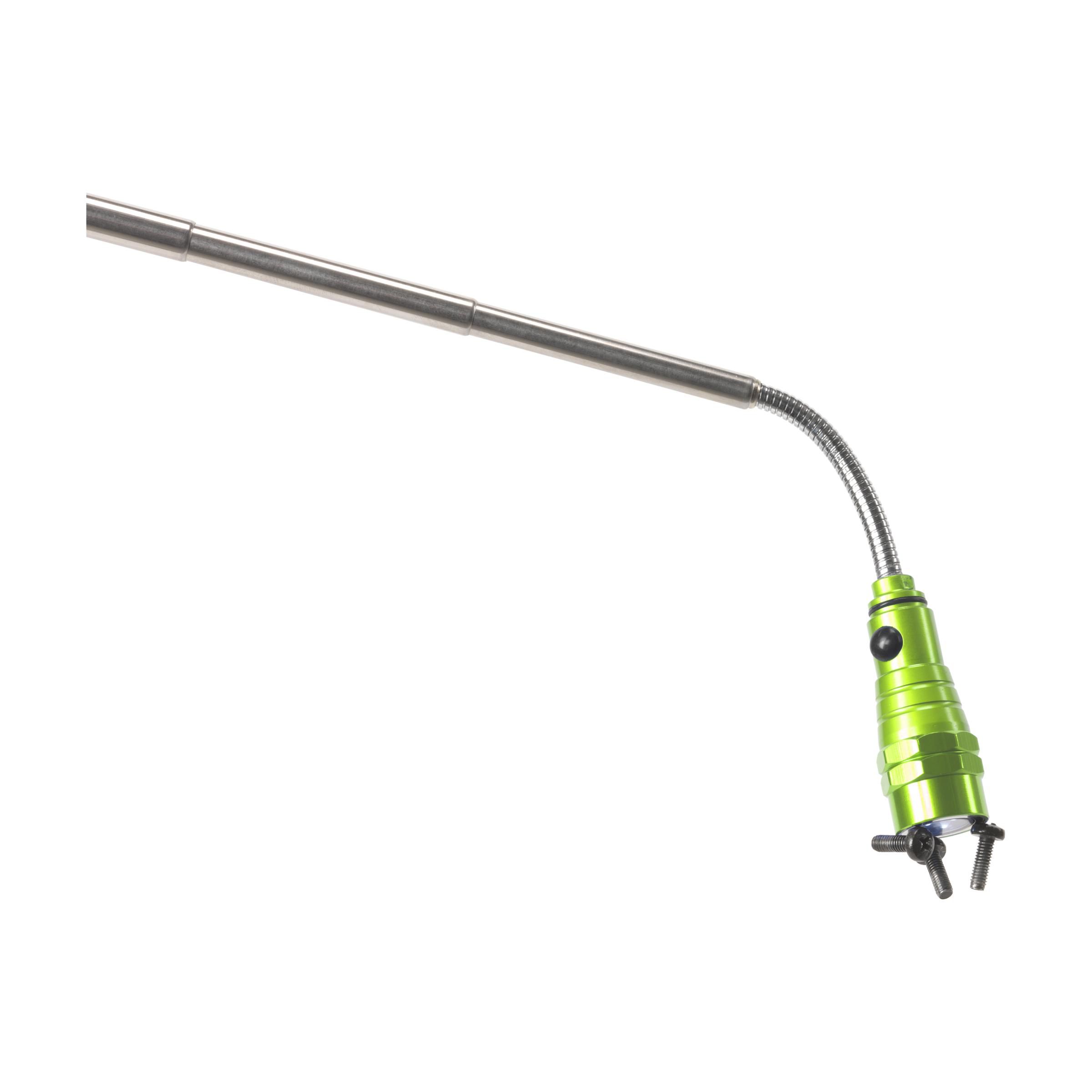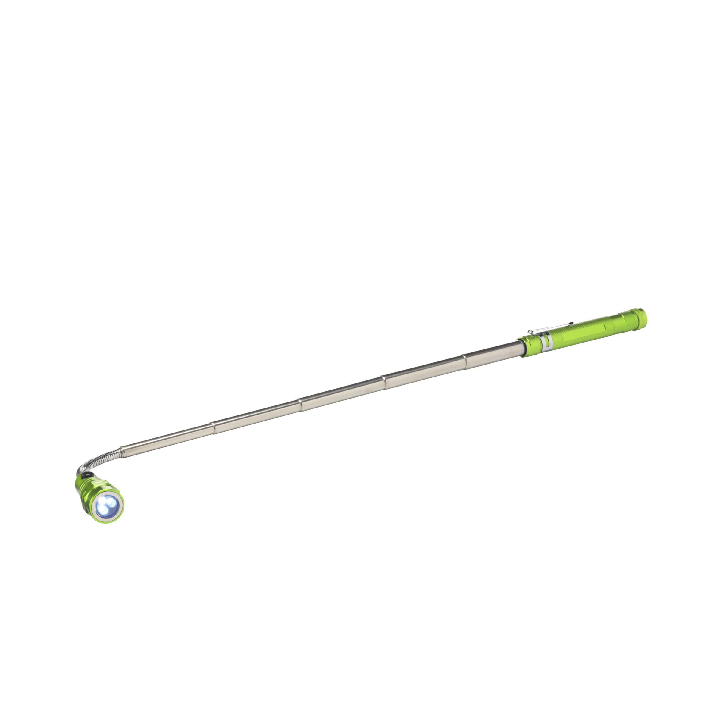 Stainless steel torch with 3 bright white energy efficient LED lights. Equipped with a telescopic function, extendable to 56.5 cm, flexible, magnetic top and clip. Batteries incl. Each piece in a box.