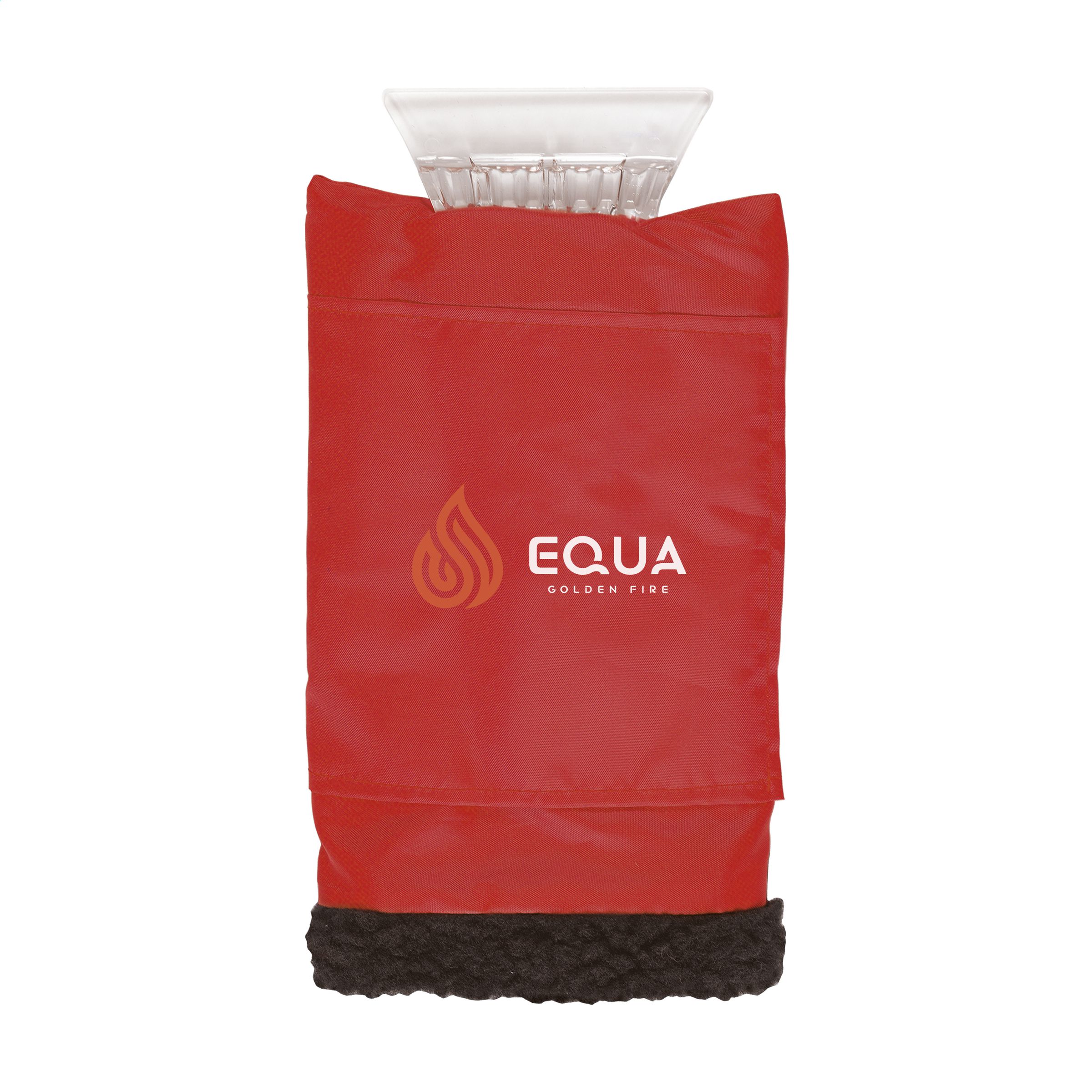Plastic ice scraper and nylon glove with soft, cosy lining.