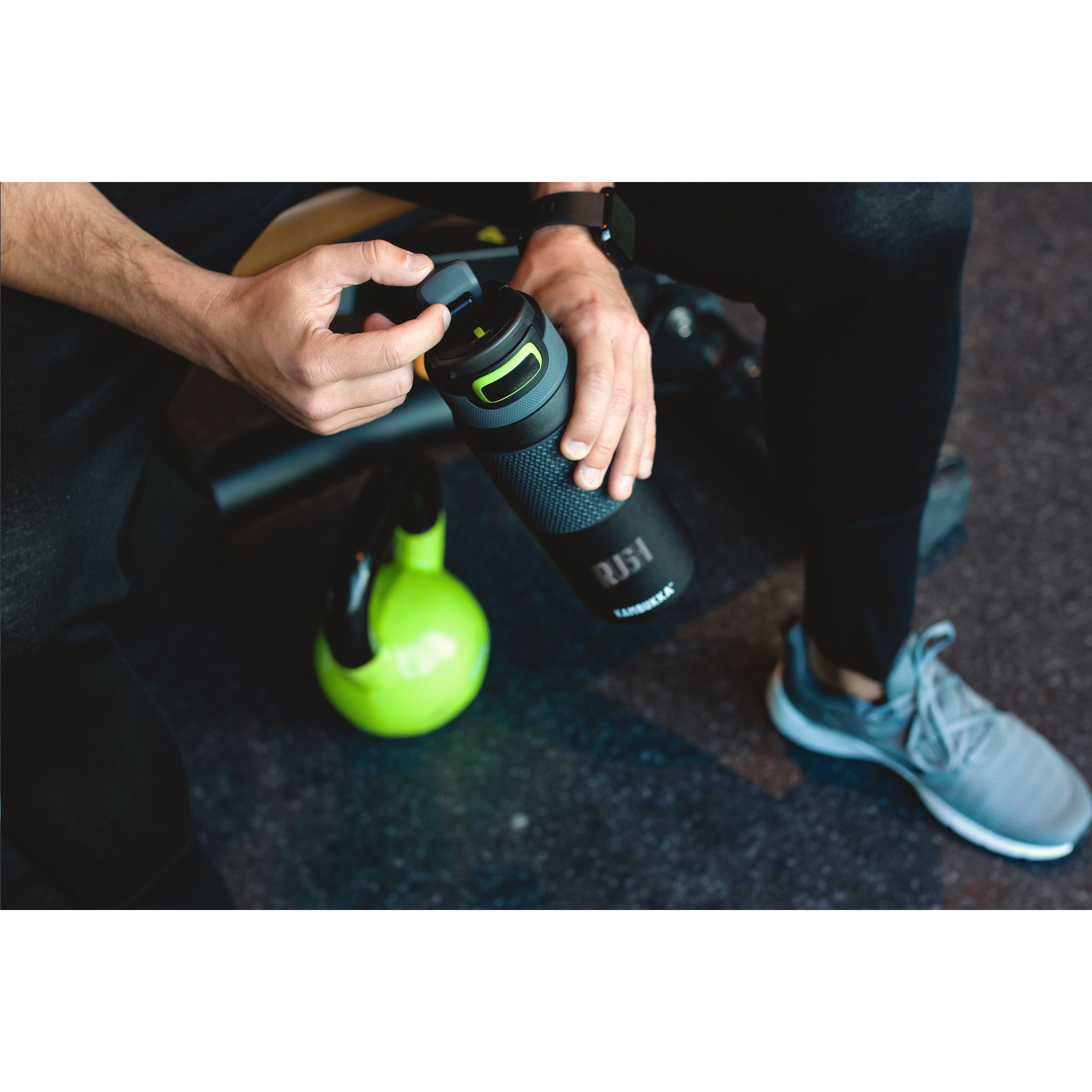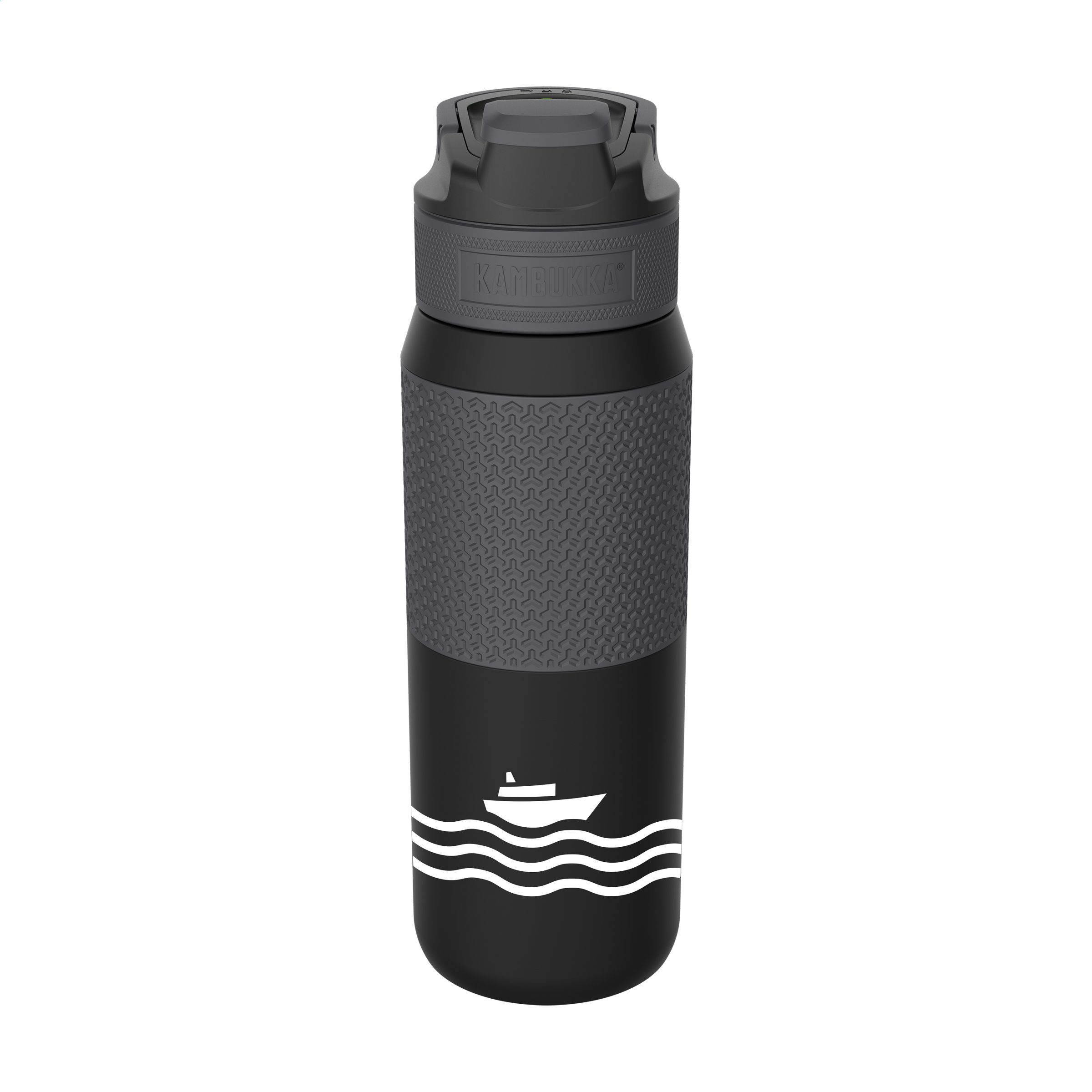 Durable, vacuum insulated 18/8 stainless steel water bottle made by Kambukka® • excellent quality • BPA-free • keeps drinks cold for up to 21 hours • 3-in-1 lid with 2 drinking positions; just push to take a quick sip, or open it completely to drink just as comfortably as from a mug, without spilling • easy to clean thanks to Snapclean®; just pinch and pull to remove the inner, dishwasher-safe mechanism • universal lid; also fits on other Kambukka® drinking bottles • the lid is heat-resistant and dishwasher-safe • handy rubberized grip • non-slip base • 100% leakproof • contents 750 ml.