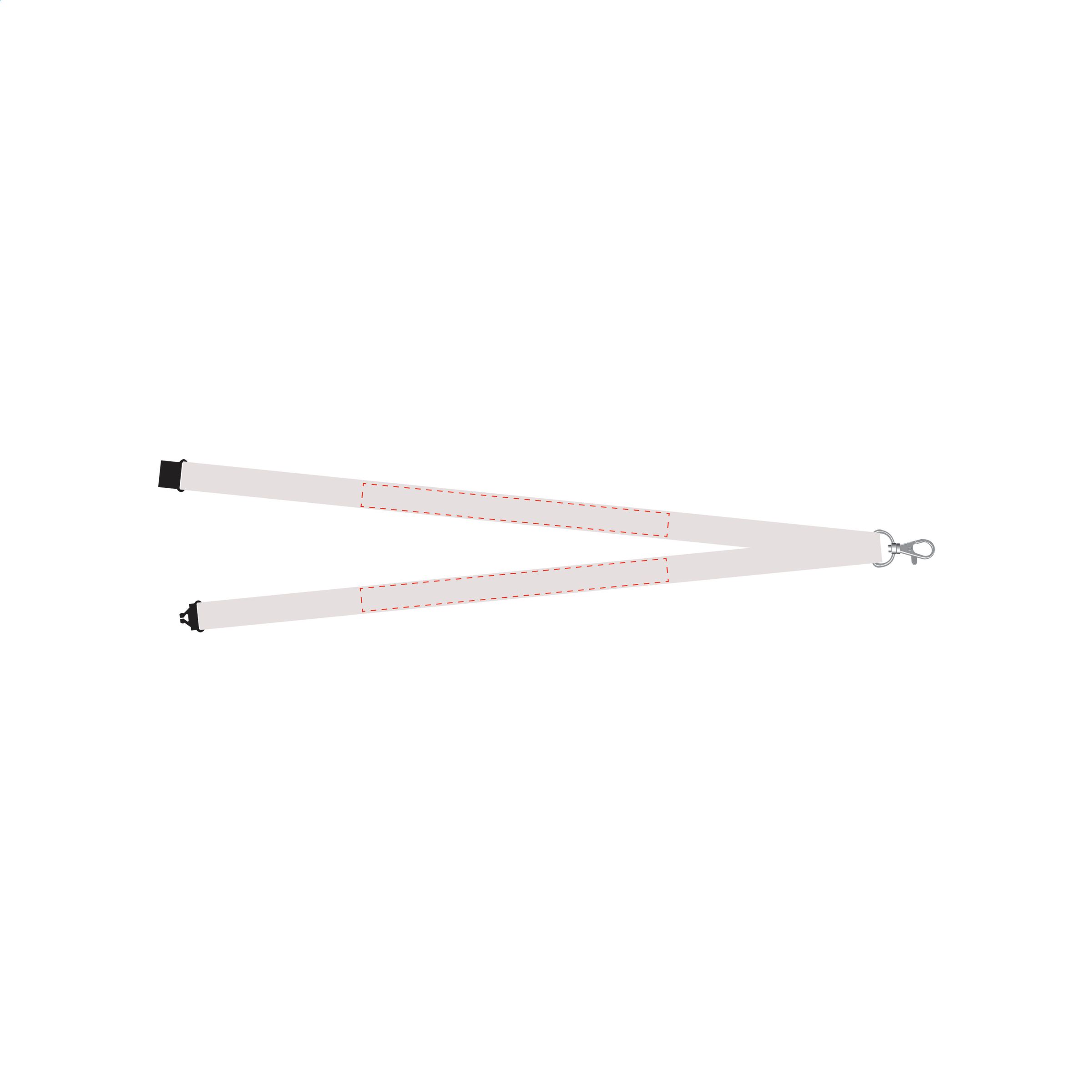 Polyester lanyard with metal carabiner and plastic safety clasp.