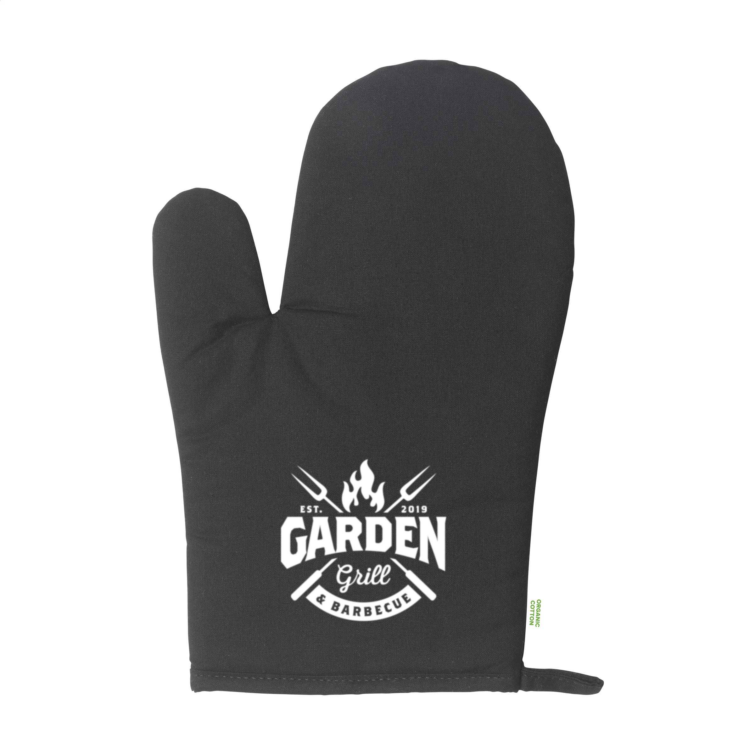 Thick oven glove made from 100% organic cotton. Padded and lined with flannel. Provided with a hanging loop. An ecologically responsible product.