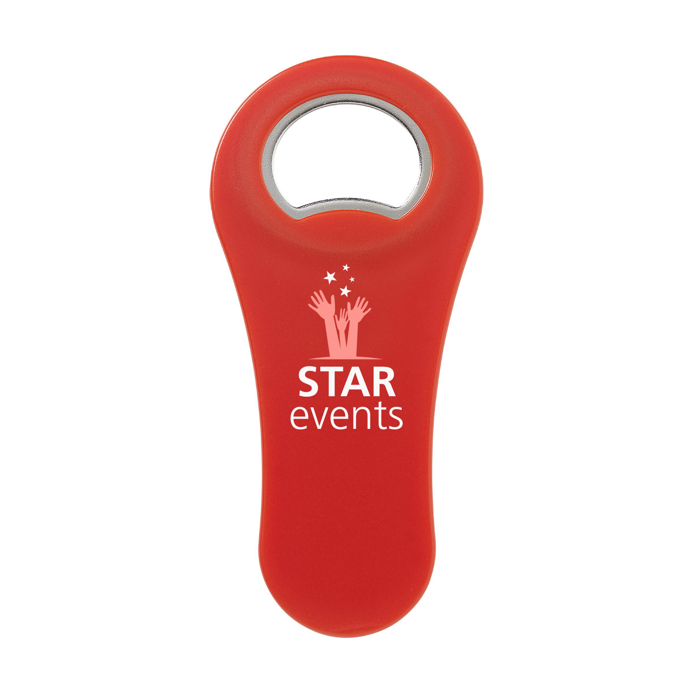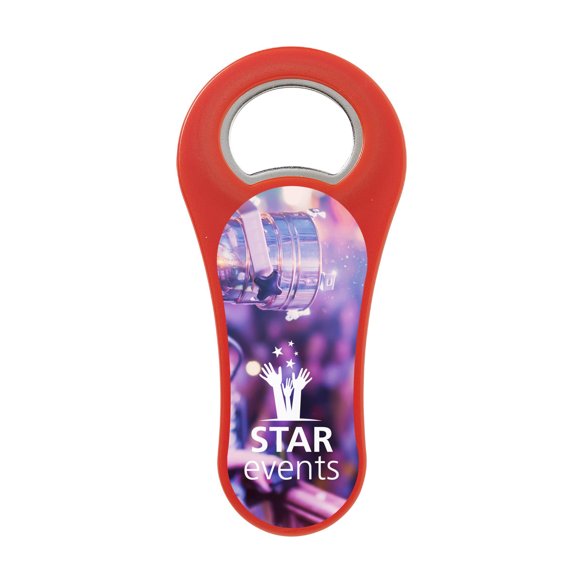Bottle opener with strong magnet in the back. Can be printed with your own photo, logo or design in full colour. Great to send with a direct mail.