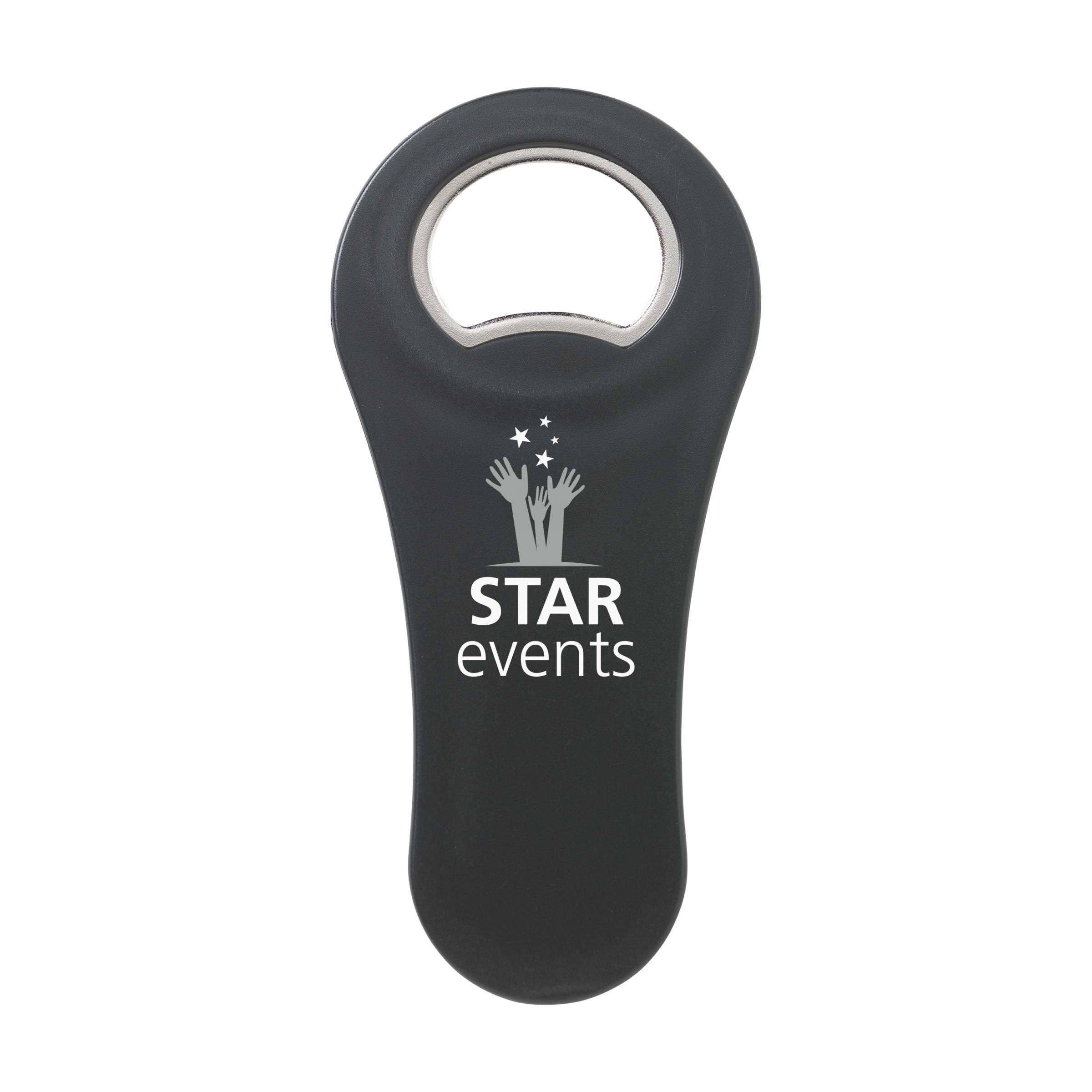 Bottle opener with strong magnet in the back. Can be printed with your own photo, logo or design in full colour. Great to send with a direct mail.