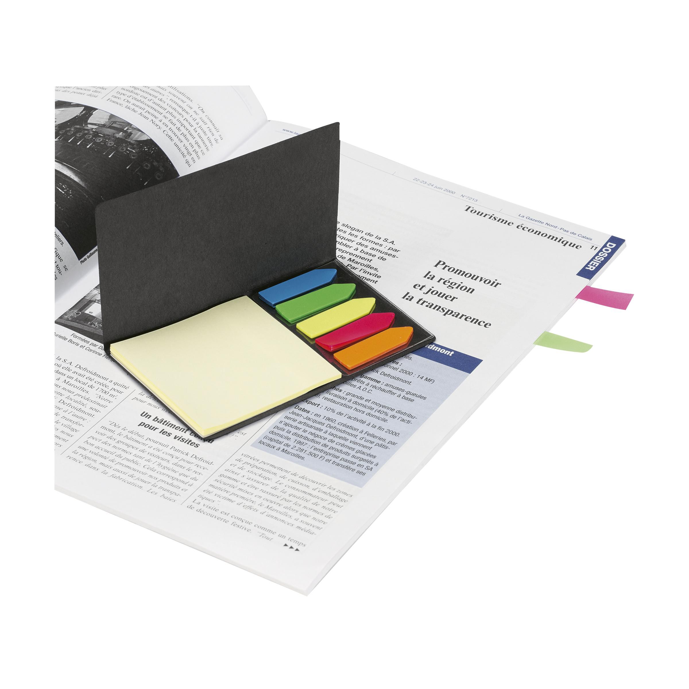 Memo set with approx. 25 sticky note sheets and 125 writable translucent page markers.