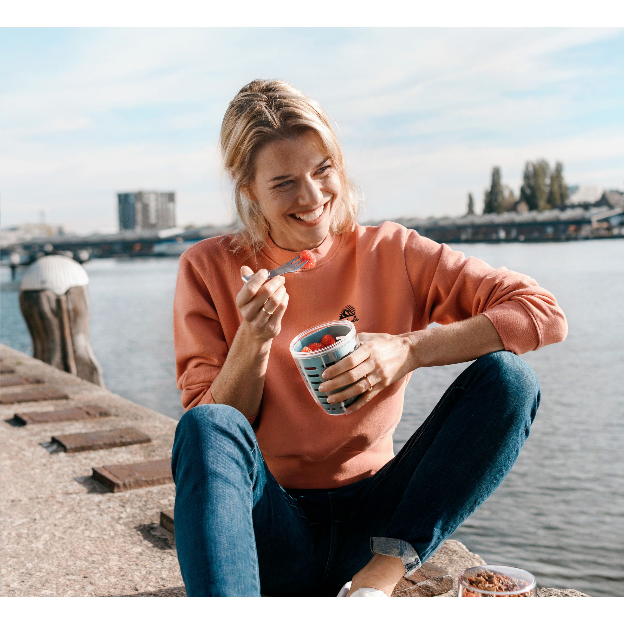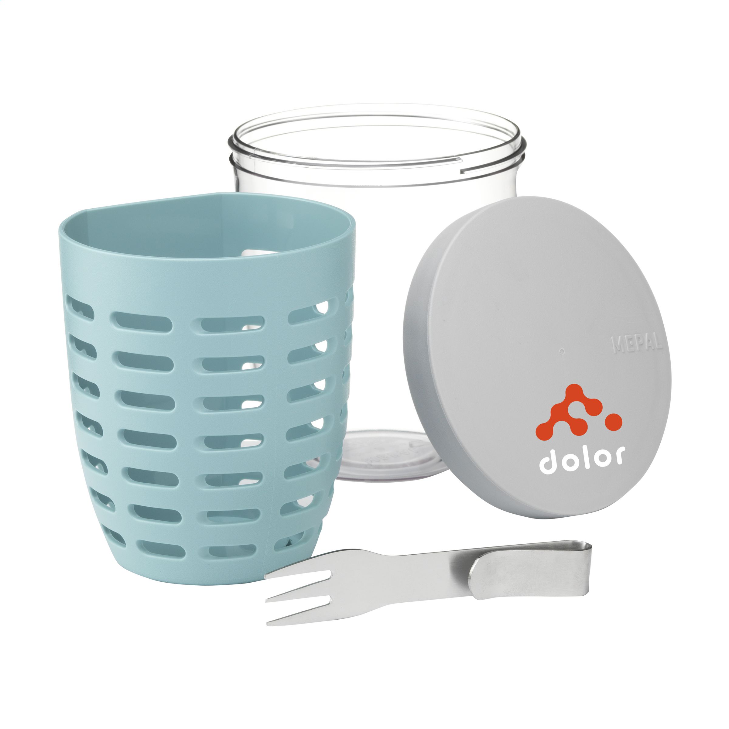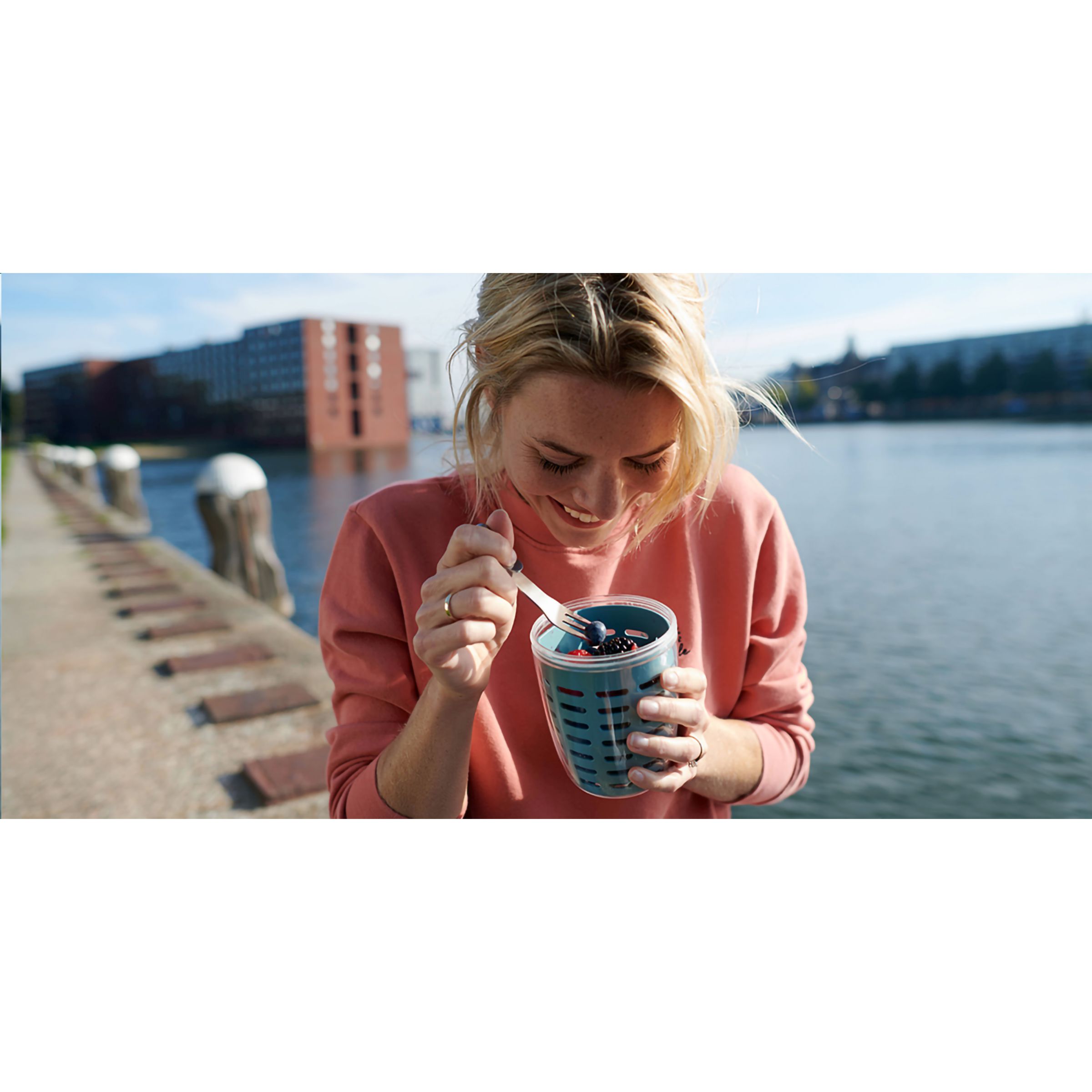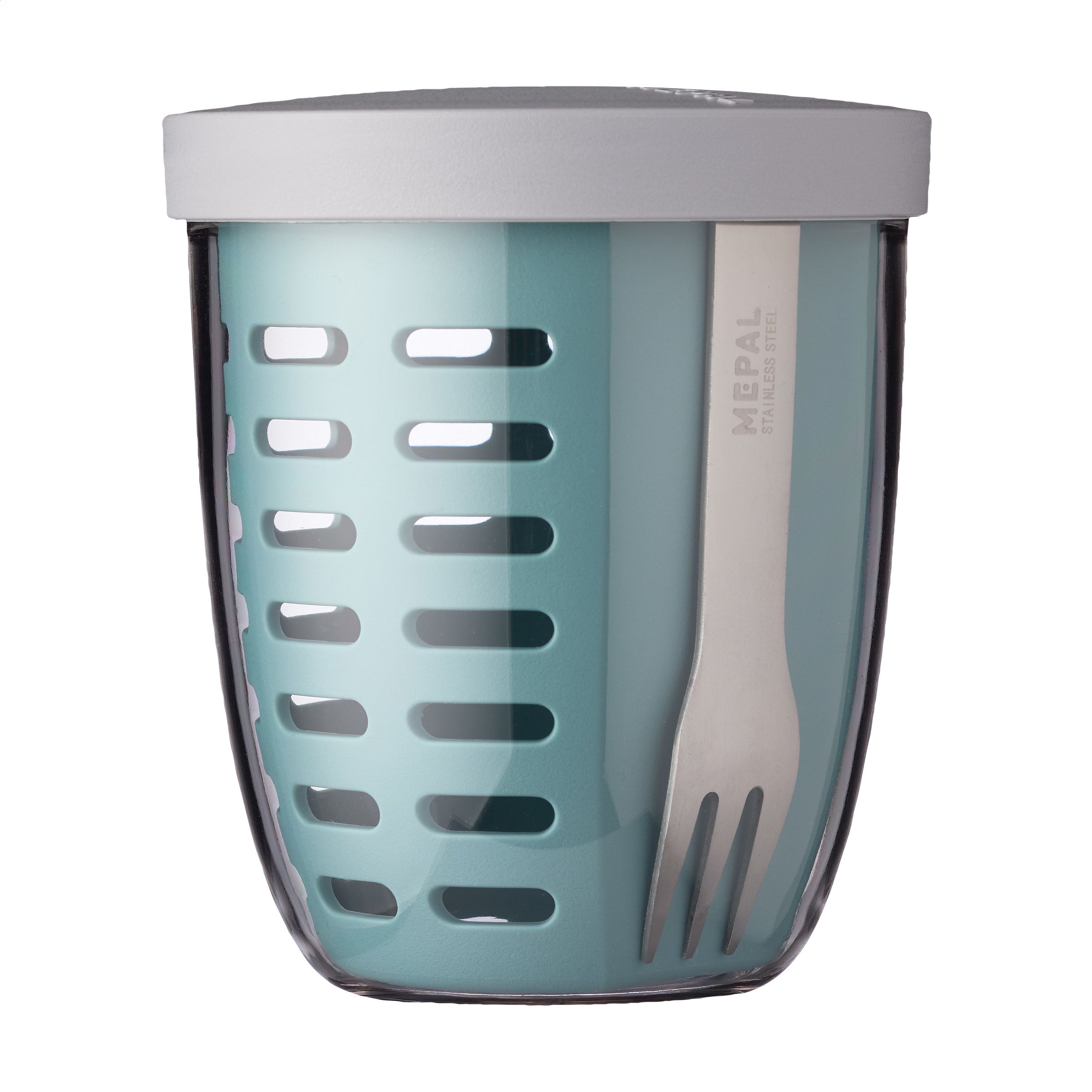 Durable plastic fruit and veggie pot made by Mepal. You can rinse fruit and vegetables on the spot using the colander. Includes stainless steel fork. Easy to take a healthy snack with you. The screw lid also fits several other snack, lunch and food jars from the Ellipse series. A premium high-quality product. BPA-free, Food Approved and 100% leak-proof. Comes with a 2-year Mepal manufacturer’s warranty. Made in Holland.
