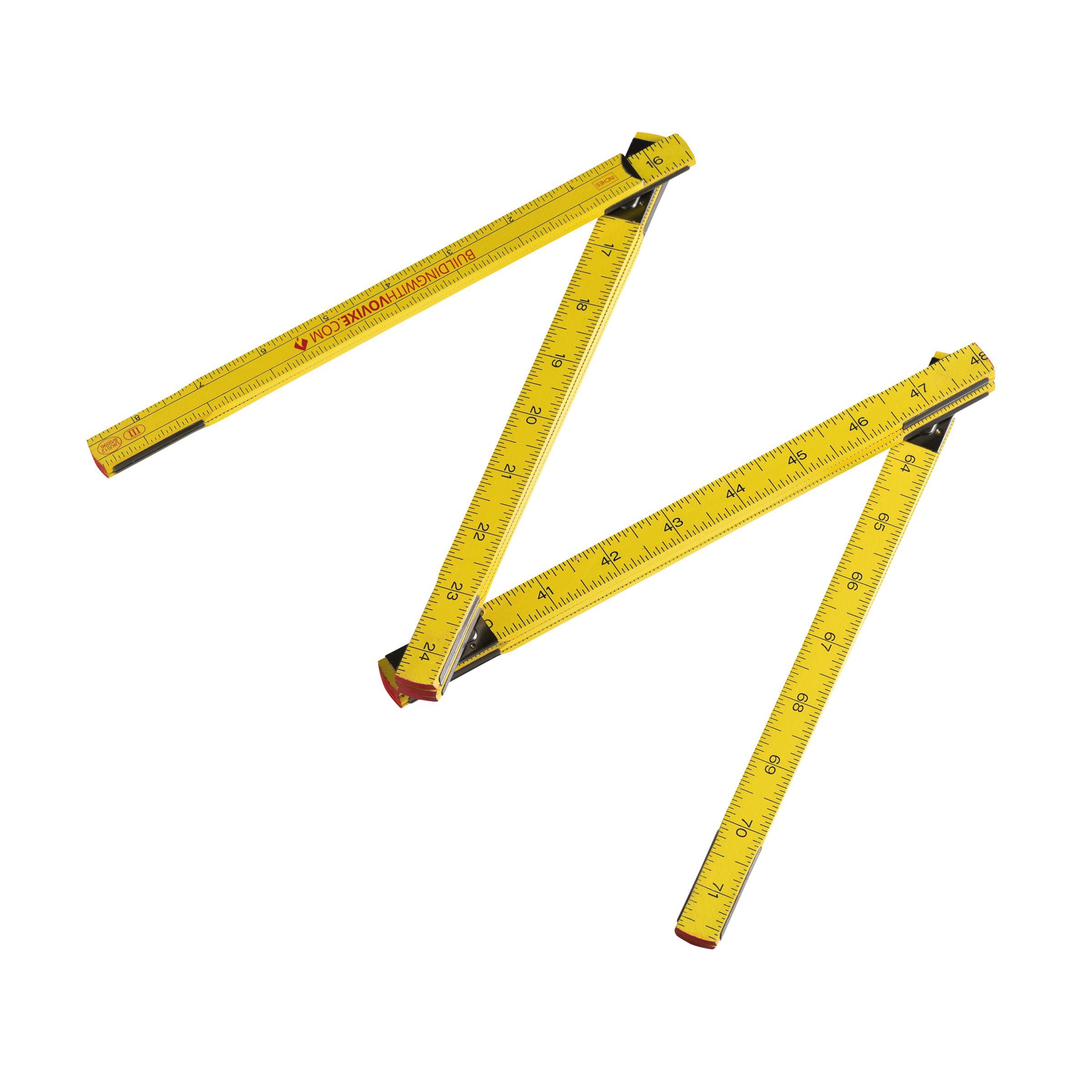 Folding ruler, made of lacquered wood, with a length of 2 m/78 in. In centimetres on one side and inches on the other side. In accordance to European standards.