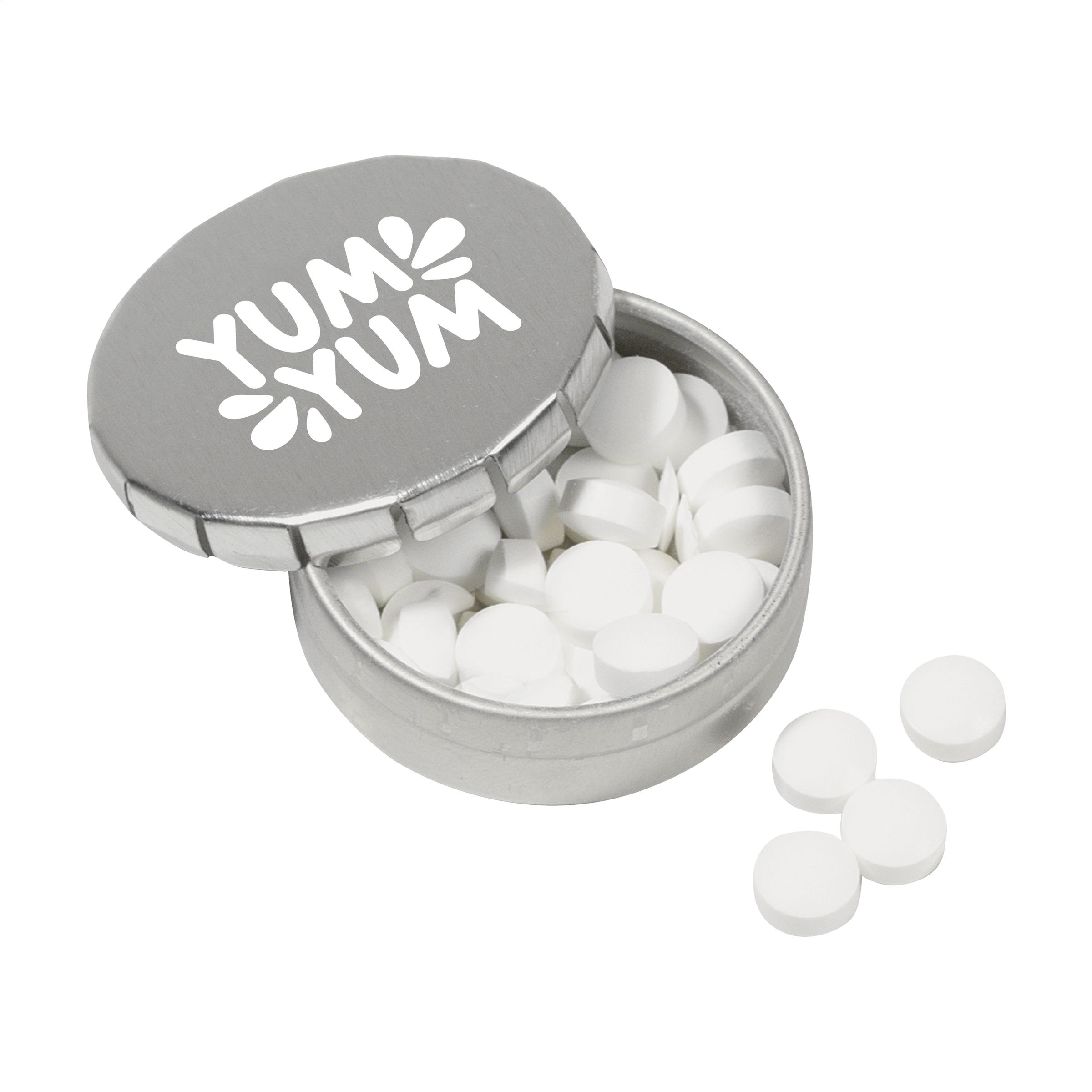 Tin with a handy push/click system. Filled with approx. 12 g of sweets.