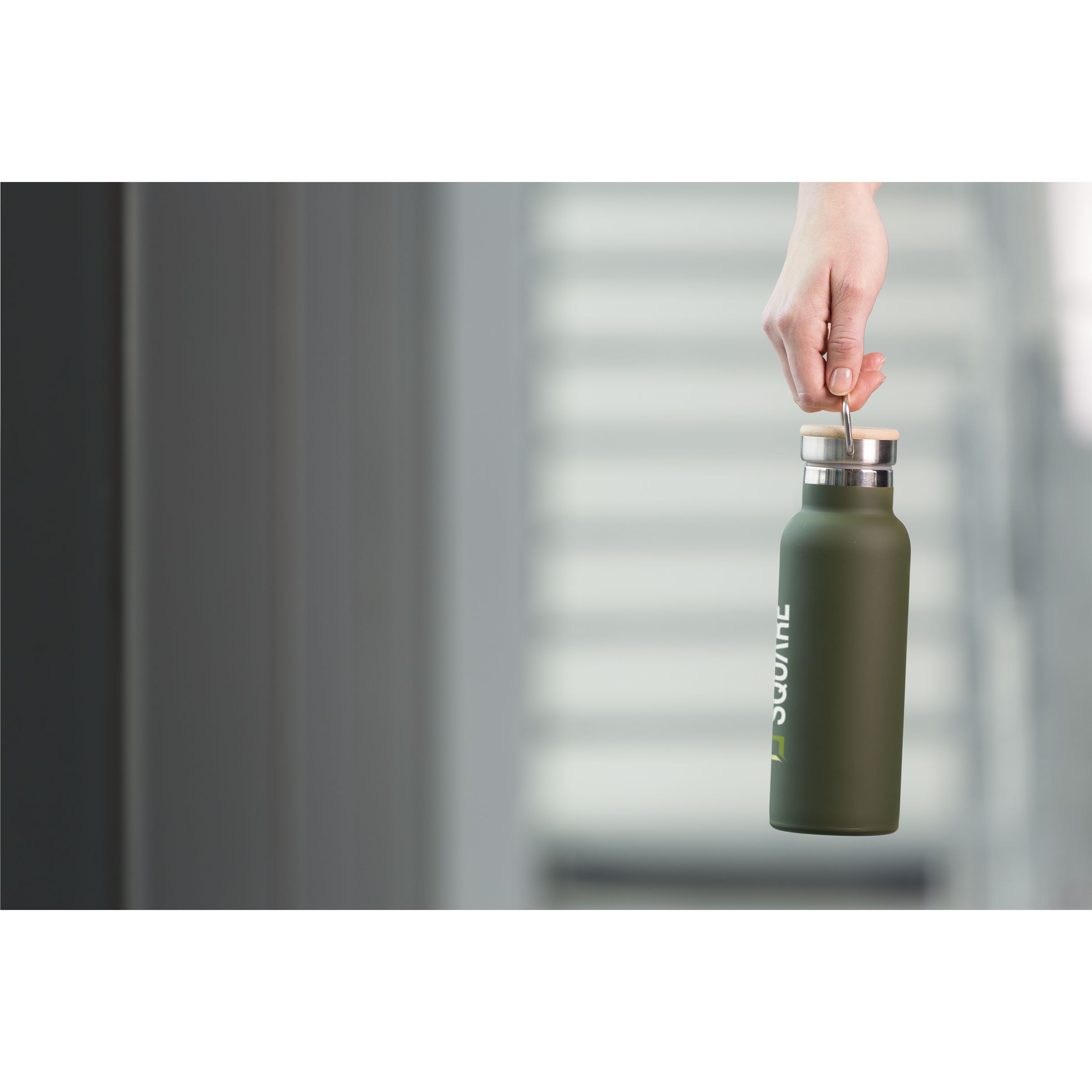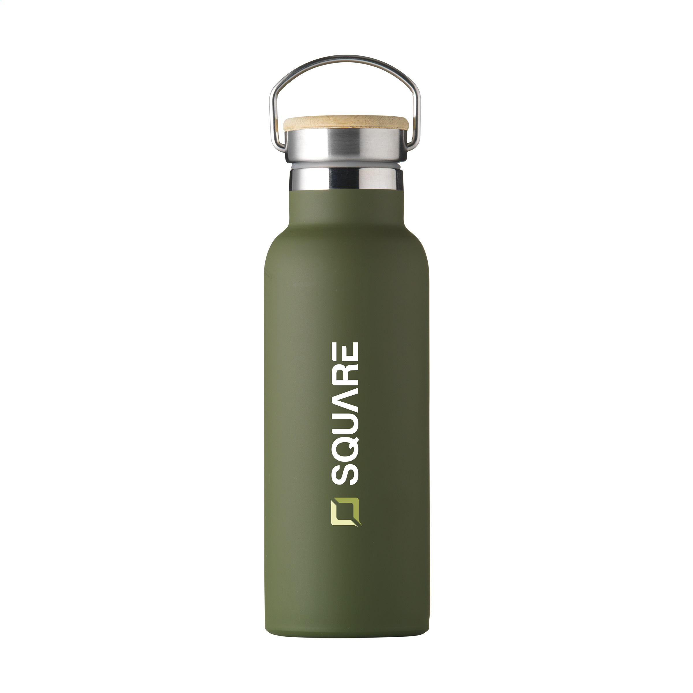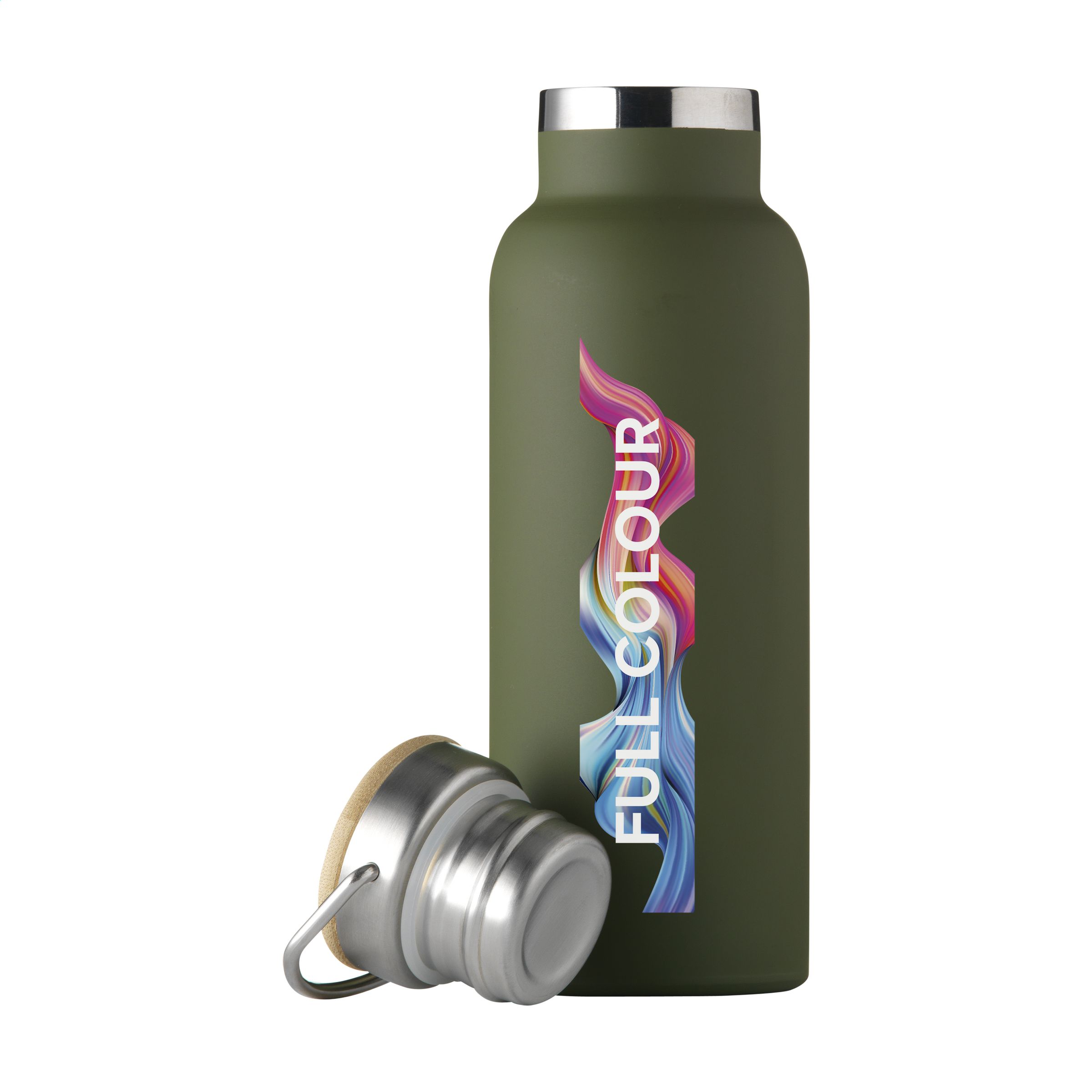 Double-walled, leak-proof stainless steel water bottle/thermo bottle. Vacuum-insulated. The handy screw cap is a made of a combination of stainless steel and bamboo. Suitable for maintaining the temperature of cold or hot drinks. Design based on the vintage glass milk bottle. Capacity 500 ml. Available in various designs. Each item is individually boxed.