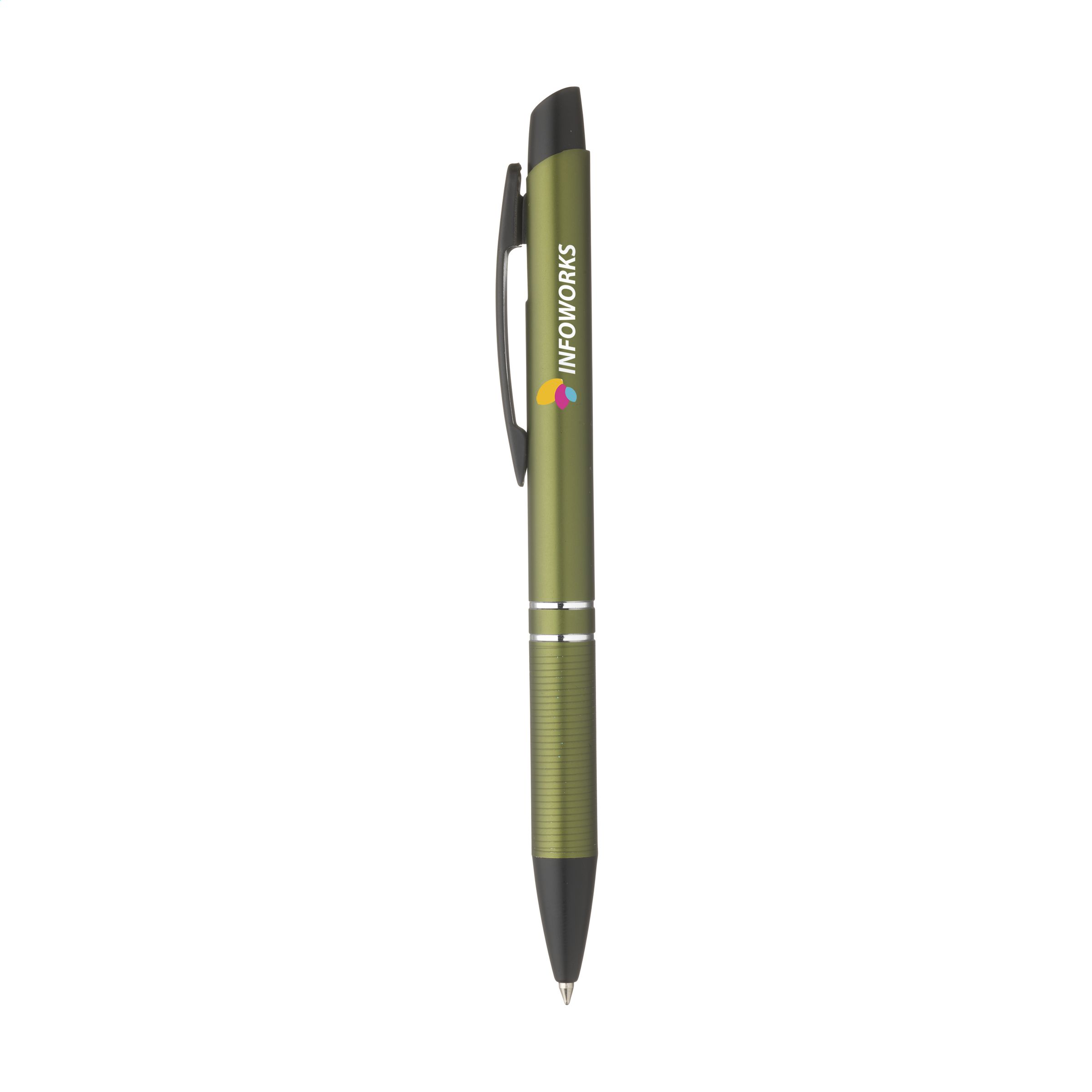 Chic, blue ink, aluminium ballpoint pen with metallic look finish, metal clip and anti slip grip.