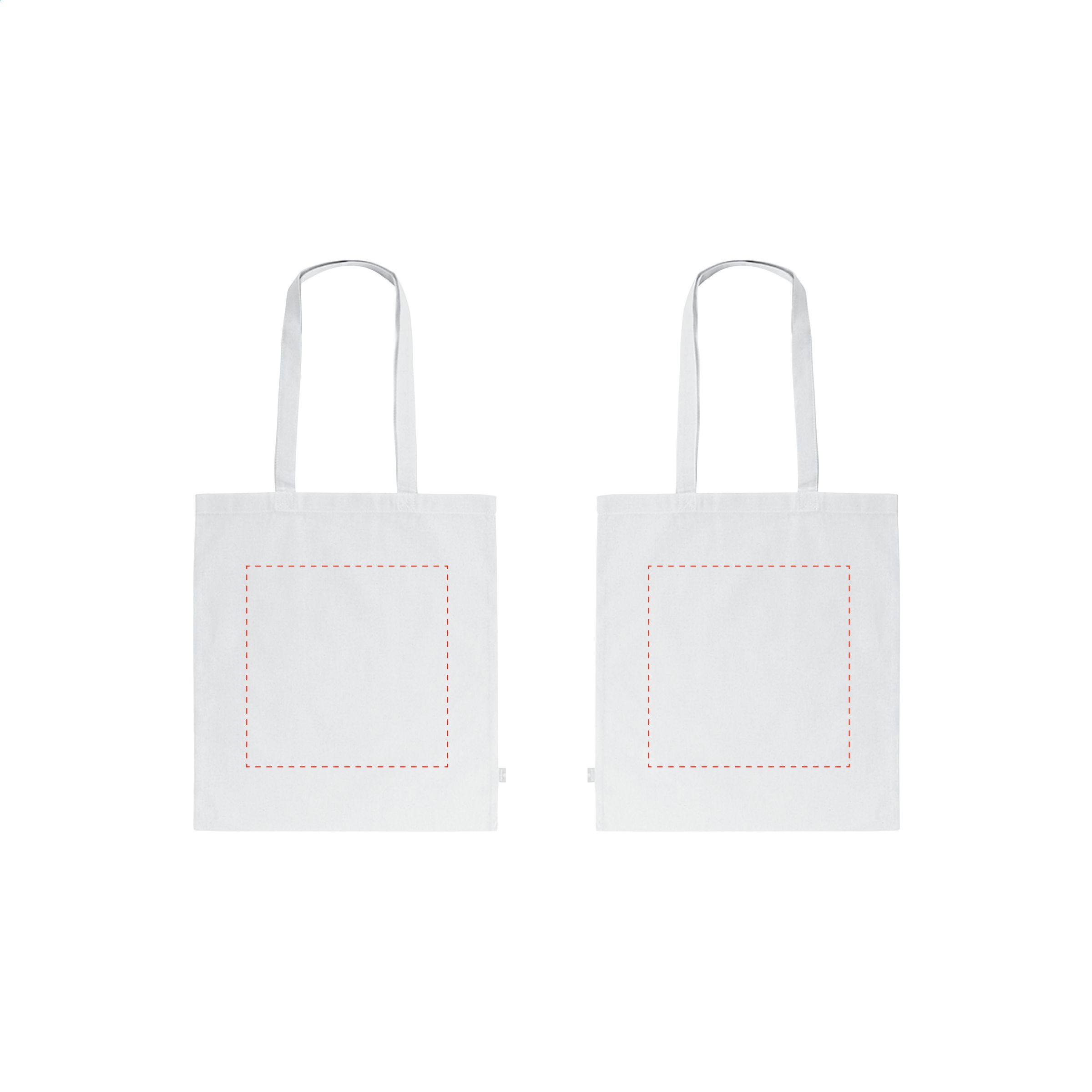 Rugged ECO shopping bag made of 100% organic high-quality cotton (140 g/m²). With long handles. Durable and environmentally-friendly. Capacity approx. 8 liters.