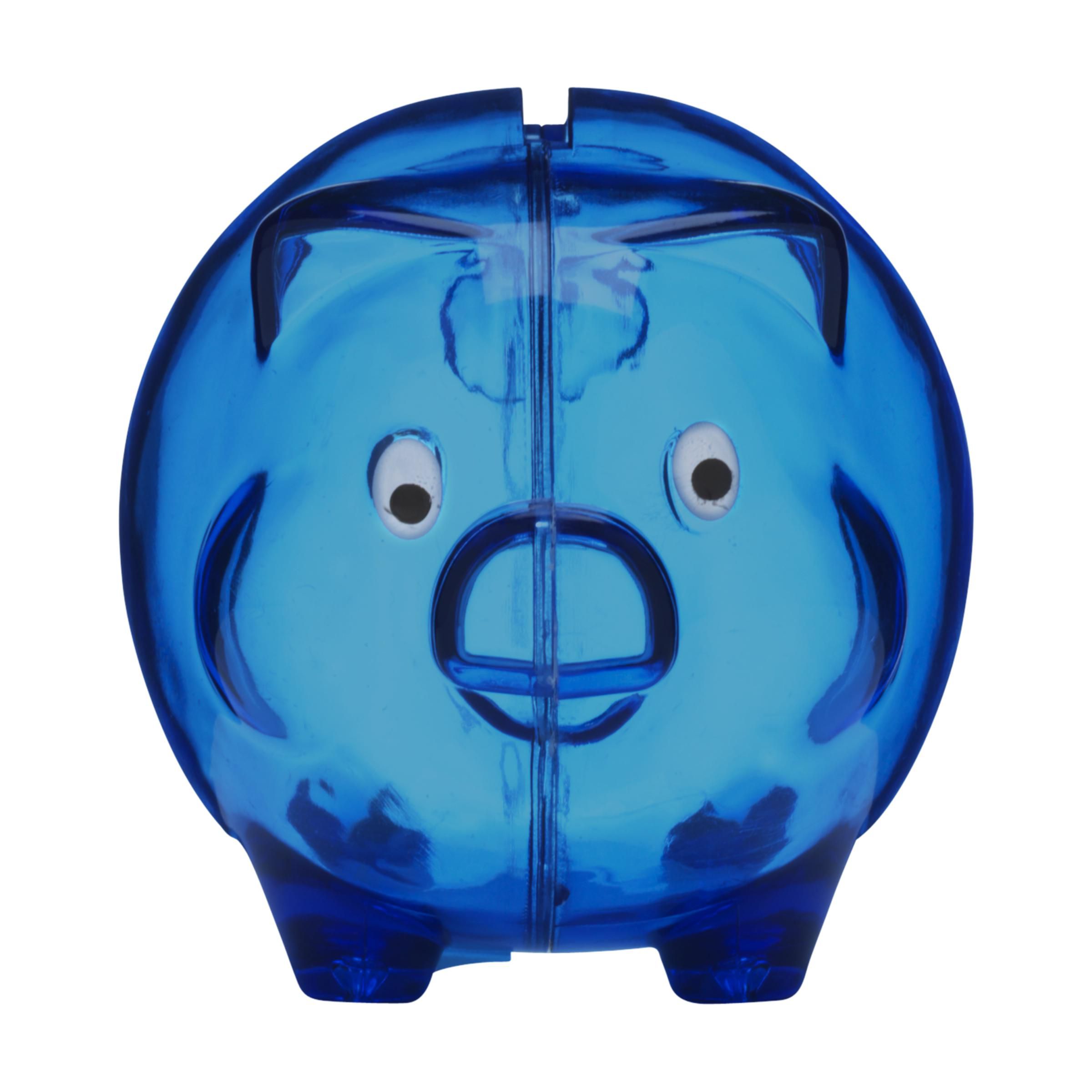 Colourful translucent piggy bank. No lockable opening. Each piece in a box.