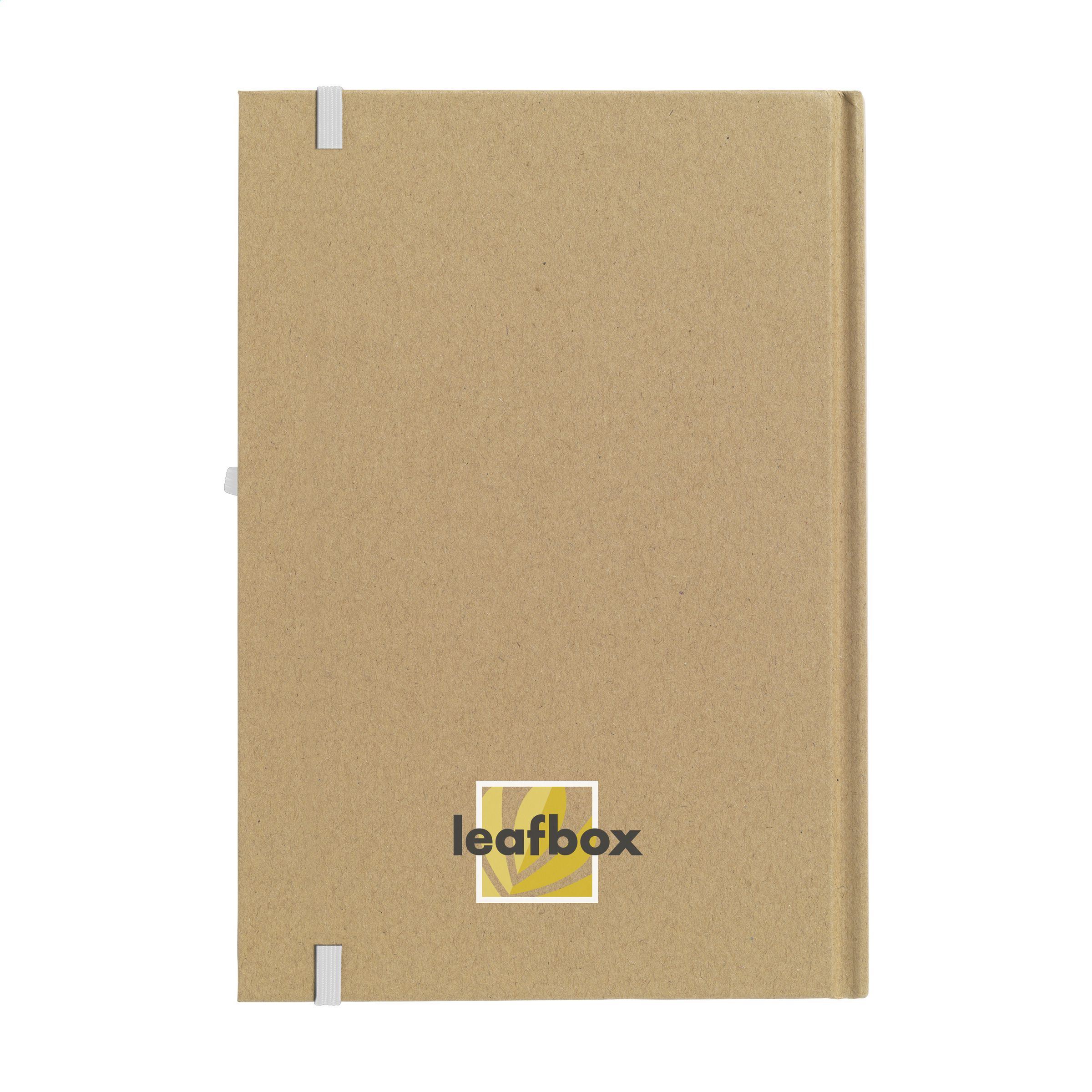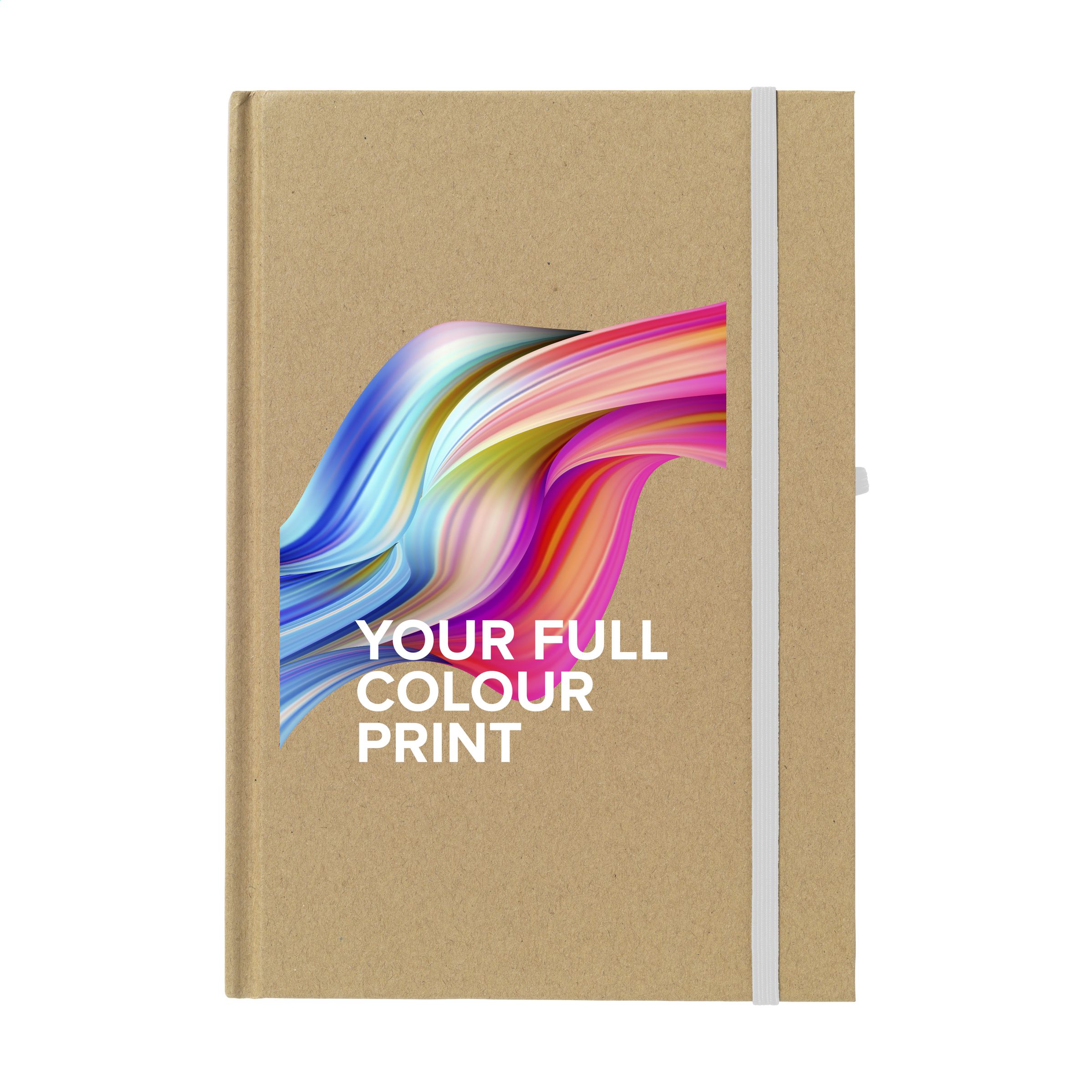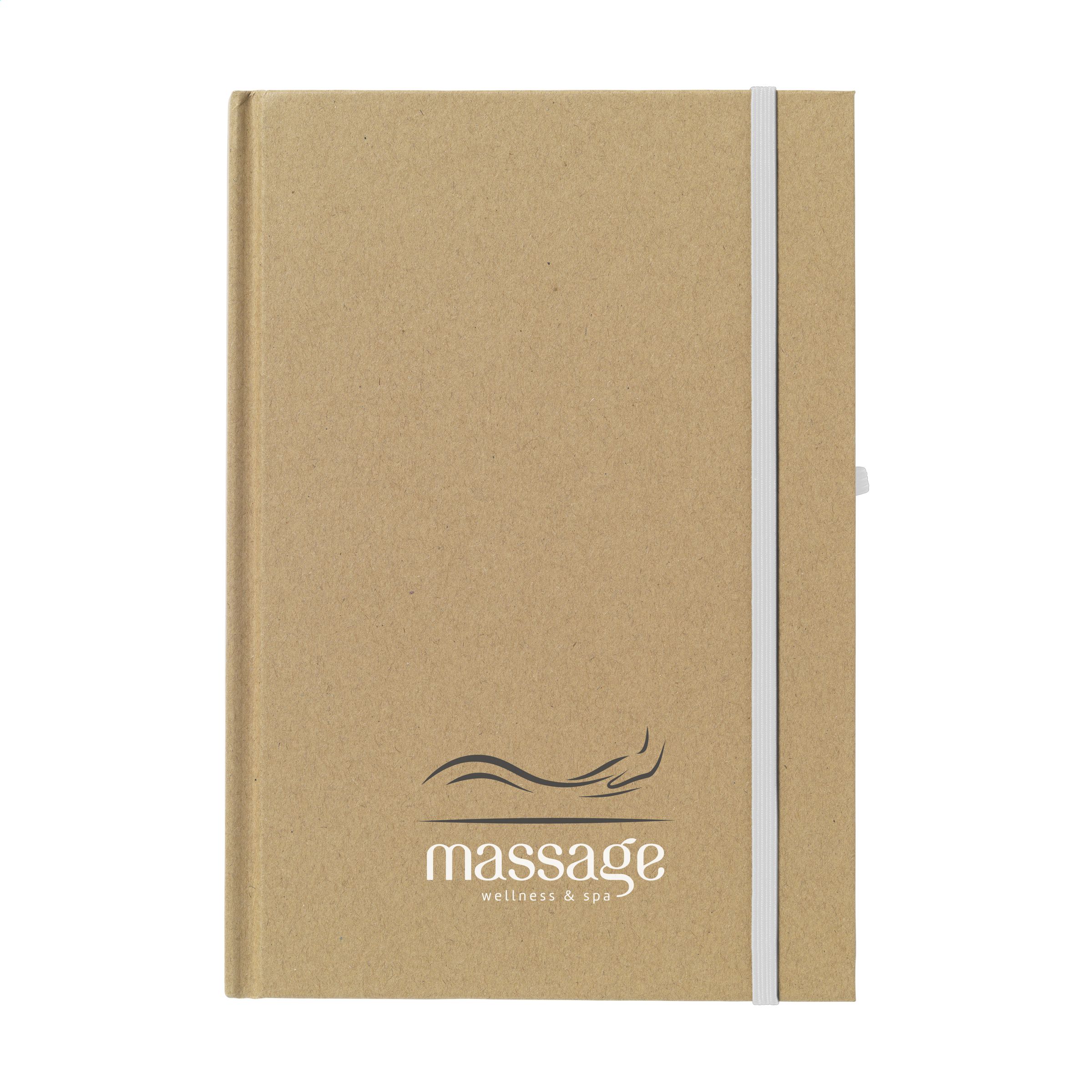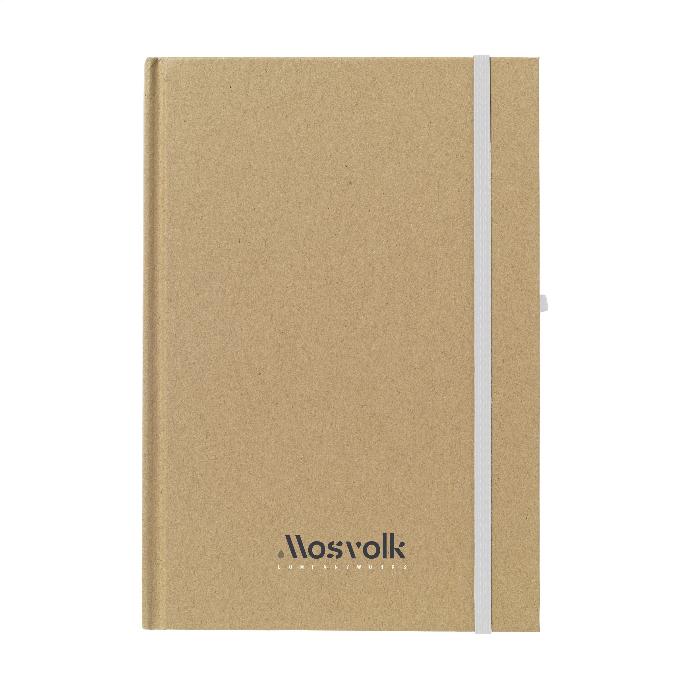 Environmentally friendly, A5 size notebook made of recycled material. With approx. 80 sheets of cream-coloured, lined paper, handy pen loop and elastic closure.