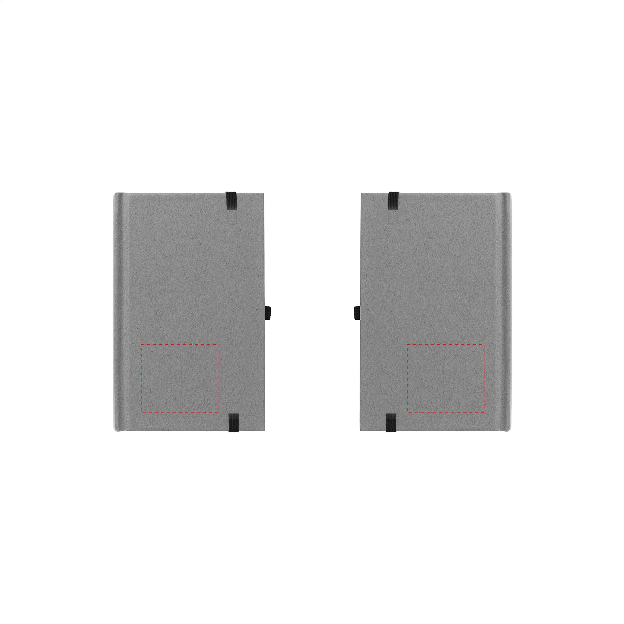 Environmentally friendly, A6 size notebook made of recycled material. With approx. 80 sheets of cream-coloured, lined paper, handy pen loop and elastic closure.