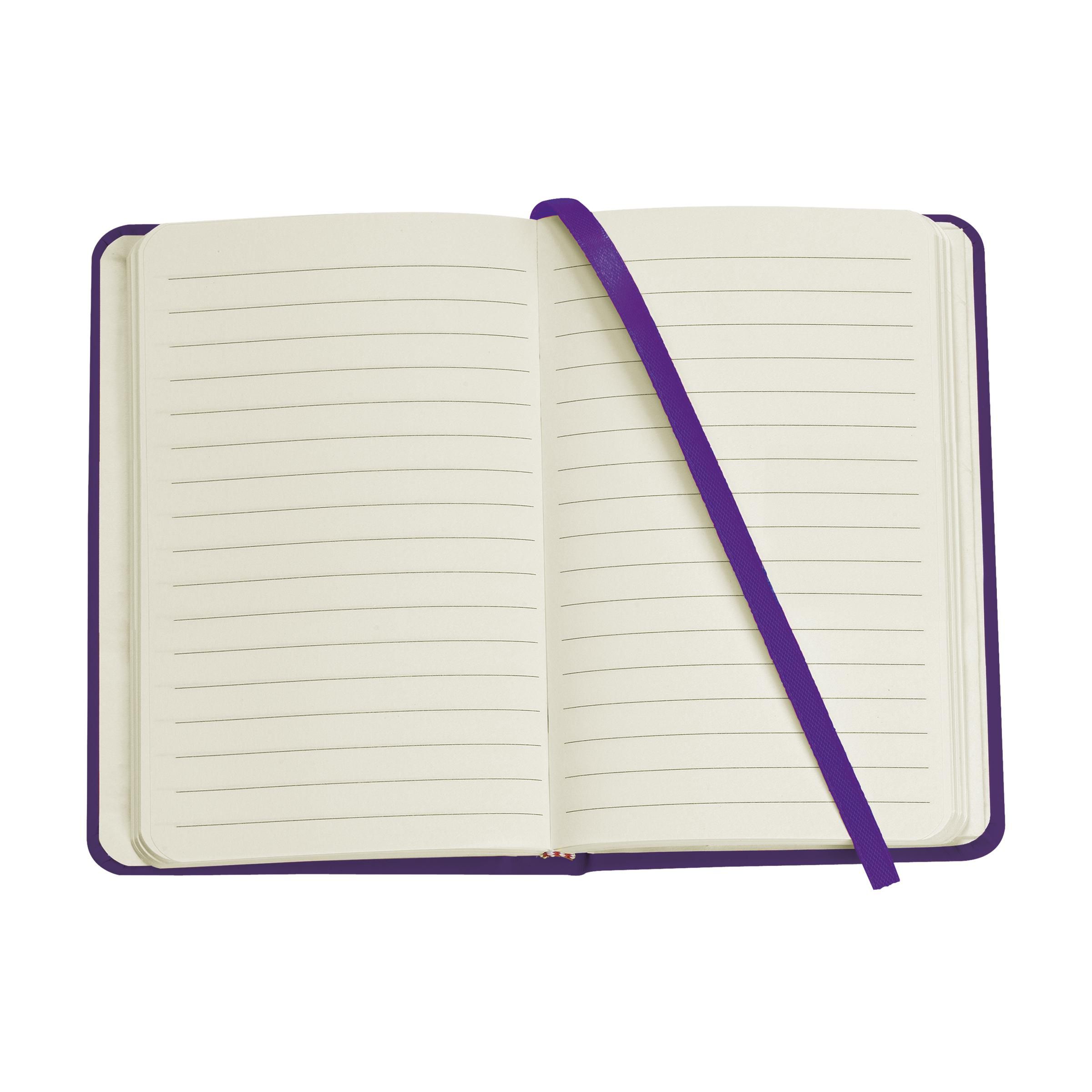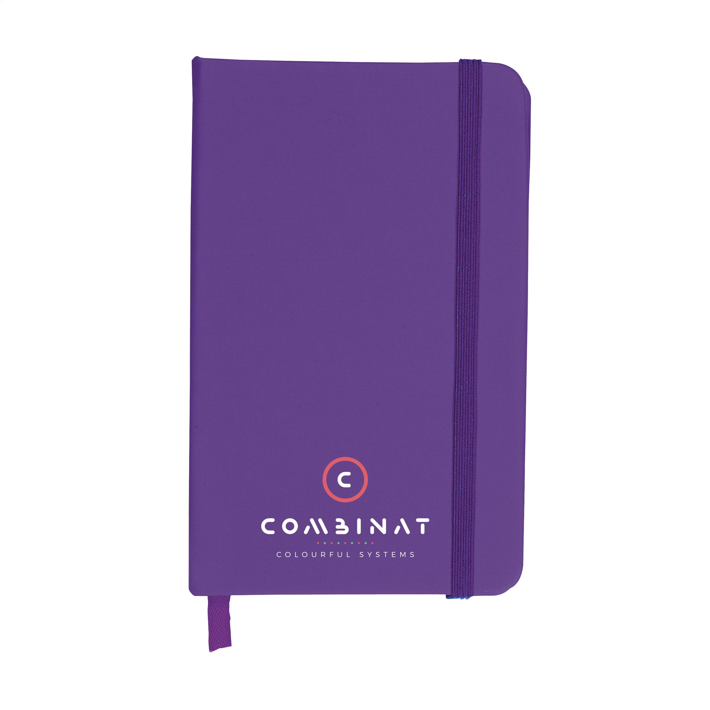 Compact notebook in A6 format with 96 pages of cream coloured, lined paper (80 g/m²). With a perfect binding, hard cover, pocket, elastic fastener and silk ribbon.