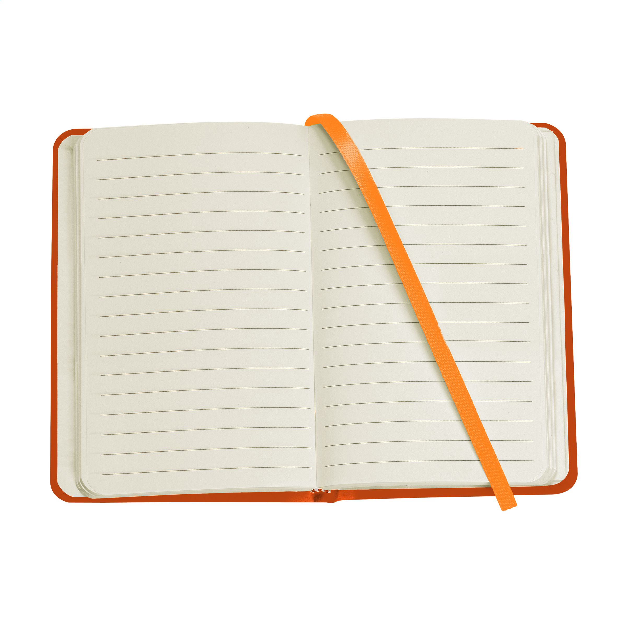 Compact notebook in A6 format with 96 pages of cream coloured, lined paper (80 g/m²). With a perfect binding, hard cover, pocket, elastic fastener and silk ribbon.