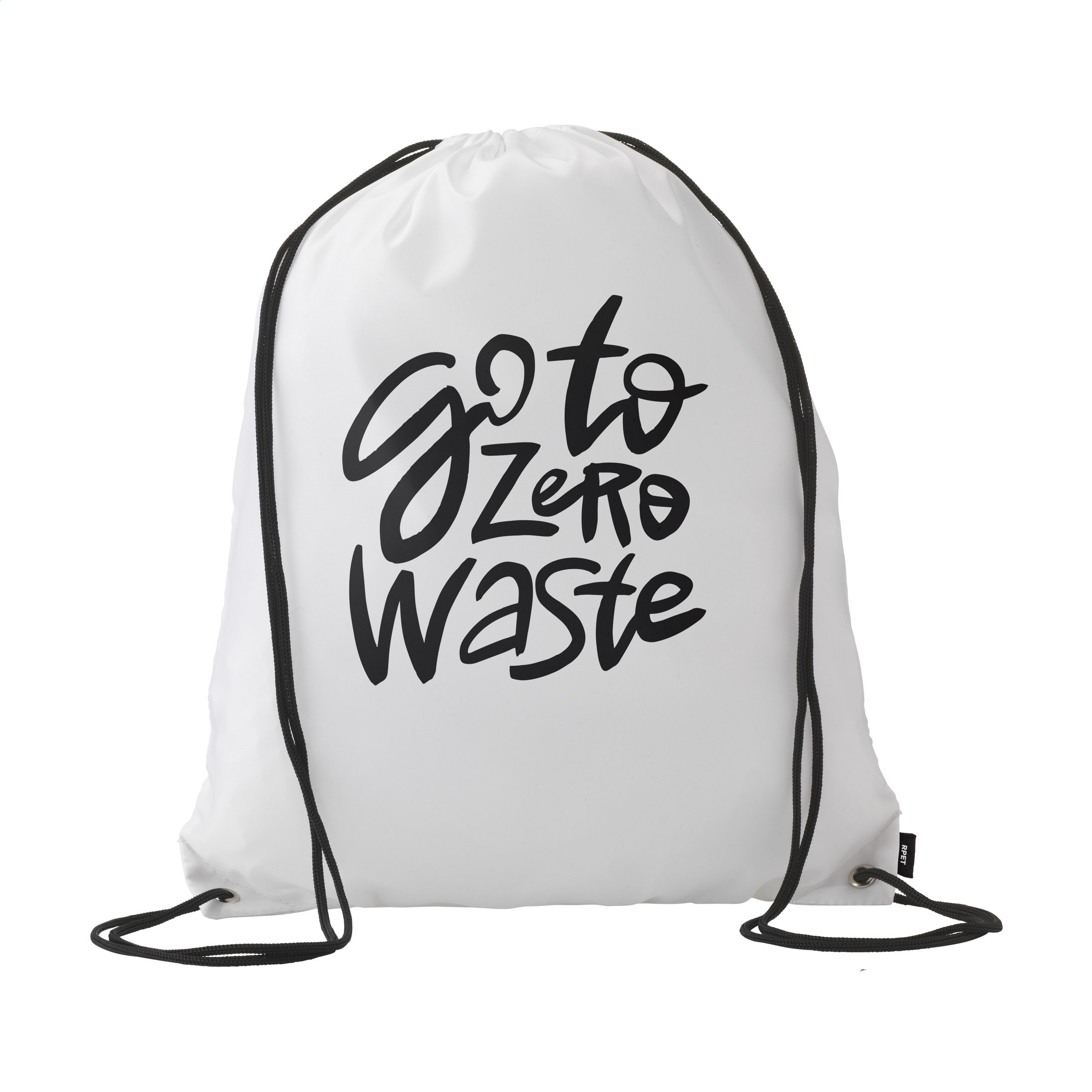 Backpack made of 210D RPET polyester: made from recycled PET bottles. With drawstring. Durable, eco-friendly and environmentally responsible. Capacity approx. 8 litres.