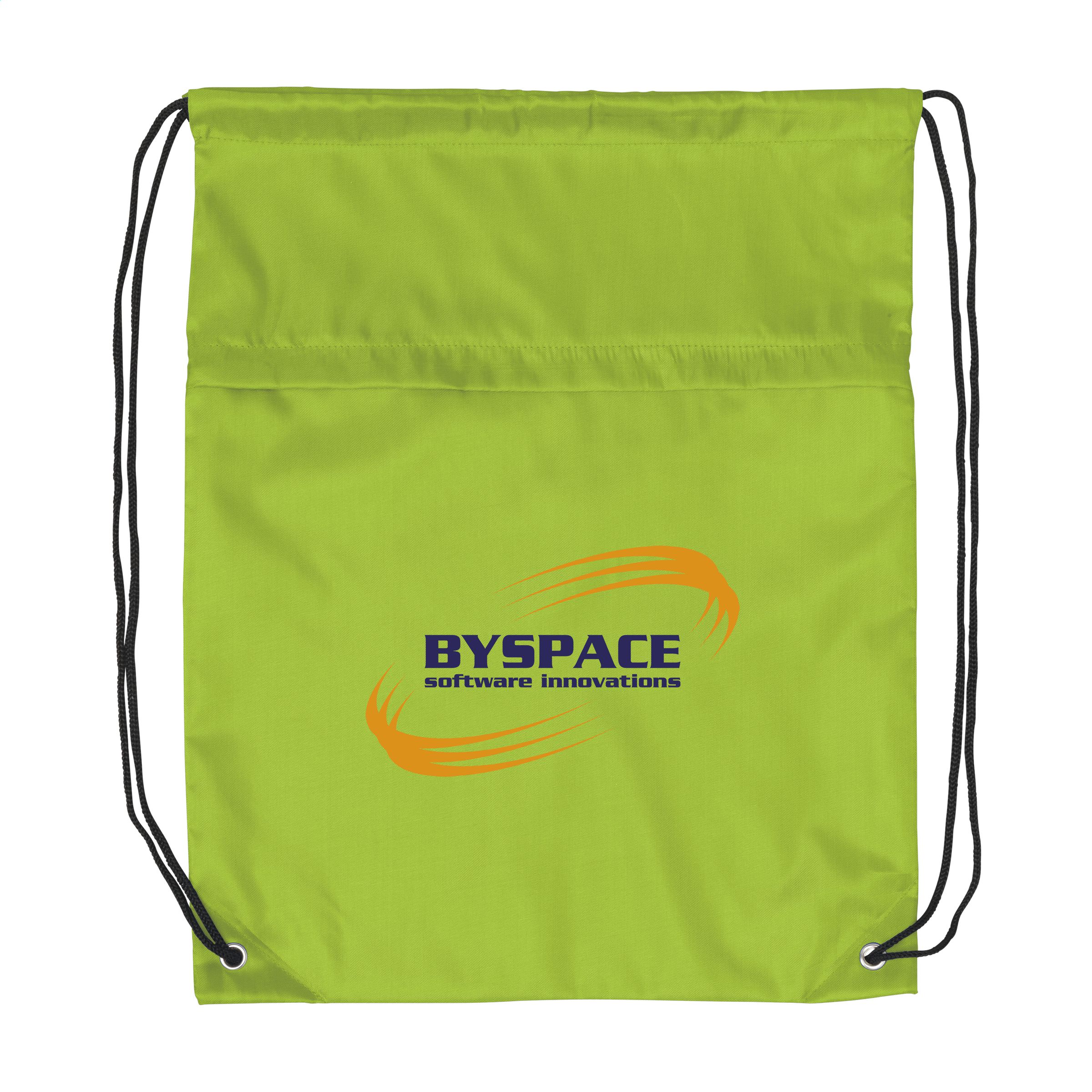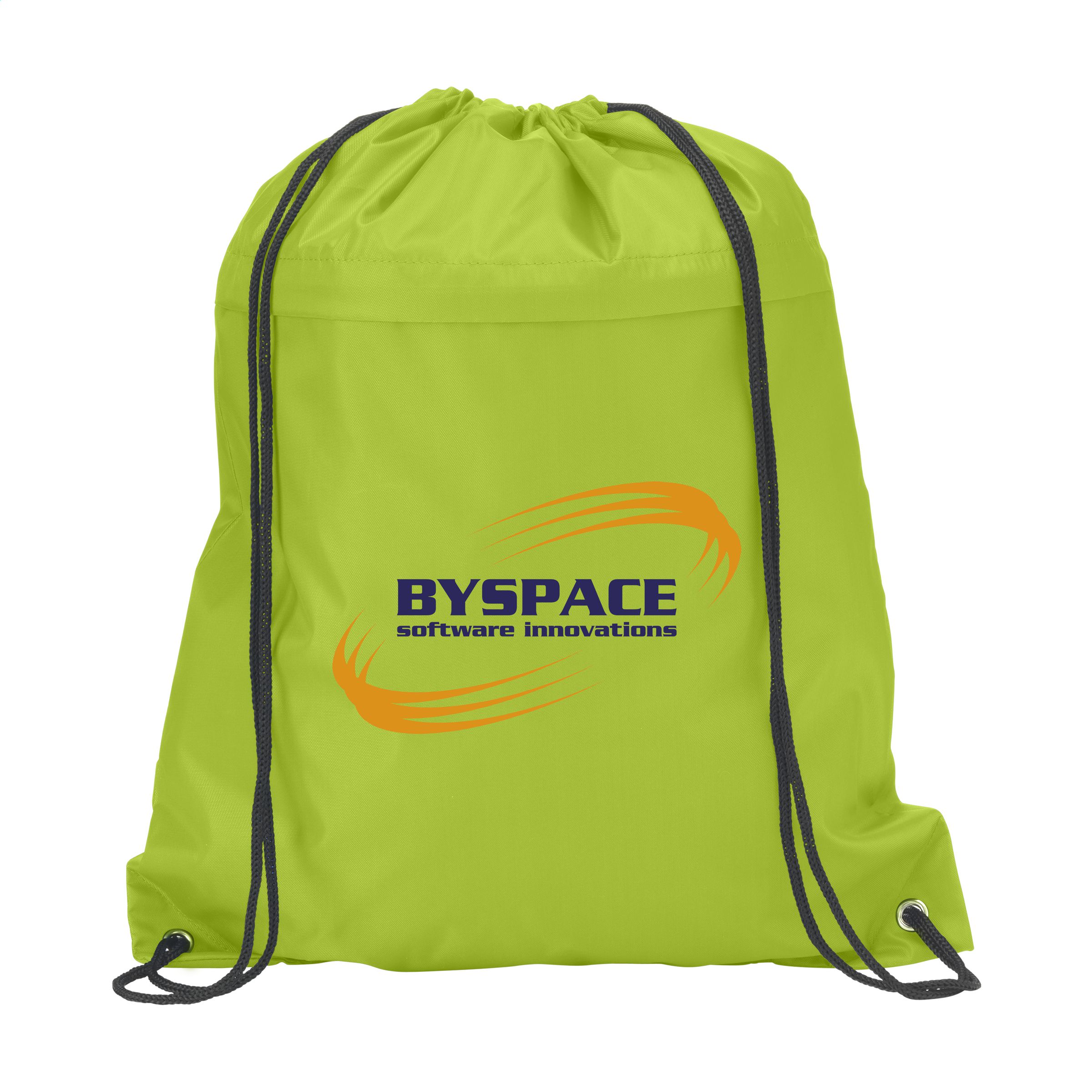 Rugged backpack made of water-resistant 210D polyester. With large extra zipper pocket on the front and drawstrings. Capacity approx. 8 litres.