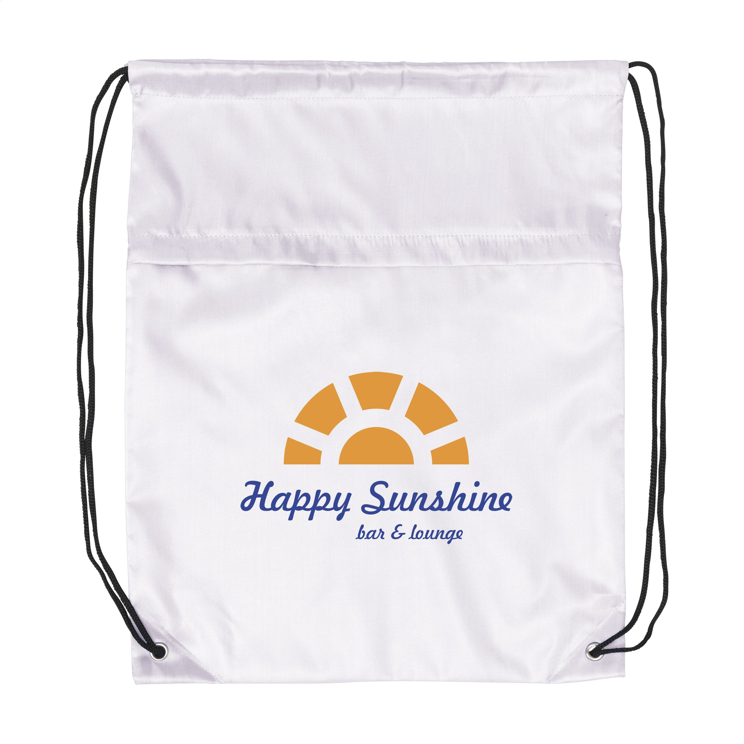 Rugged backpack made of water-resistant 210D polyester. With large extra zipper pocket on the front and drawstrings. Capacity approx. 8 litres.