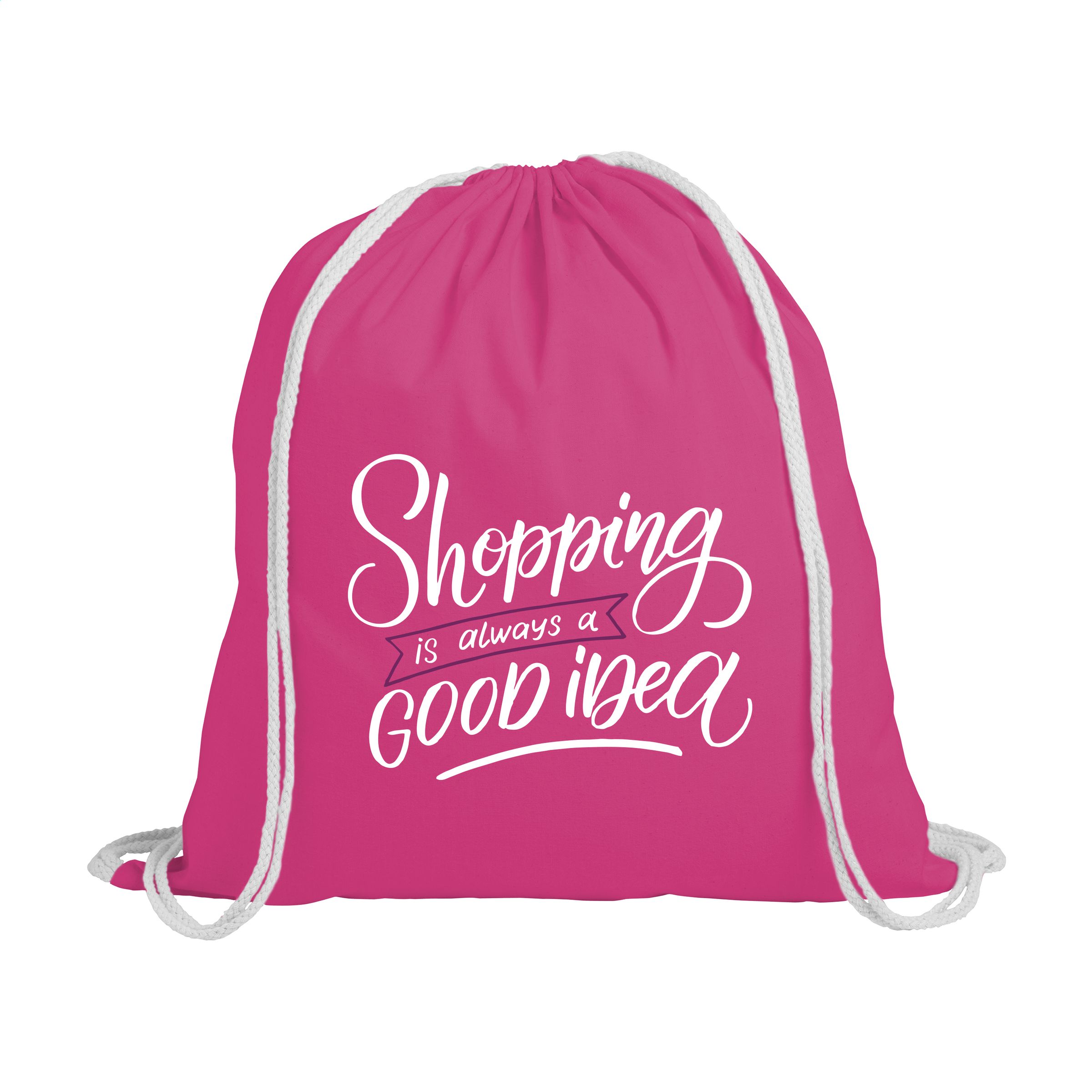 Backpack made of 100% cotton (125 g/m²). With drawstring. Capacity approx. 8 litres.