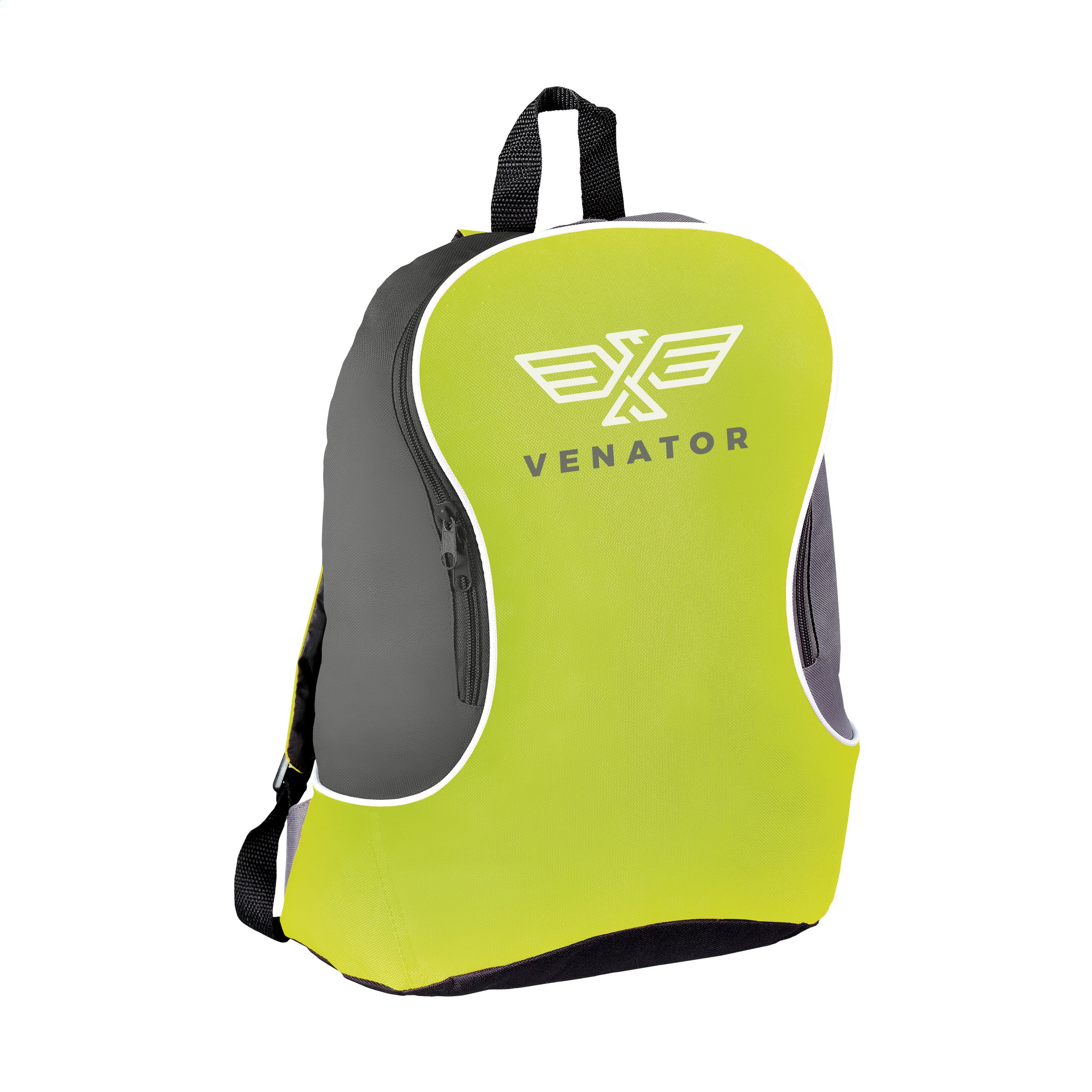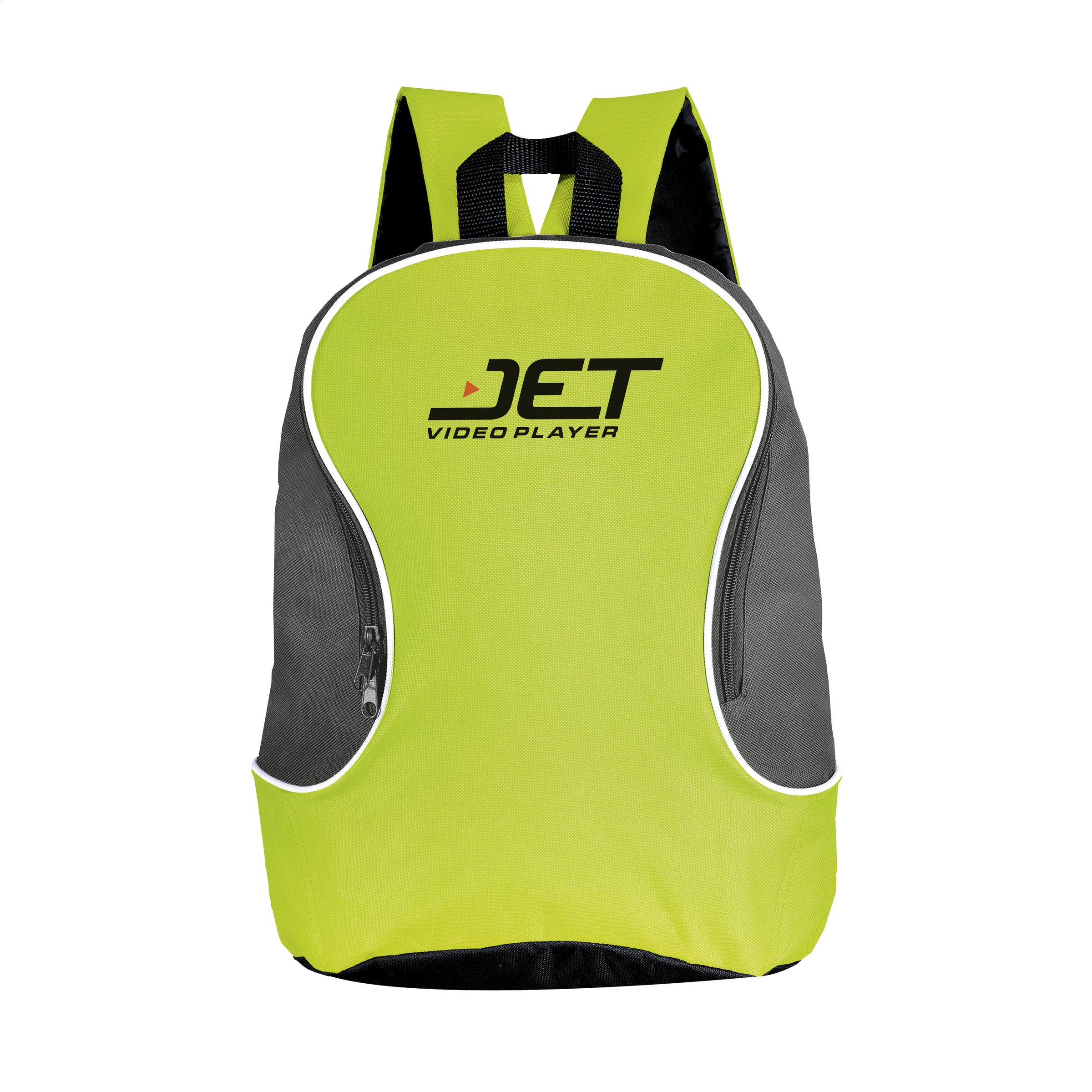 Backpack made of 600D polyester with large storage compartment with double zip, adjustable, padded shoulder straps and hanging loop. Capacity approx. 12 litres.