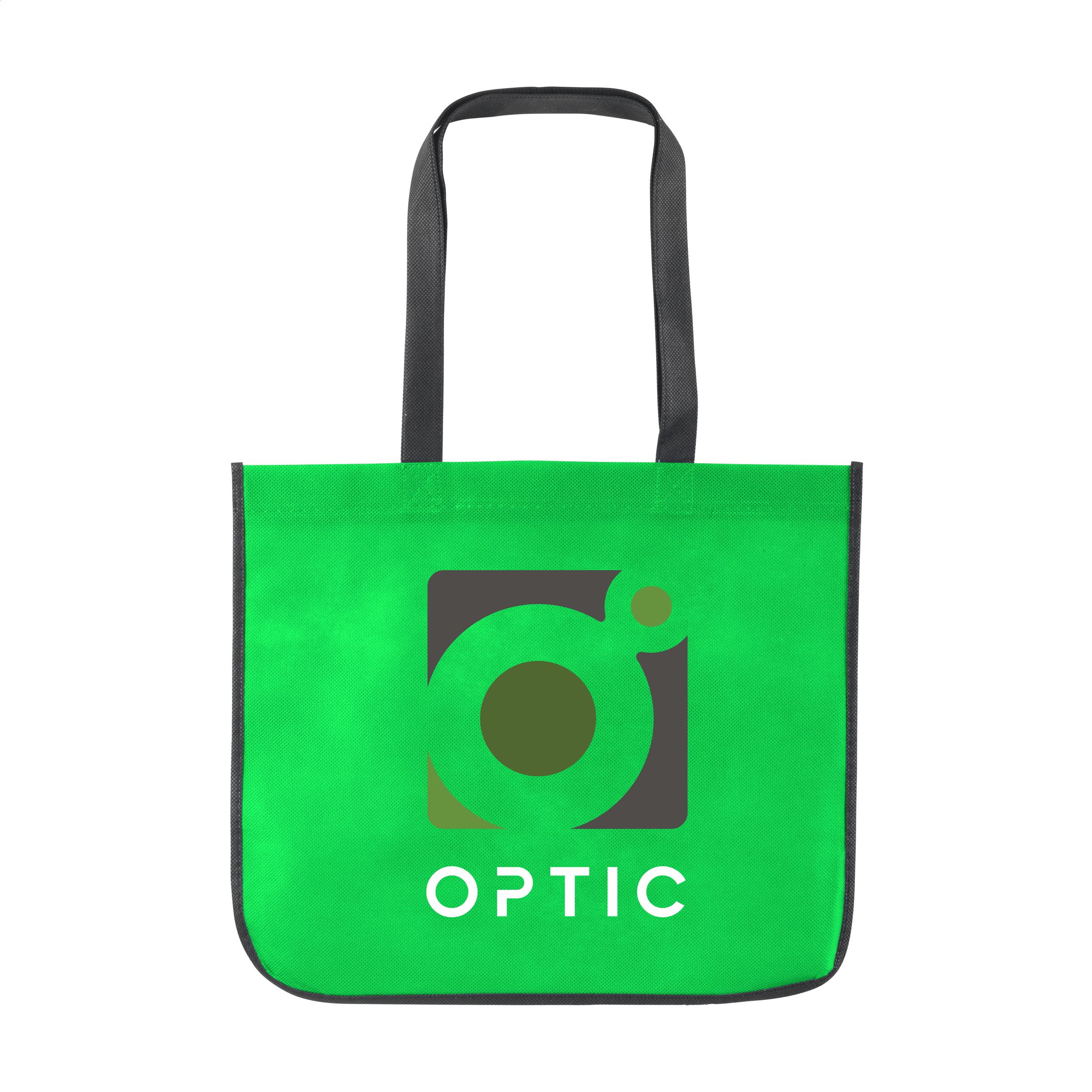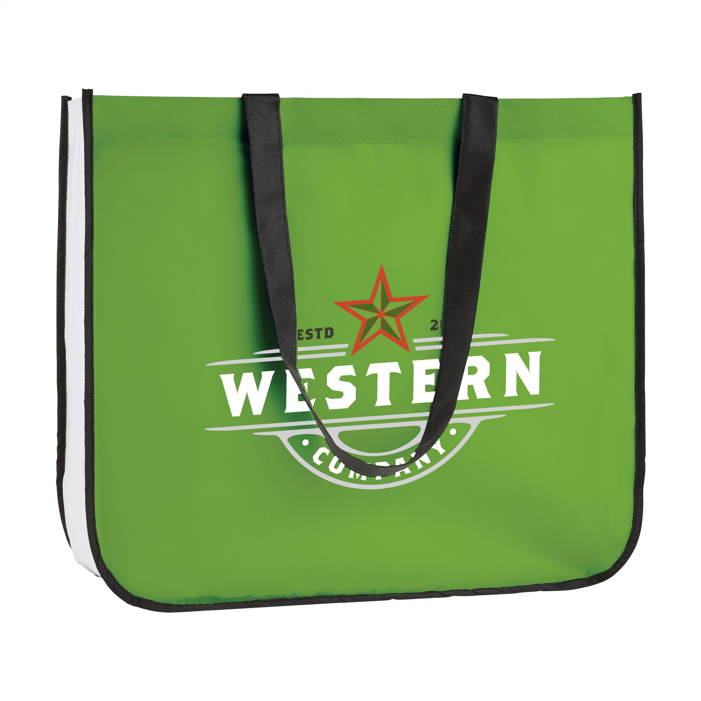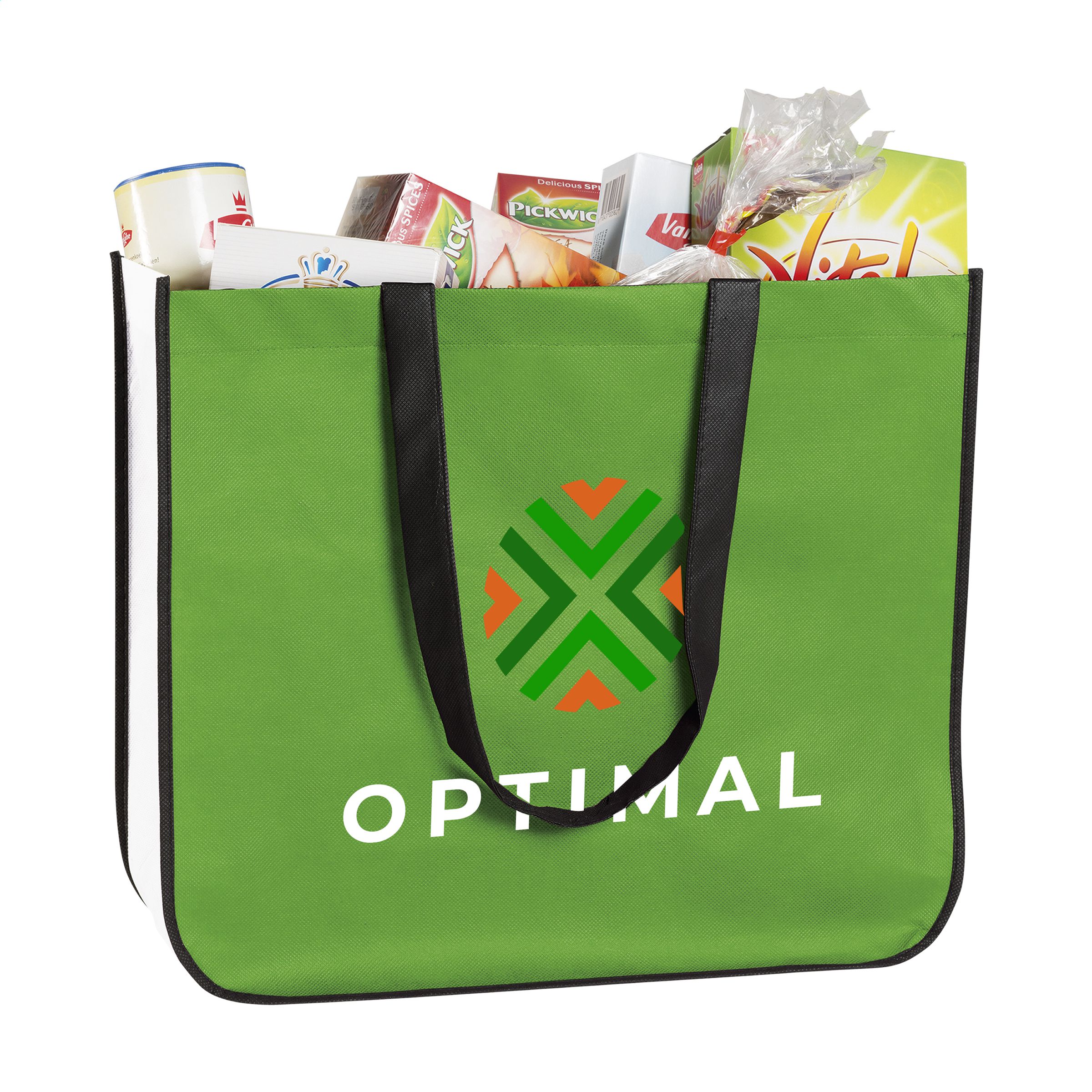 Extra large non-woven (100 g/m²) shopping bag, with long handles. Sides and base in contrasting, striking white.